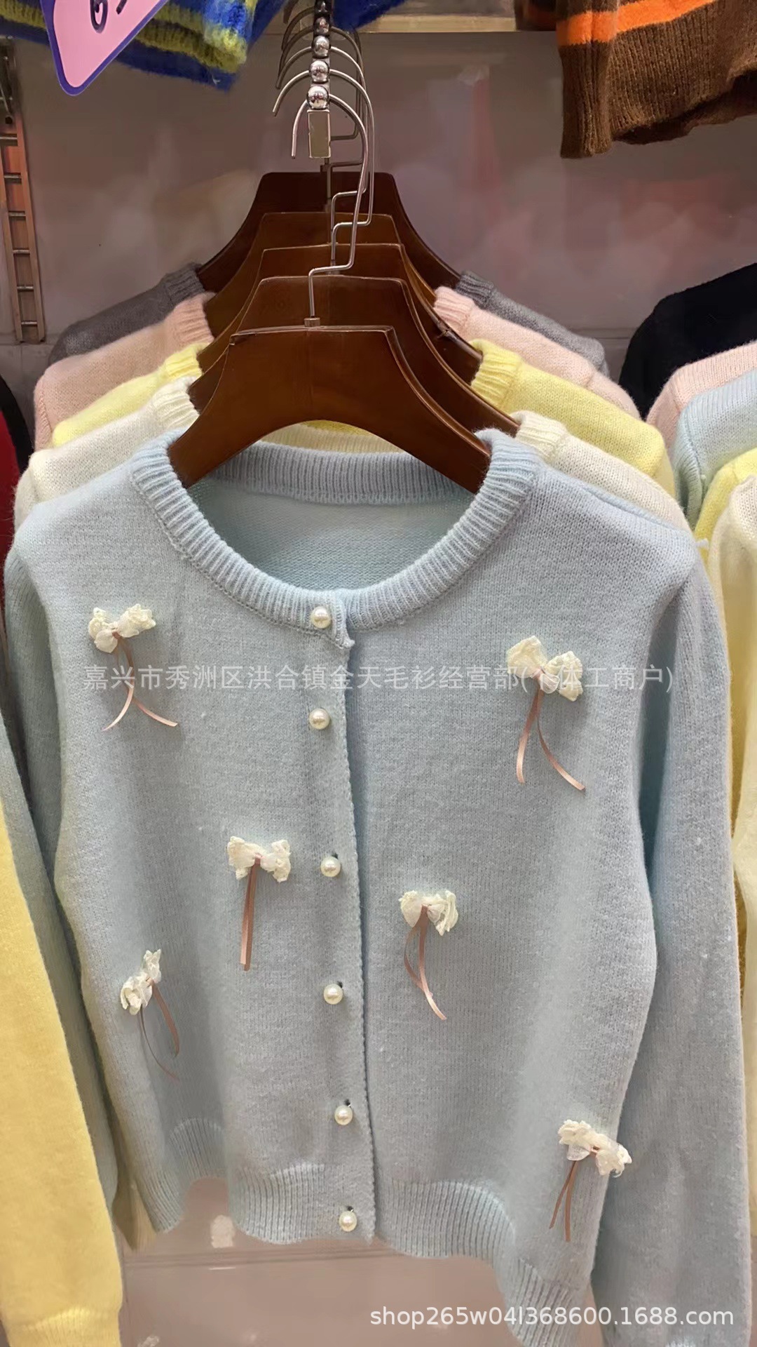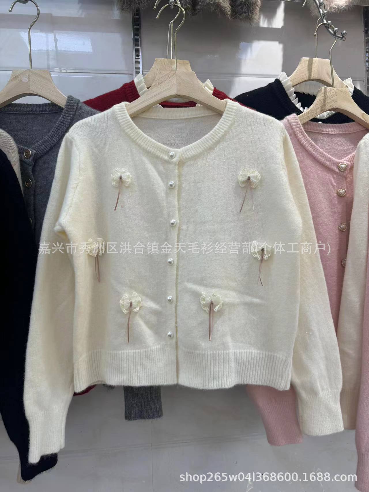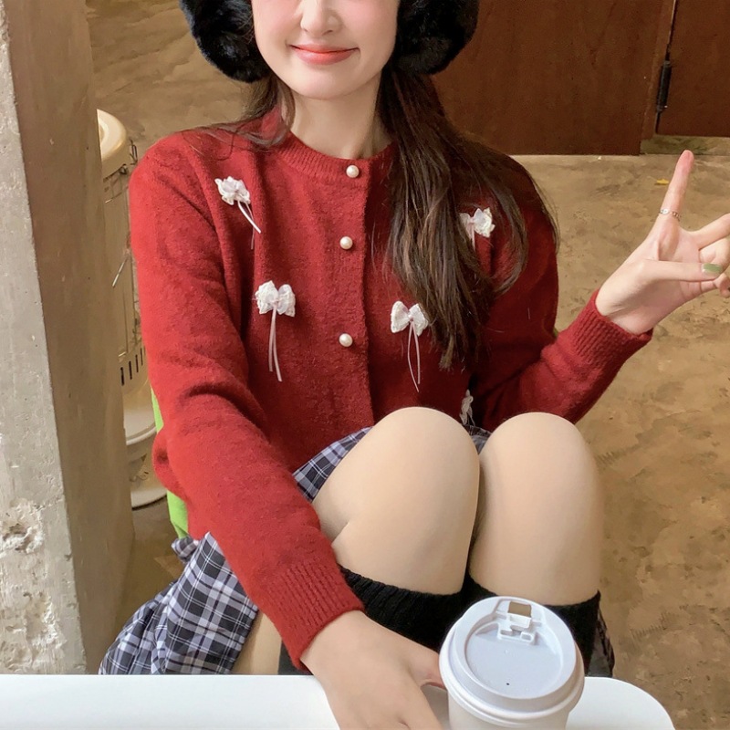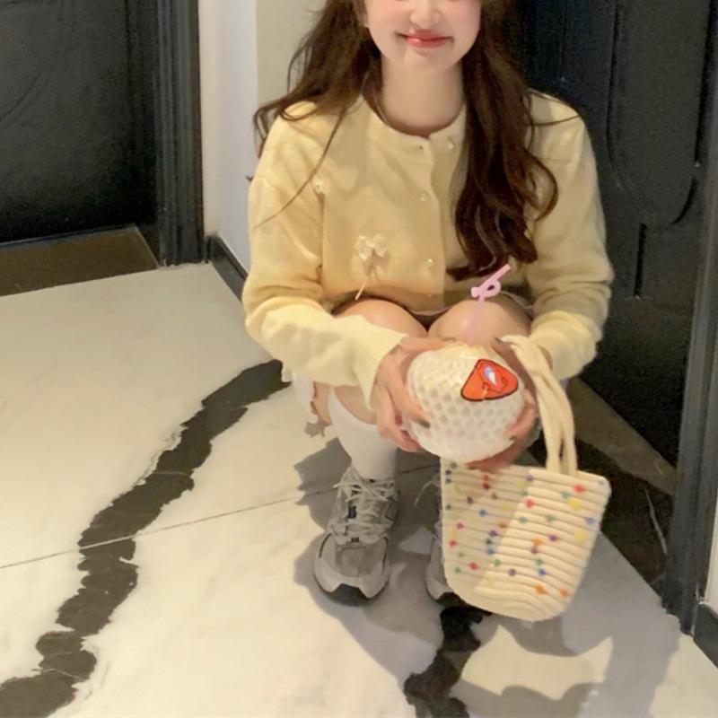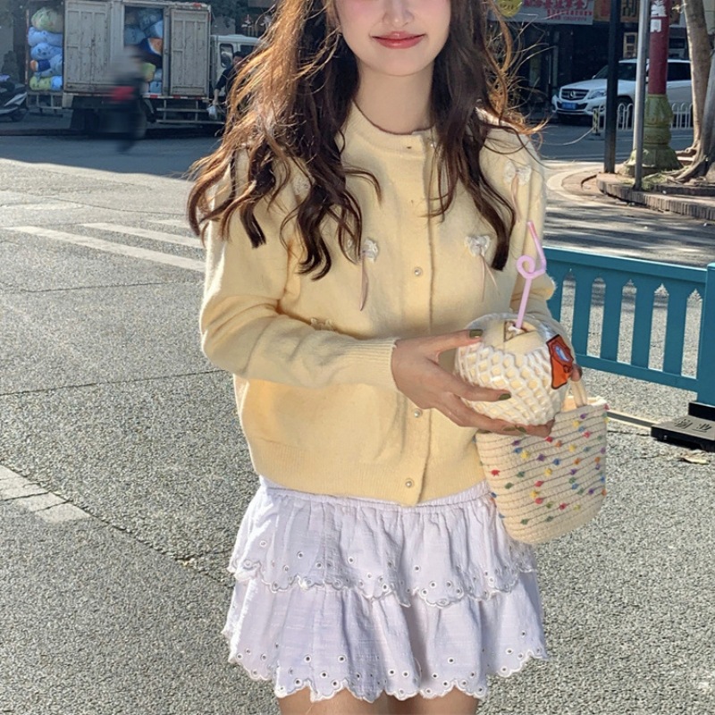 한국 봄 새로운 스타일 부드럽고 달콤한 스타일 연령 감소 디자인 입체 활 장식 니트 카디건 스웨터 여성용스토어 가기