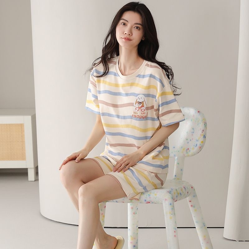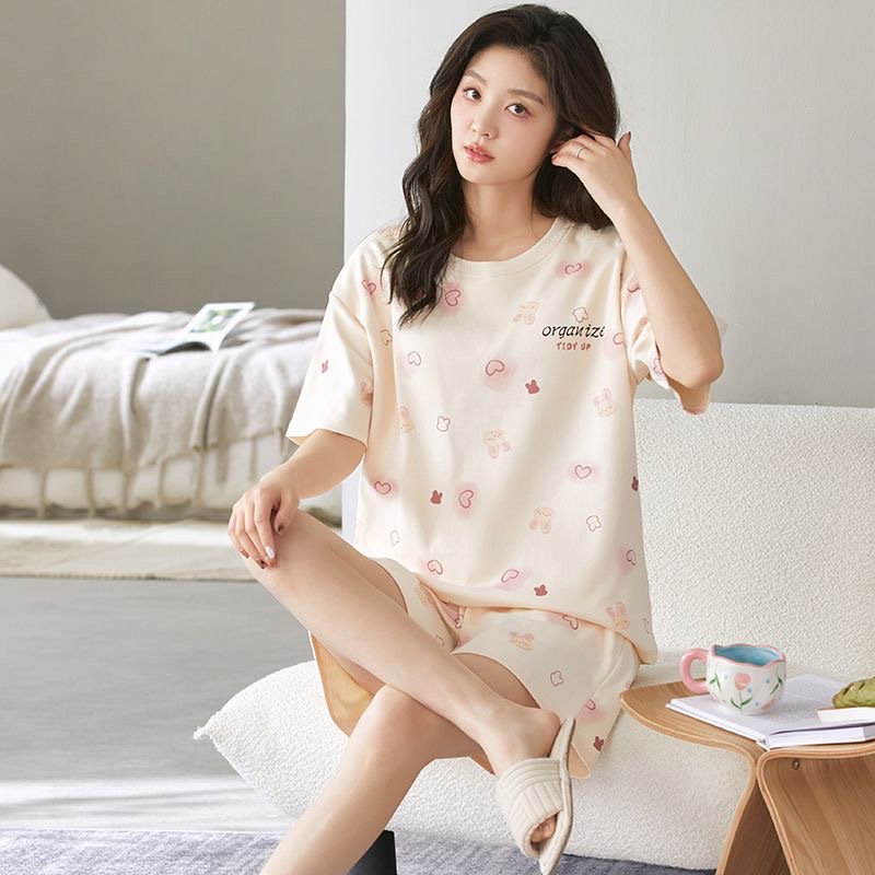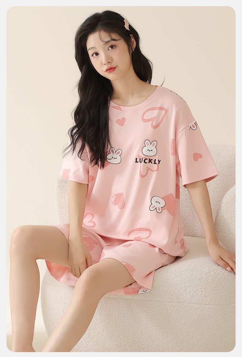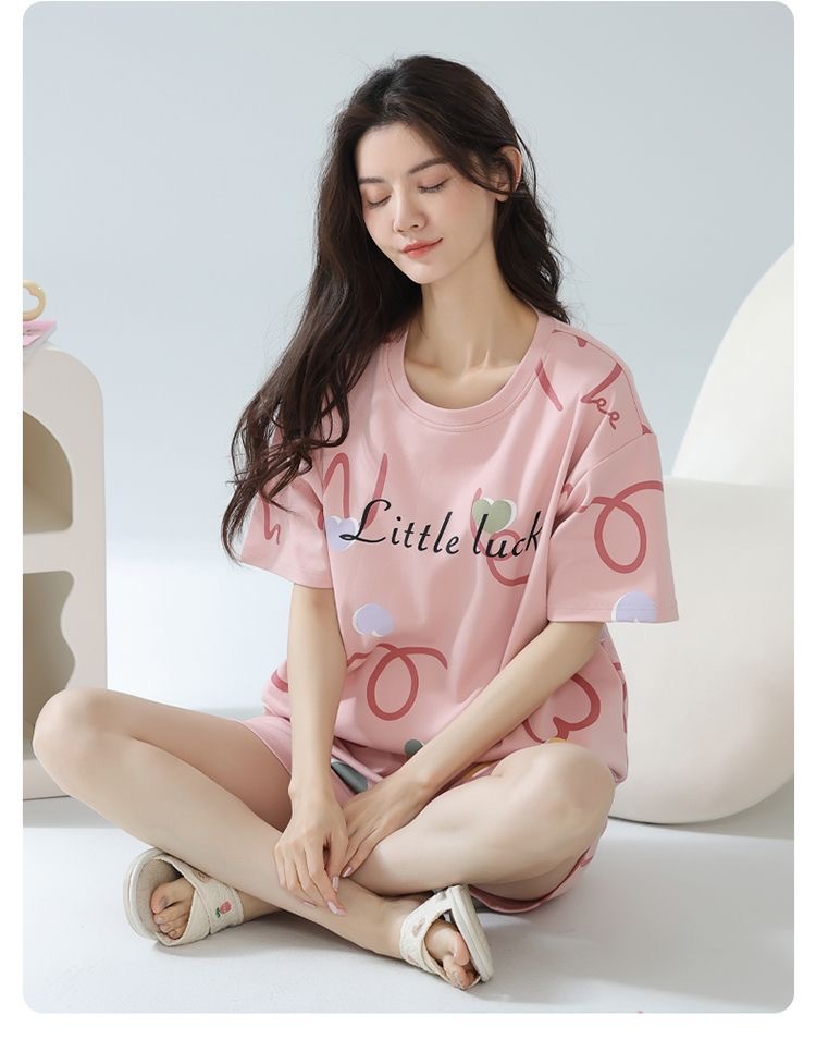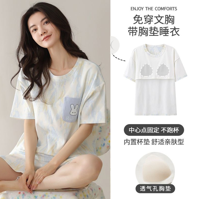 가슴 패드가 있는 여름 반팔 잠옷, 외출복으로도 착용 가능한 홈웨어 투피스 세트, 2025년 신상 여름 만화 소녀 스타일스토어 가기