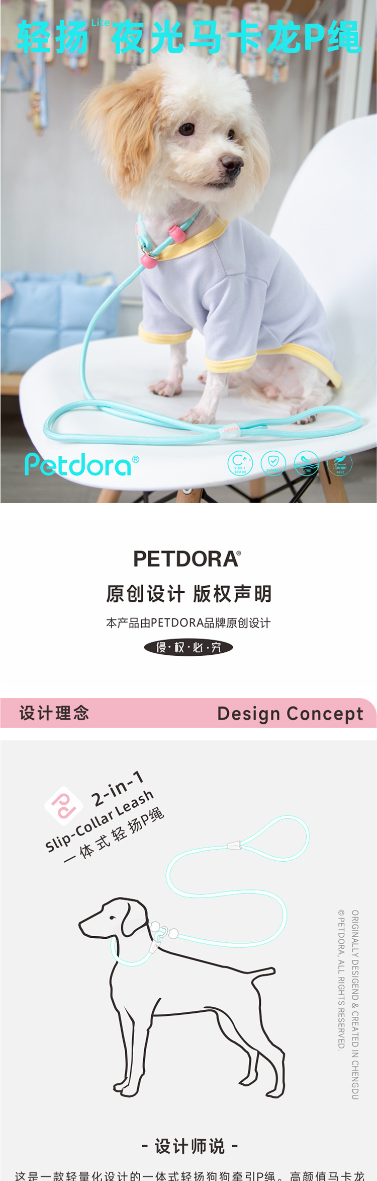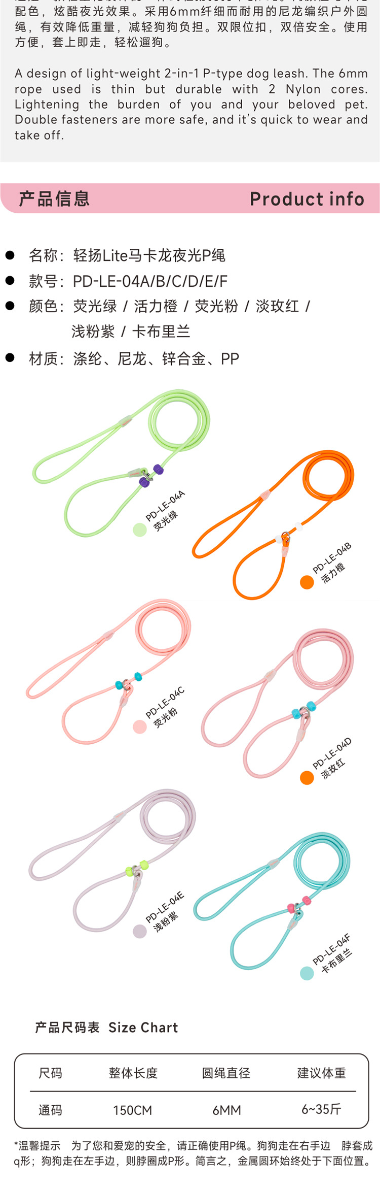펫도라 야광 강아지 목줄 훈련용 P줄 방폭 P체인 애완동물 일체형 목줄 고양이 목줄