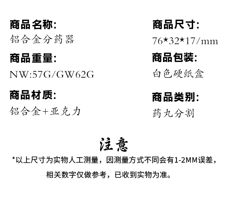 알루미늄 합금 의학 분할기 규모 의학 절단기 휴대용 약 분할기 가위 1 대 2 의약 분배기 휴대용 약 상자