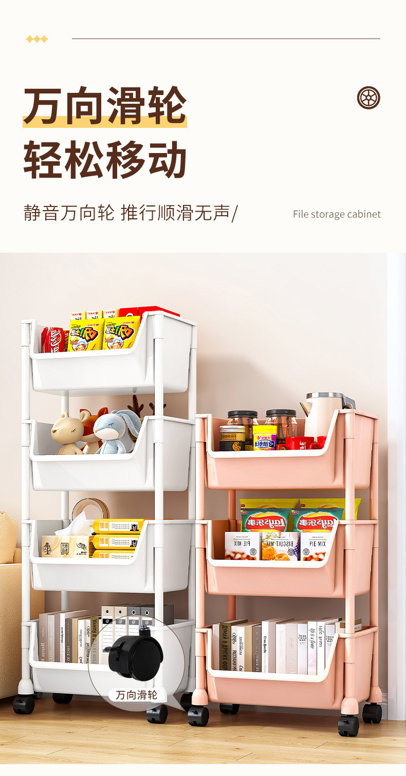 트롤리 스토리지 랙 거실 저장 책장 간식 주방 과일 및 야채 야채 바구니 바닥 다층 모바일 랙스토어 가기