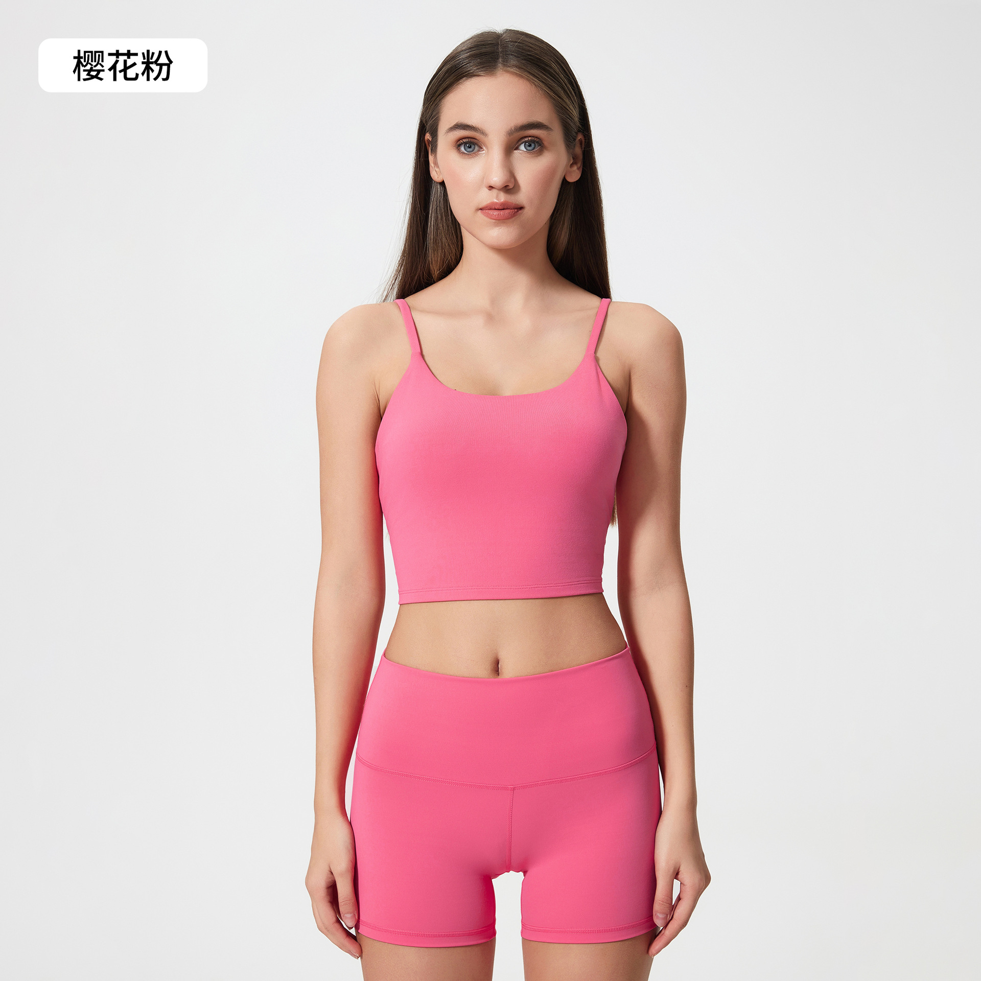 새로운 스포츠 요가 조끼 여자 가슴 패드 섹시한 얇은 벨트 아름다운 등 피트니스 탑 슬링 요가 세트 C5238