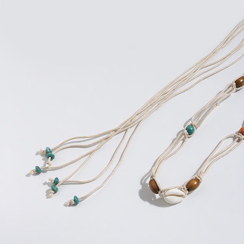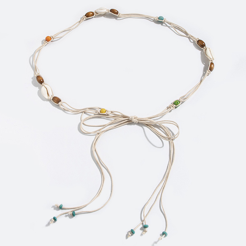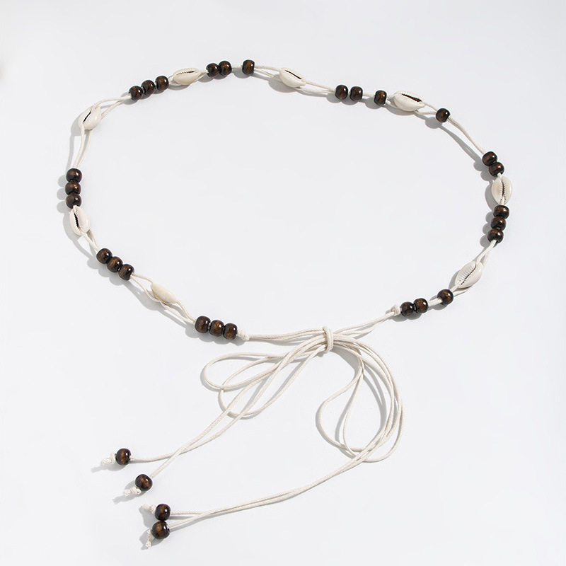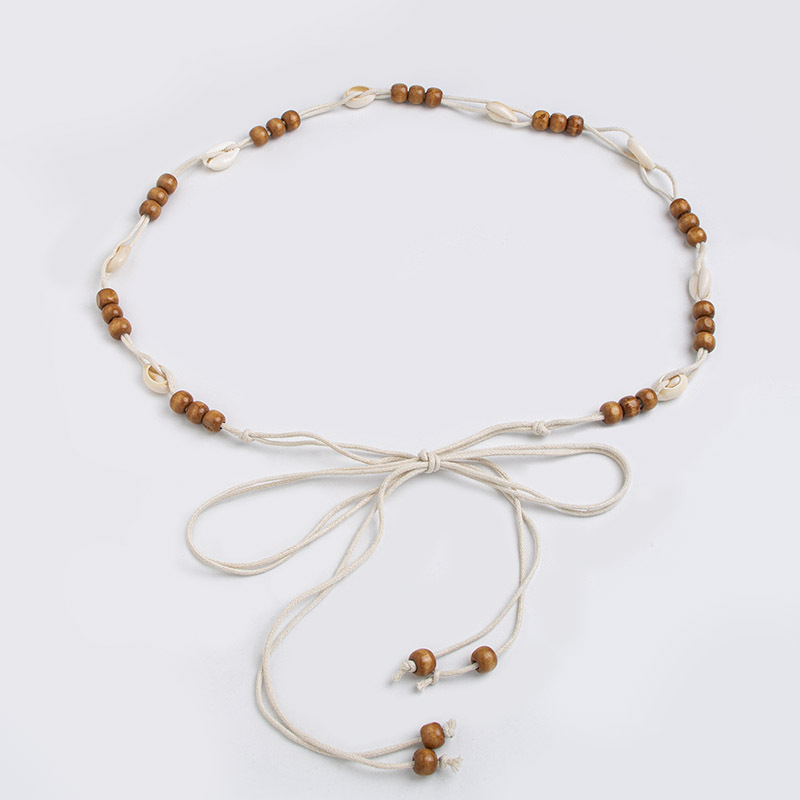 보헤미안 벨트 민족 스타일 벨트 쉘 벨트 나무 구슬 여성의 얇은 벨트 캐주얼 휴일 스타일 허리 로프