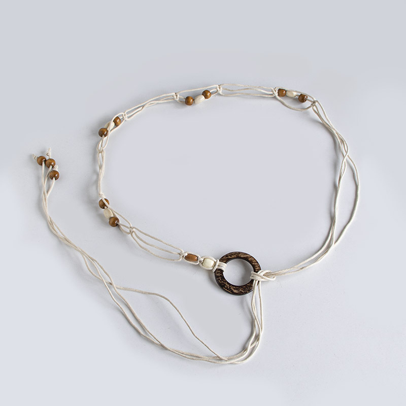 • 코코넛 링 우드 비즈 허리 로프 베이지