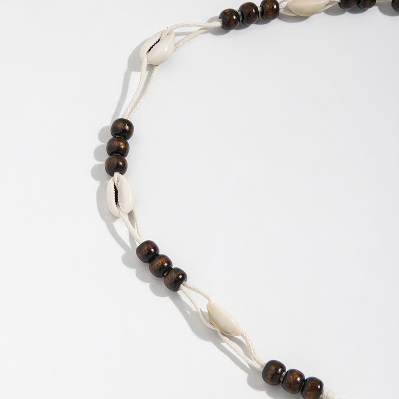 • 다크 브라운 나무 구슬 껍질 얇은 허리 로프