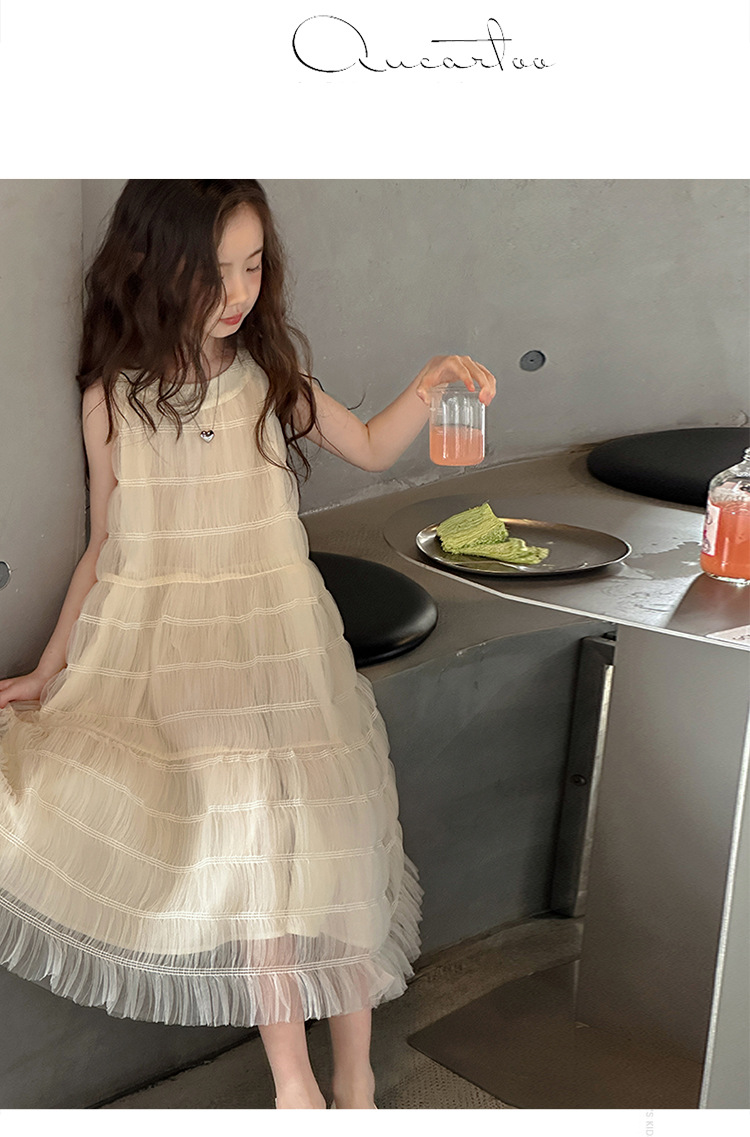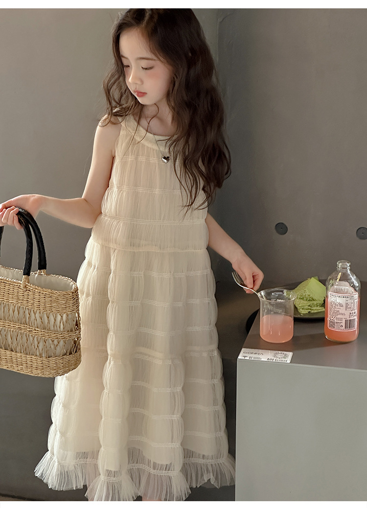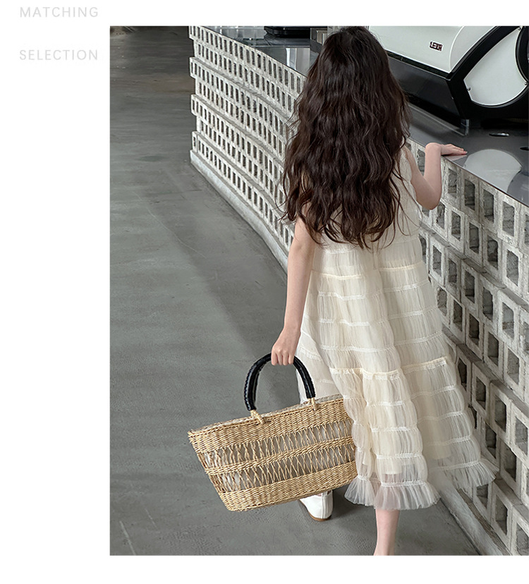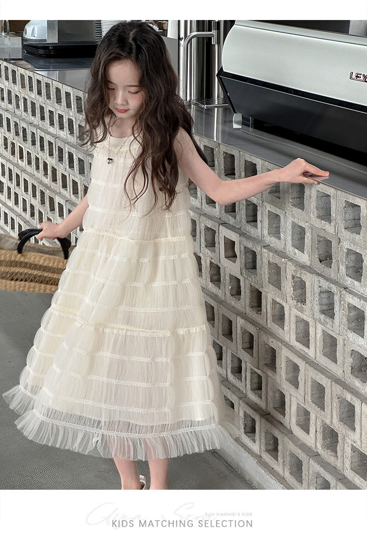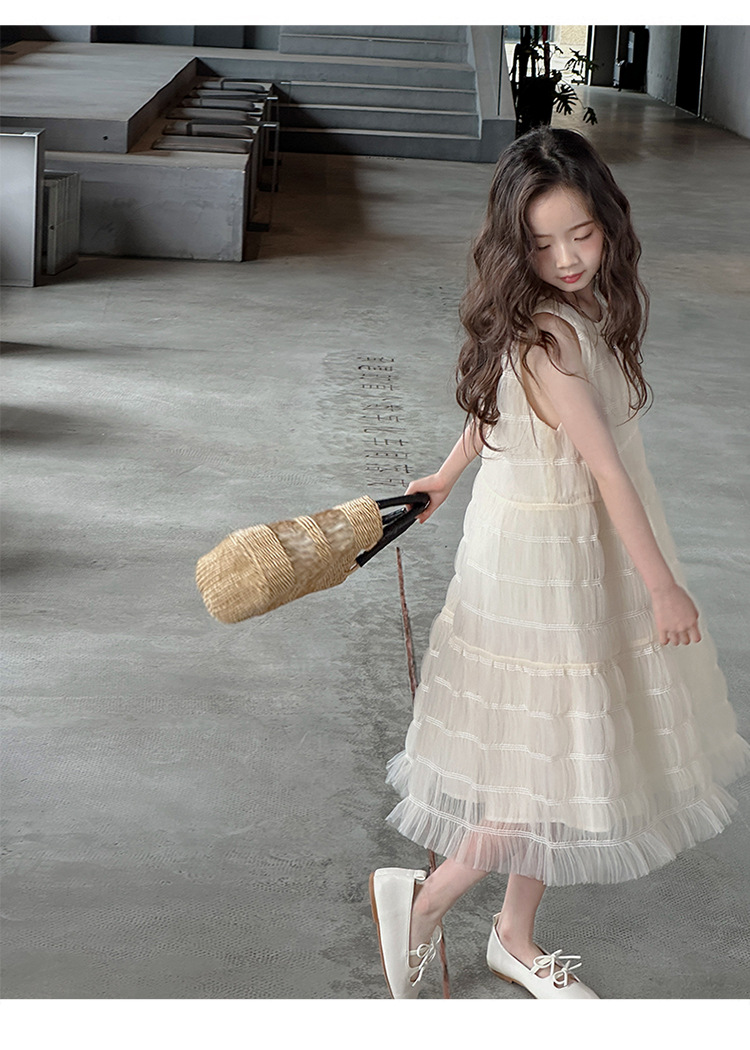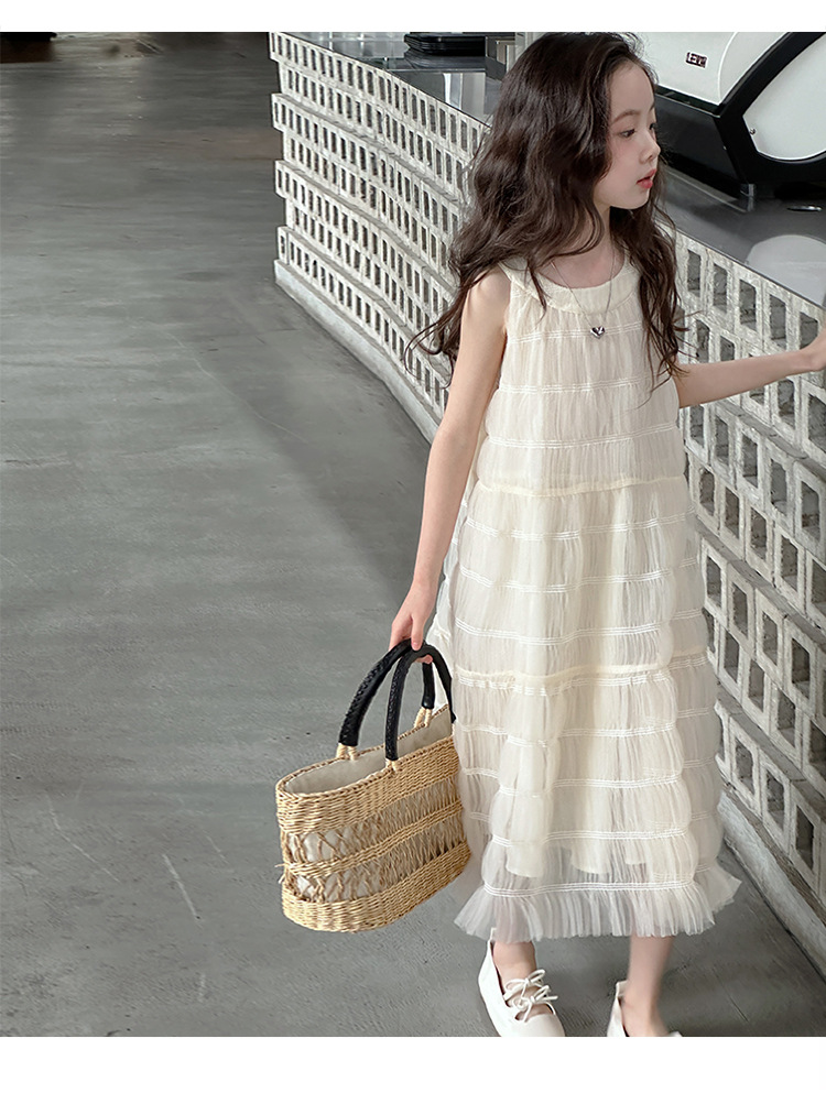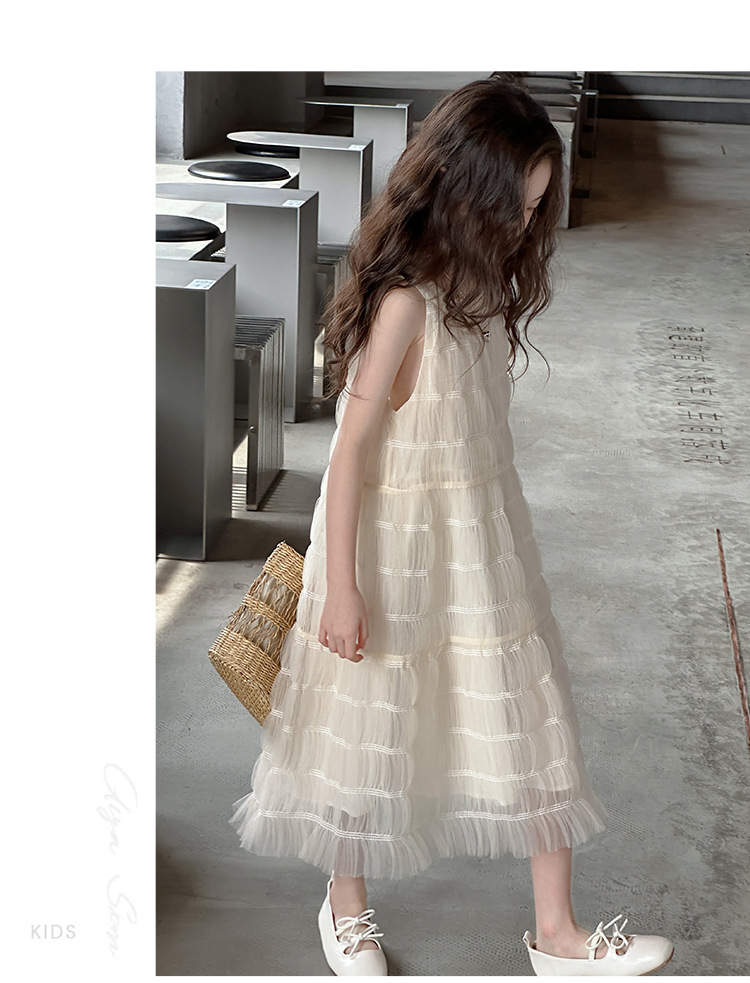 소녀 원피스 여름 2024 새로운 유행 어린이 조끼 스커트 여름 원피스 어린 소녀의 메쉬 공주 스커트 아동복스토어 가기