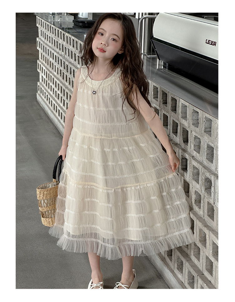 소녀 원피스 여름 2024 새로운 유행 어린이 조끼 스커트 여름 원피스 어린 소녀의 메쉬 공주 스커트 아동복