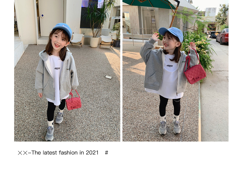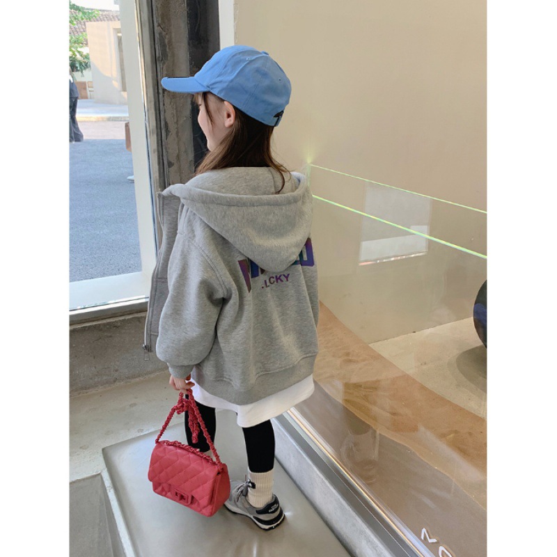 어린이 후드 스웨트 소녀 코트 2024 새로운 한국 스타일 봄과 가을 코트 아기 소녀의 봄 서양식 재킷