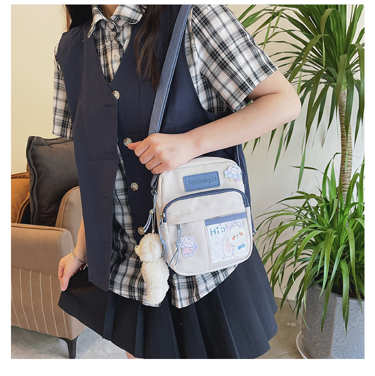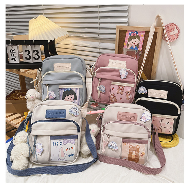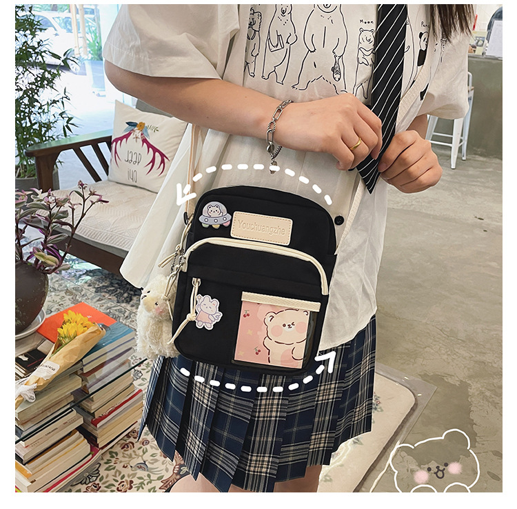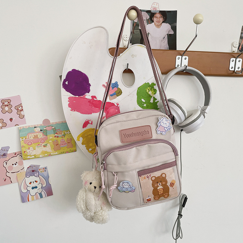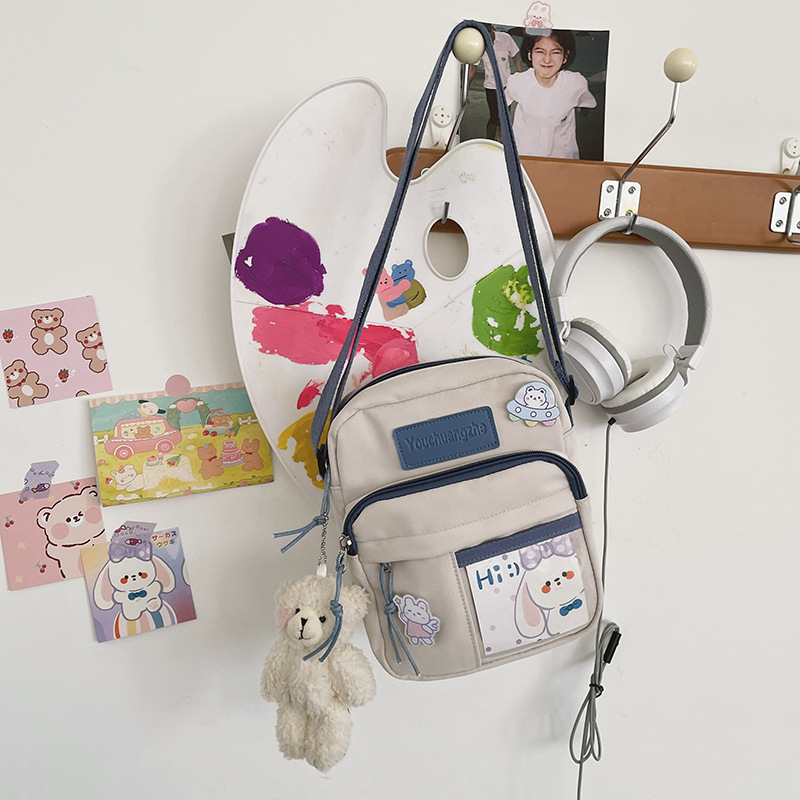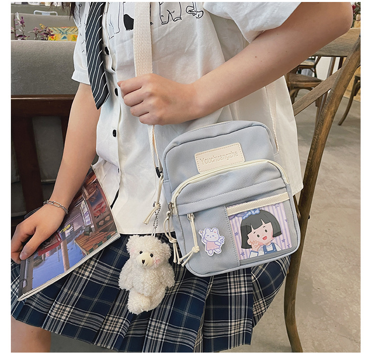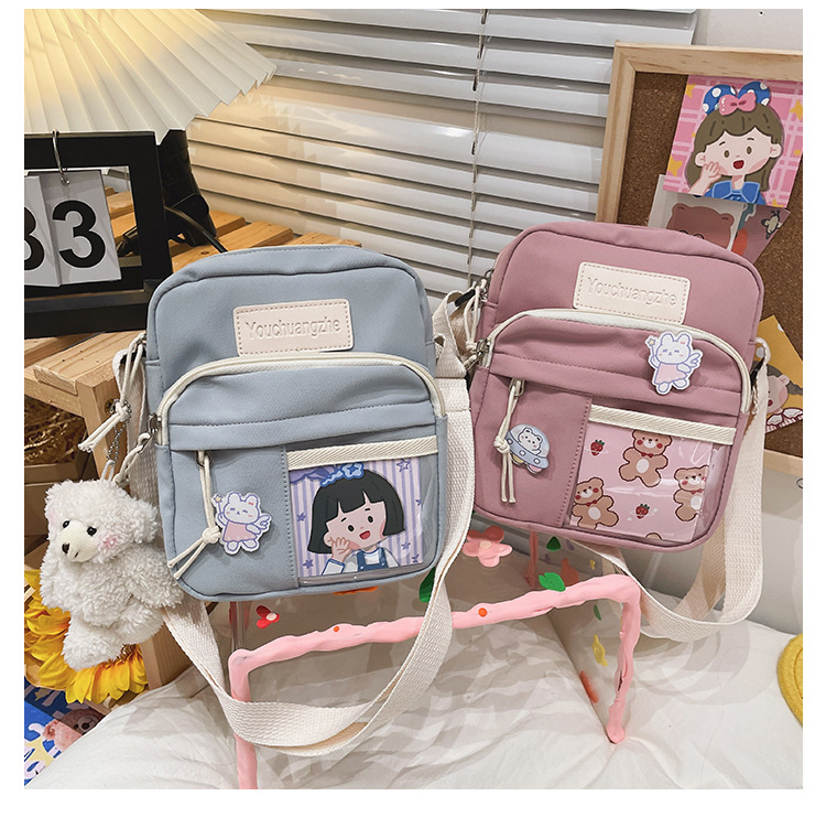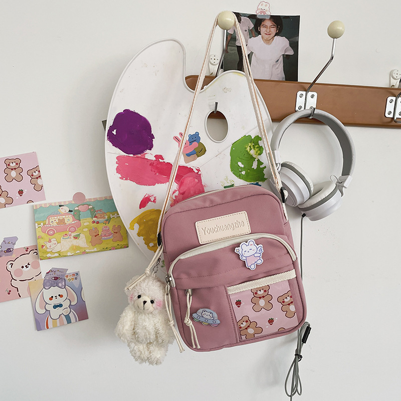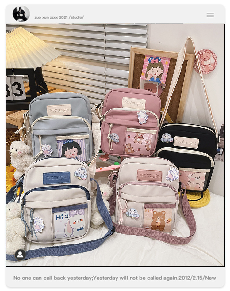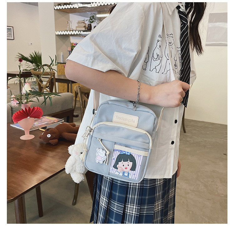 귀여운 만화 어깨 가방 여성 일본 스타일 신선한 스타일 부드러운 소녀 가방 여성 학생 캐주얼 크로스 바디 가방 휴대 전화 작은 사첼스토어 가기