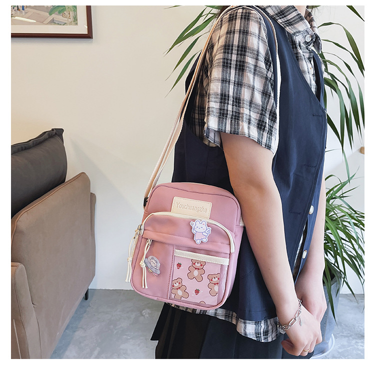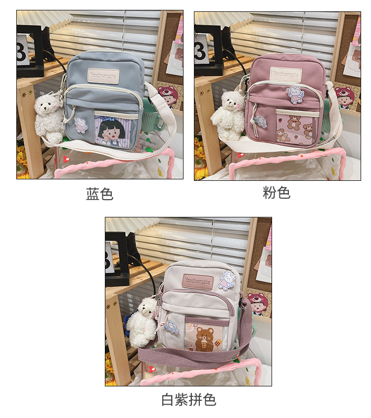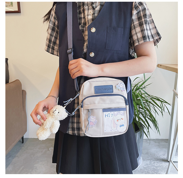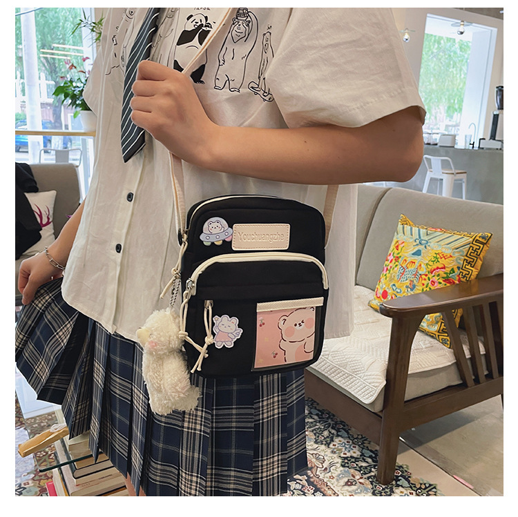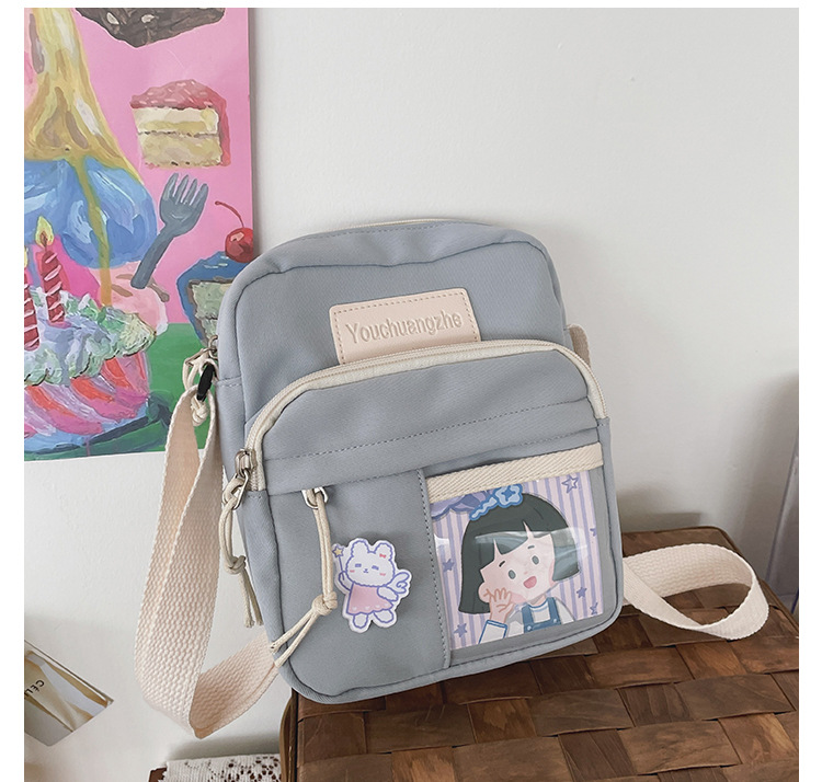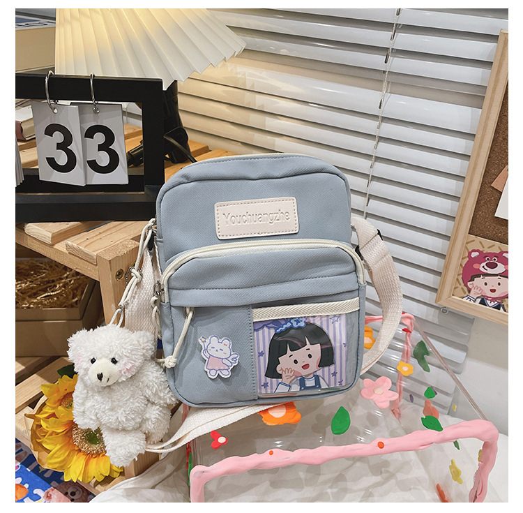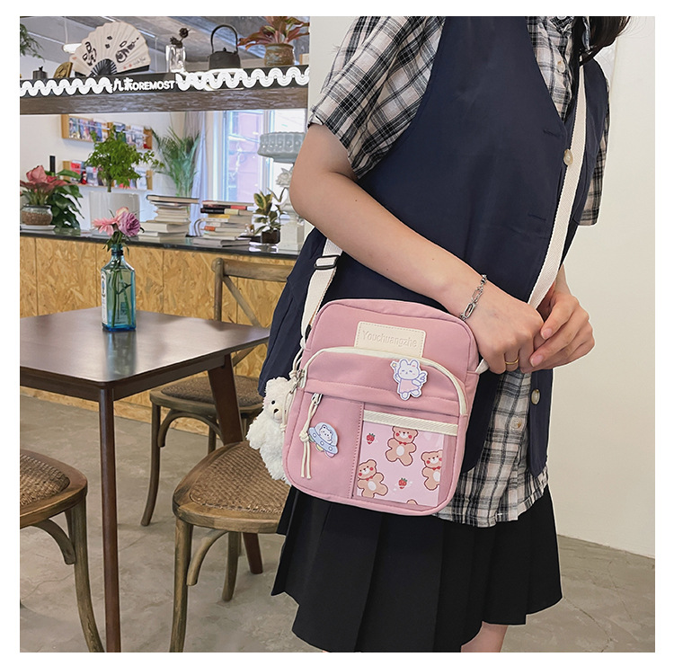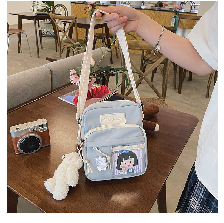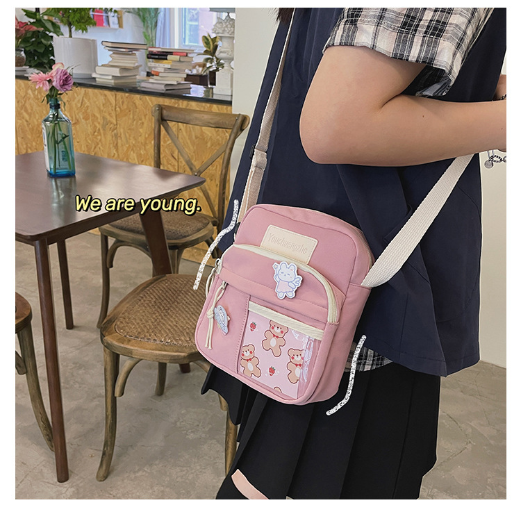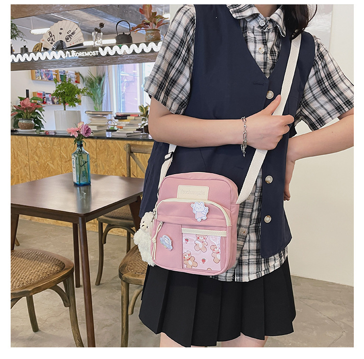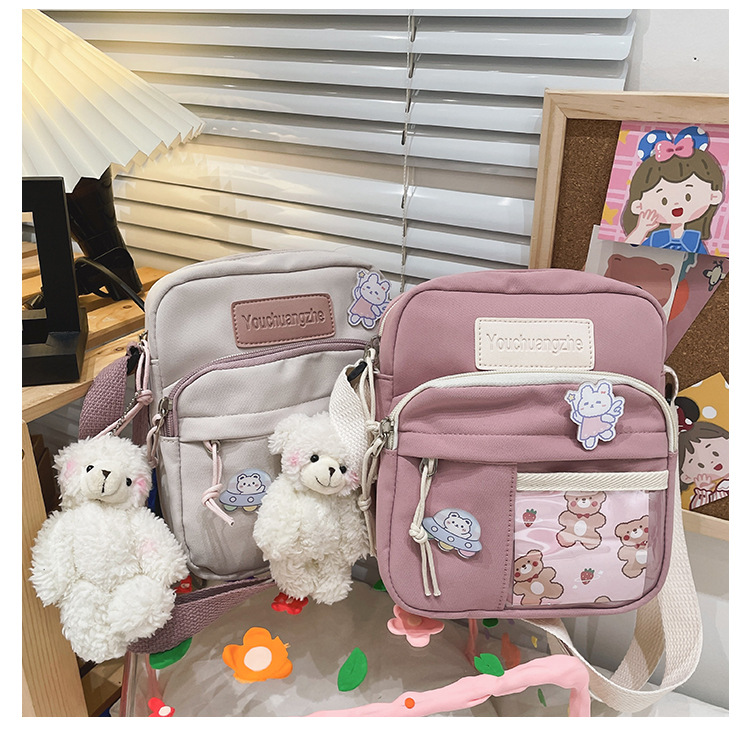 귀여운 만화 어깨 가방 여성 일본 스타일 신선한 스타일 부드러운 소녀 가방 여성 학생 캐주얼 크로스 바디 가방 휴대 전화 작은 사첼스토어 가기