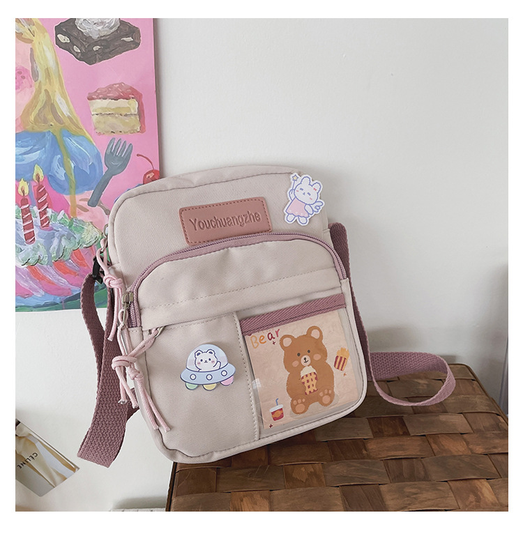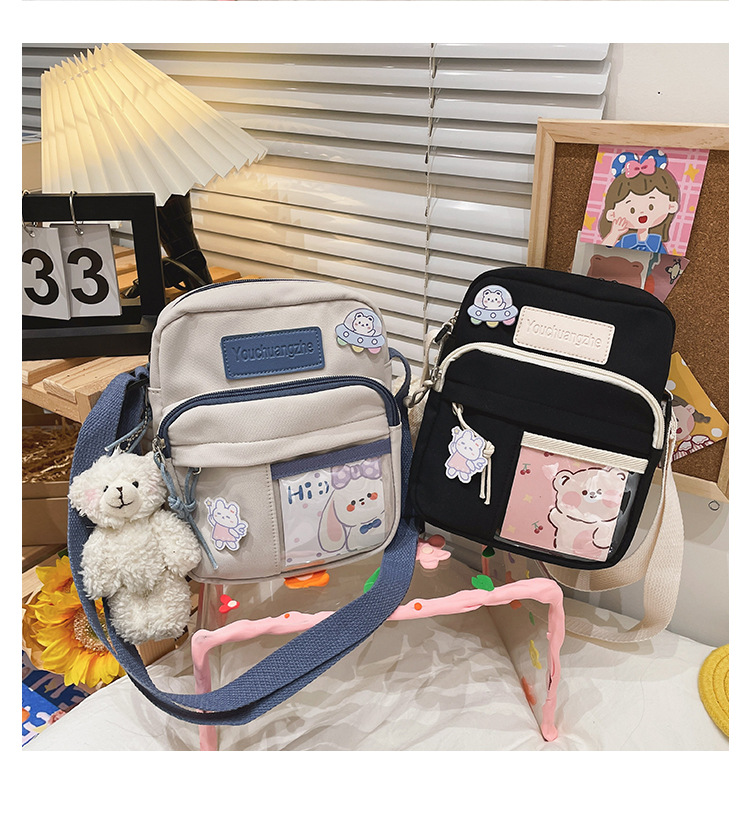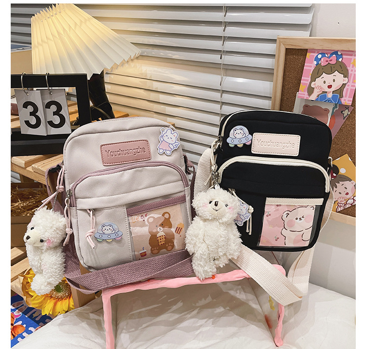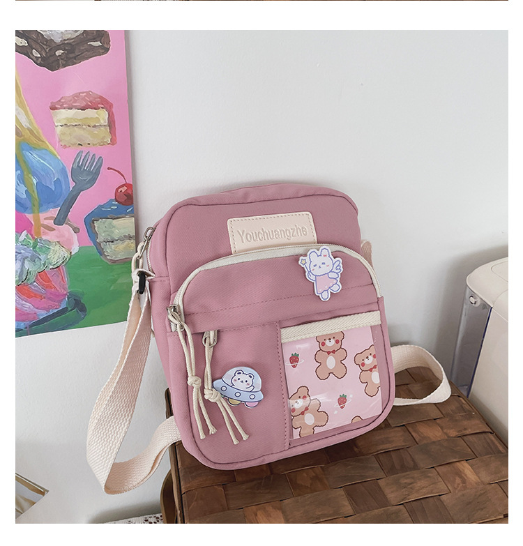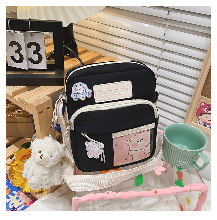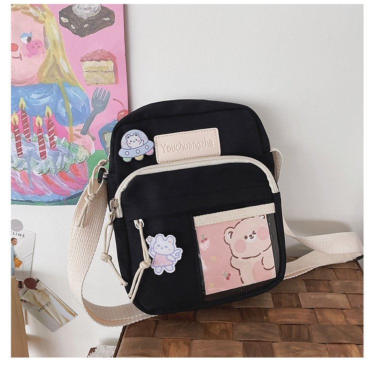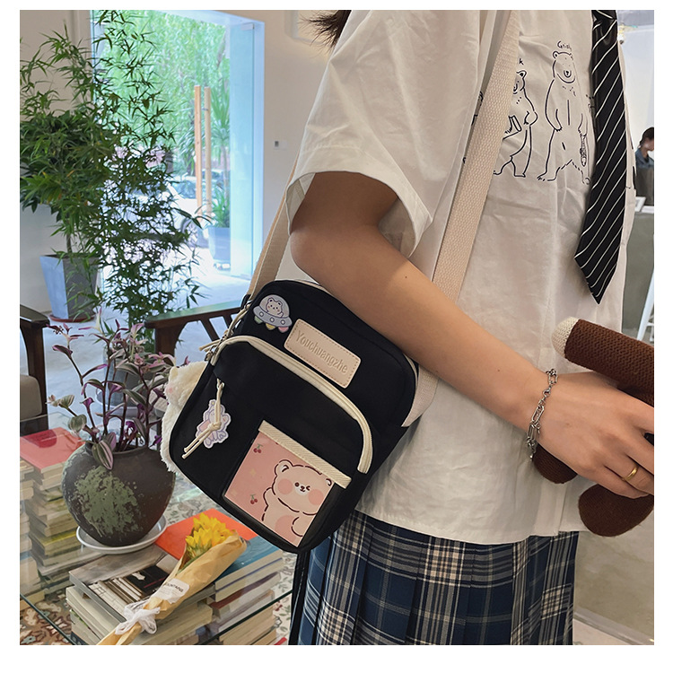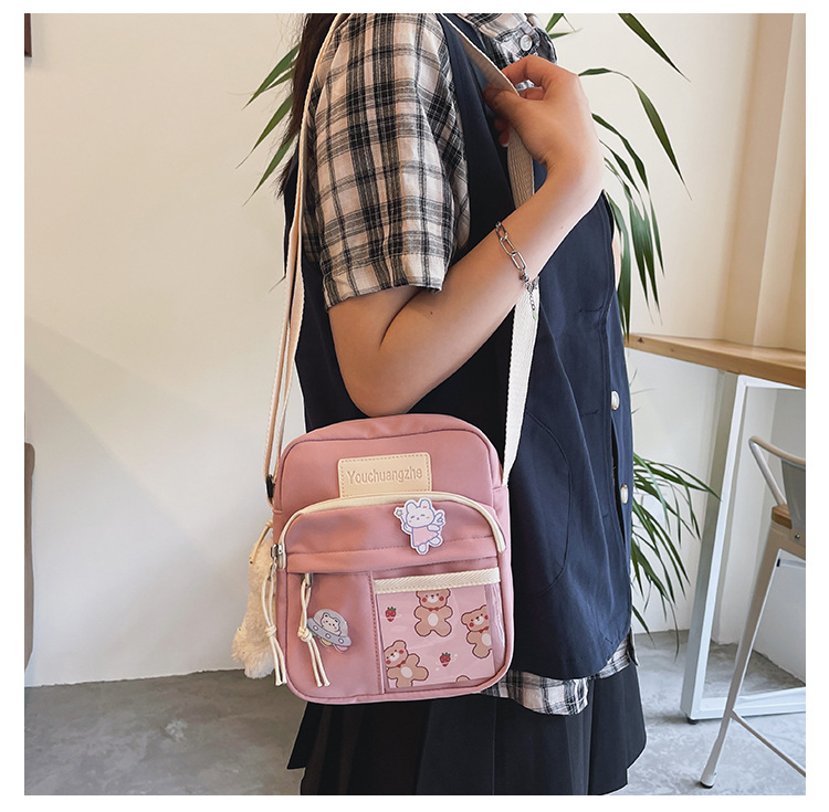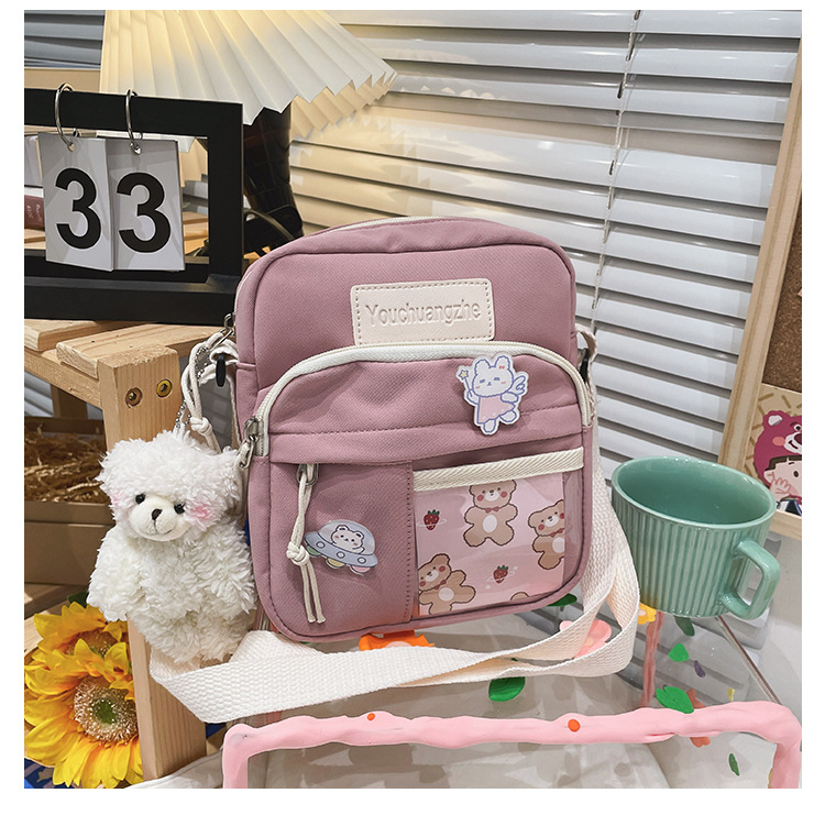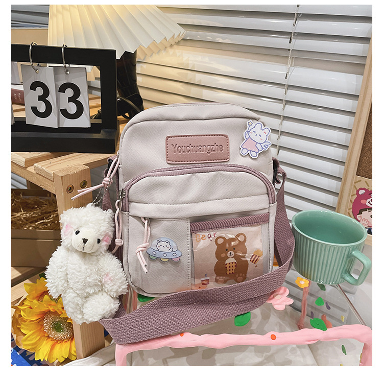 귀여운 만화 어깨 가방 여성 일본 스타일 신선한 스타일 부드러운 소녀 가방 여성 학생 캐주얼 크로스 바디 가방 휴대 전화 작은 사첼스토어 가기