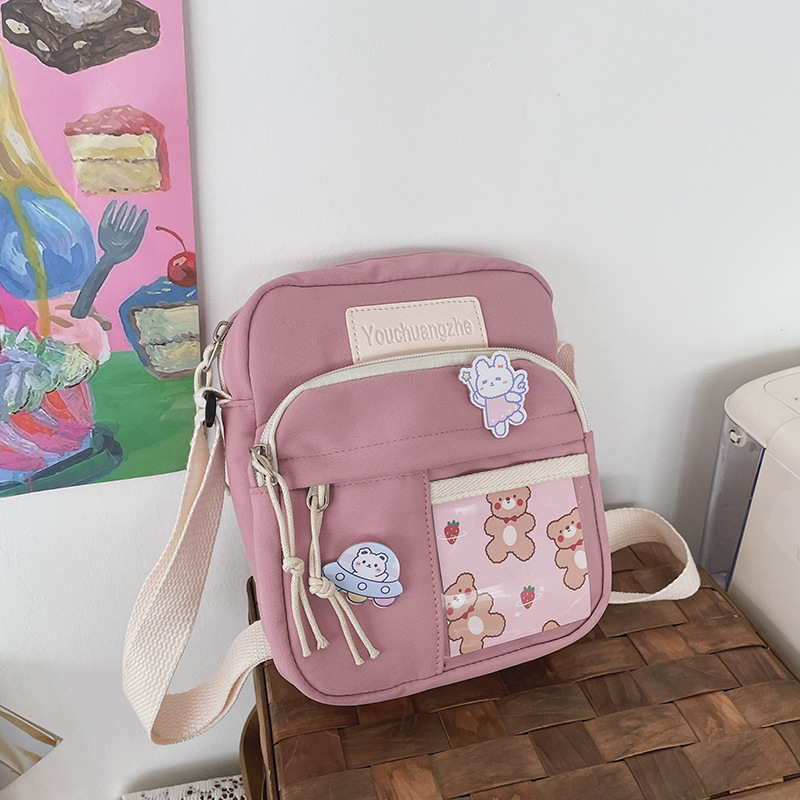 귀여운 만화 어깨 가방 여성 일본 스타일 신선한 스타일 부드러운 소녀 가방 여성 학생 캐주얼 크로스 바디 가방 휴대 전화 작은 사첼