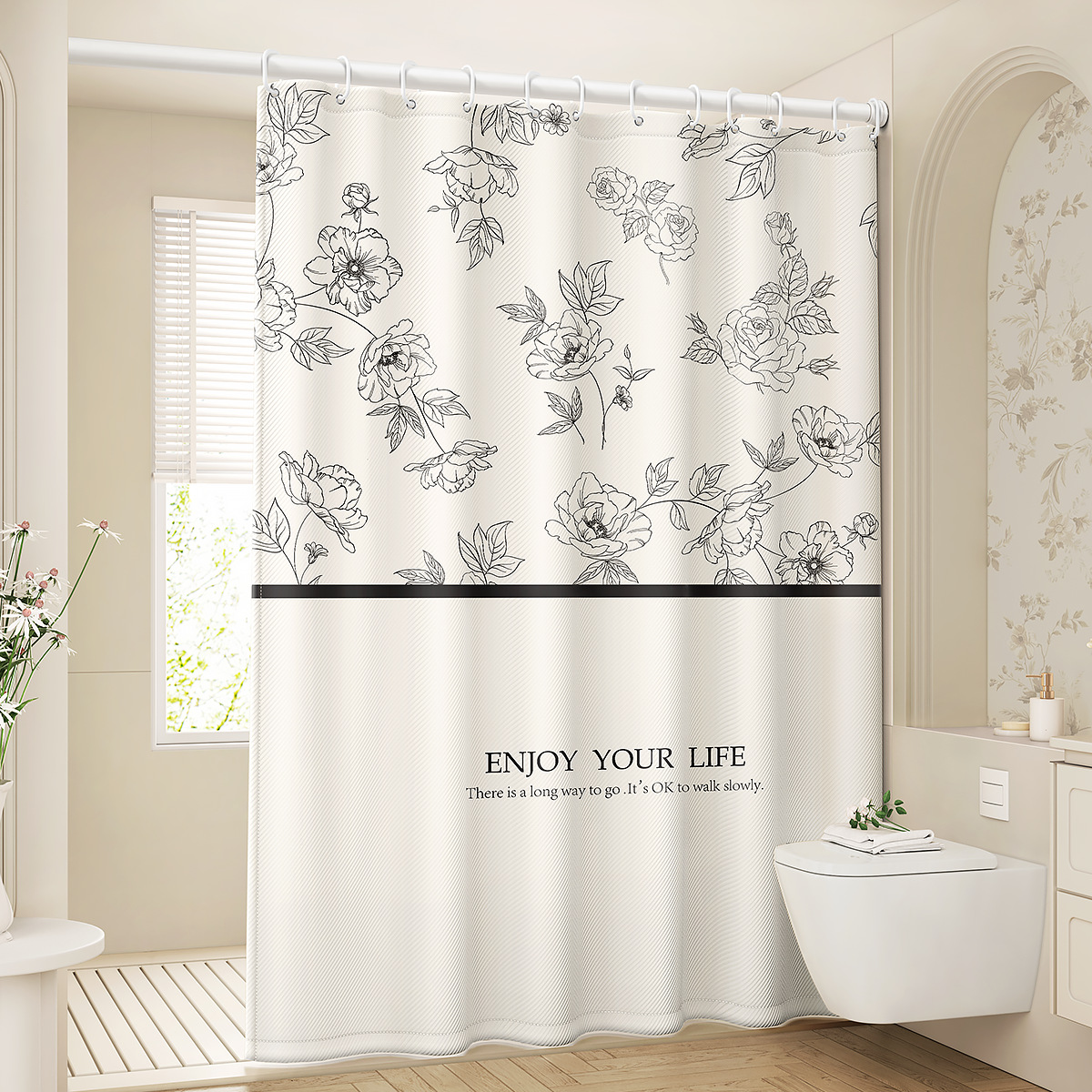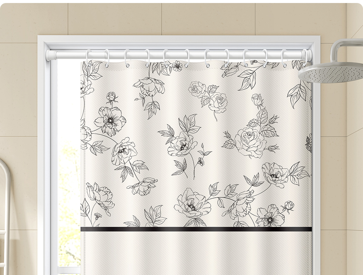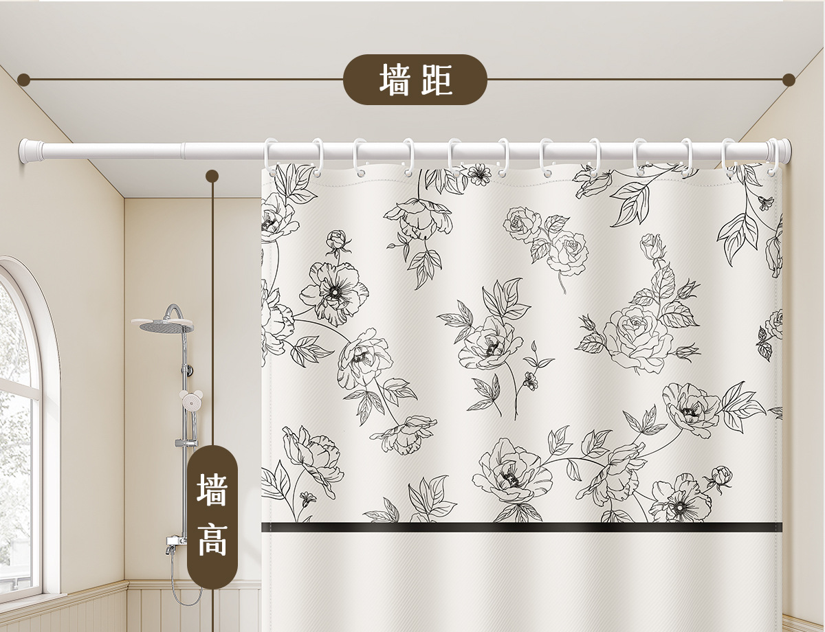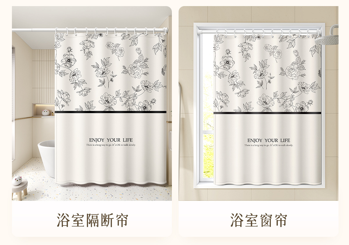 새로운 프랑스 방수 및 곰팡이 방지 샤워 커튼, 욕실 커튼, 방수 천 샤워 커튼, 펀치 프리 세트, 욕실 칸막이 커튼스토어 가기