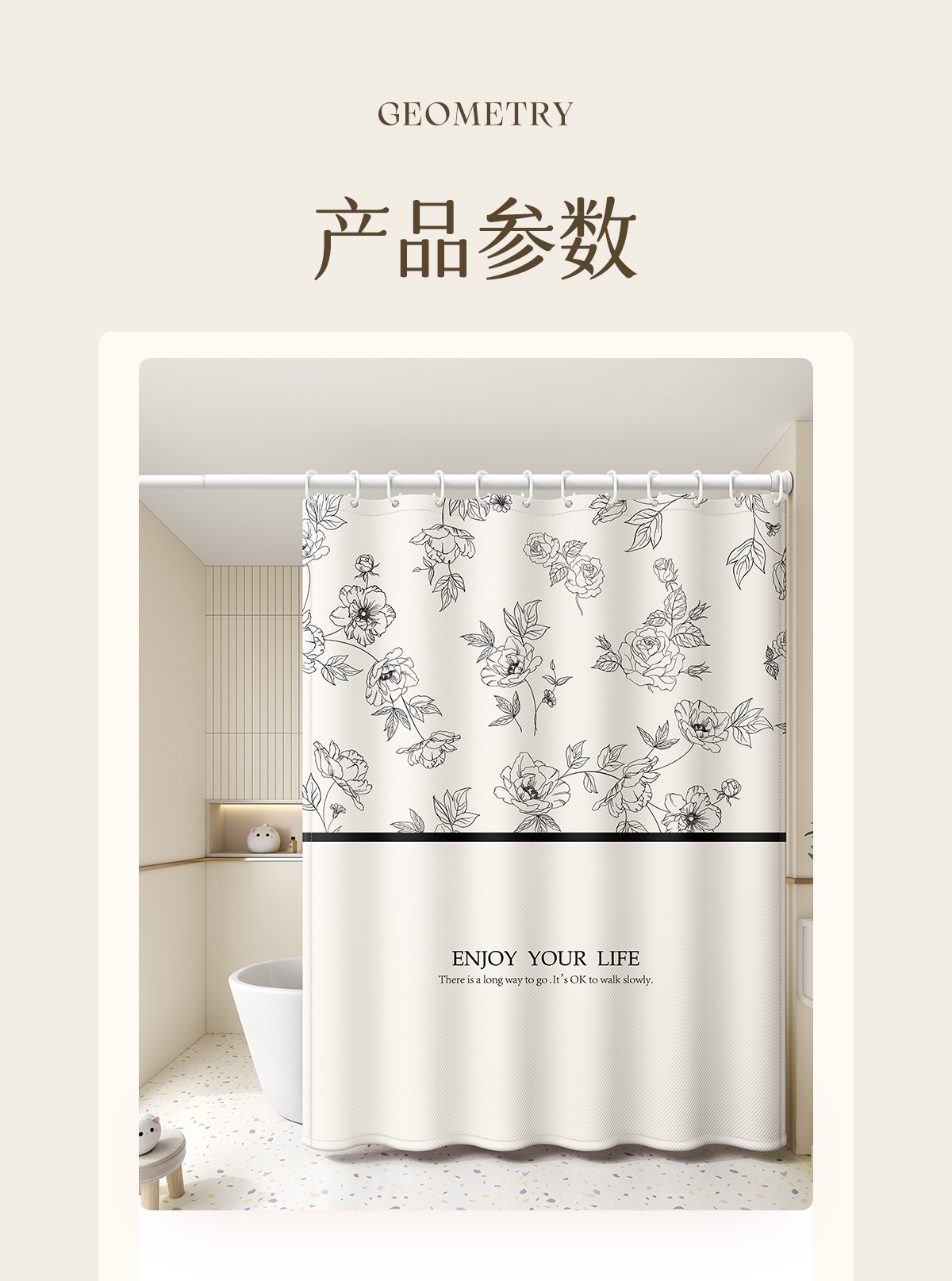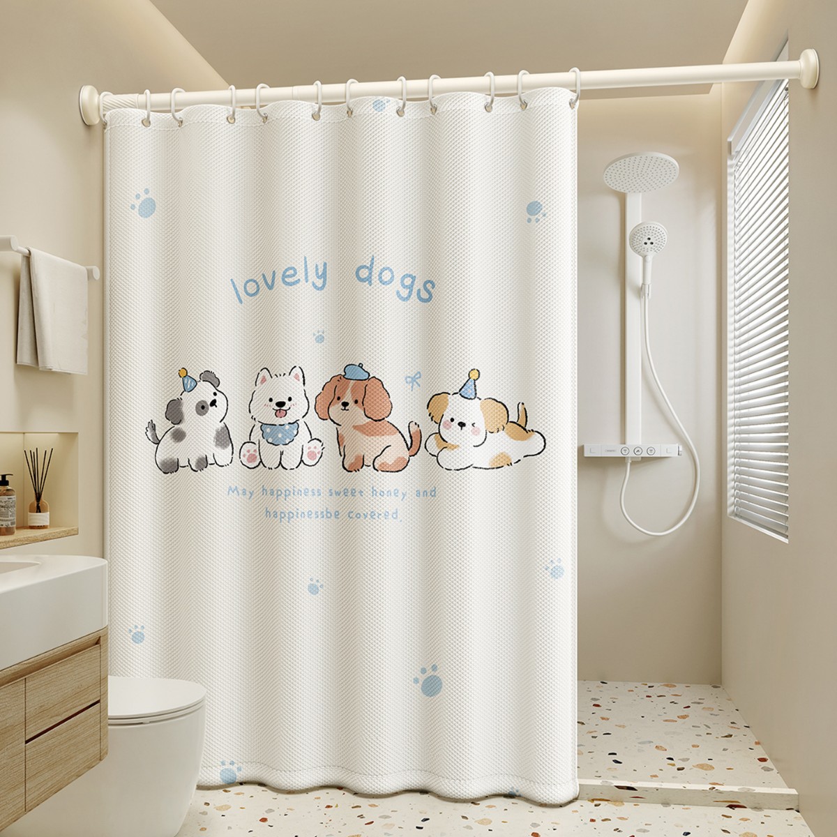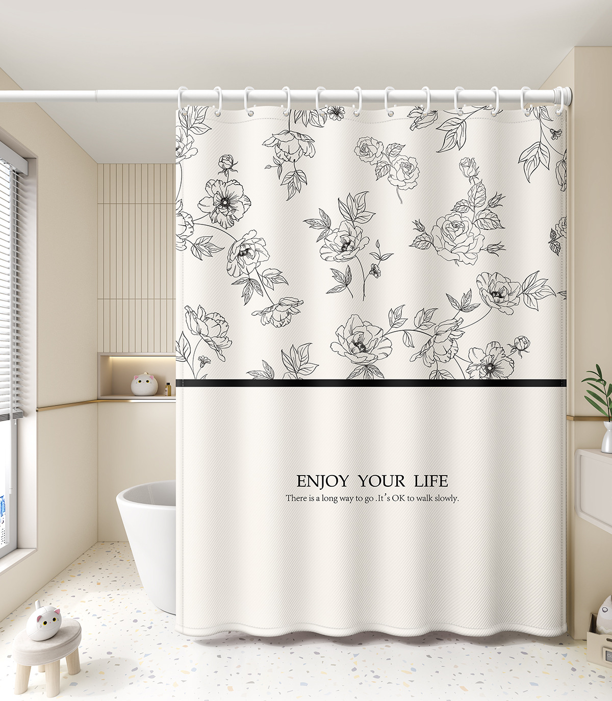 새로운 프랑스 방수 및 곰팡이 방지 샤워 커튼, 욕실 커튼, 방수 천 샤워 커튼, 펀치 프리 세트, 욕실 칸막이 커튼스토어 가기