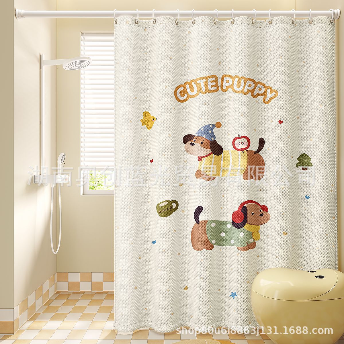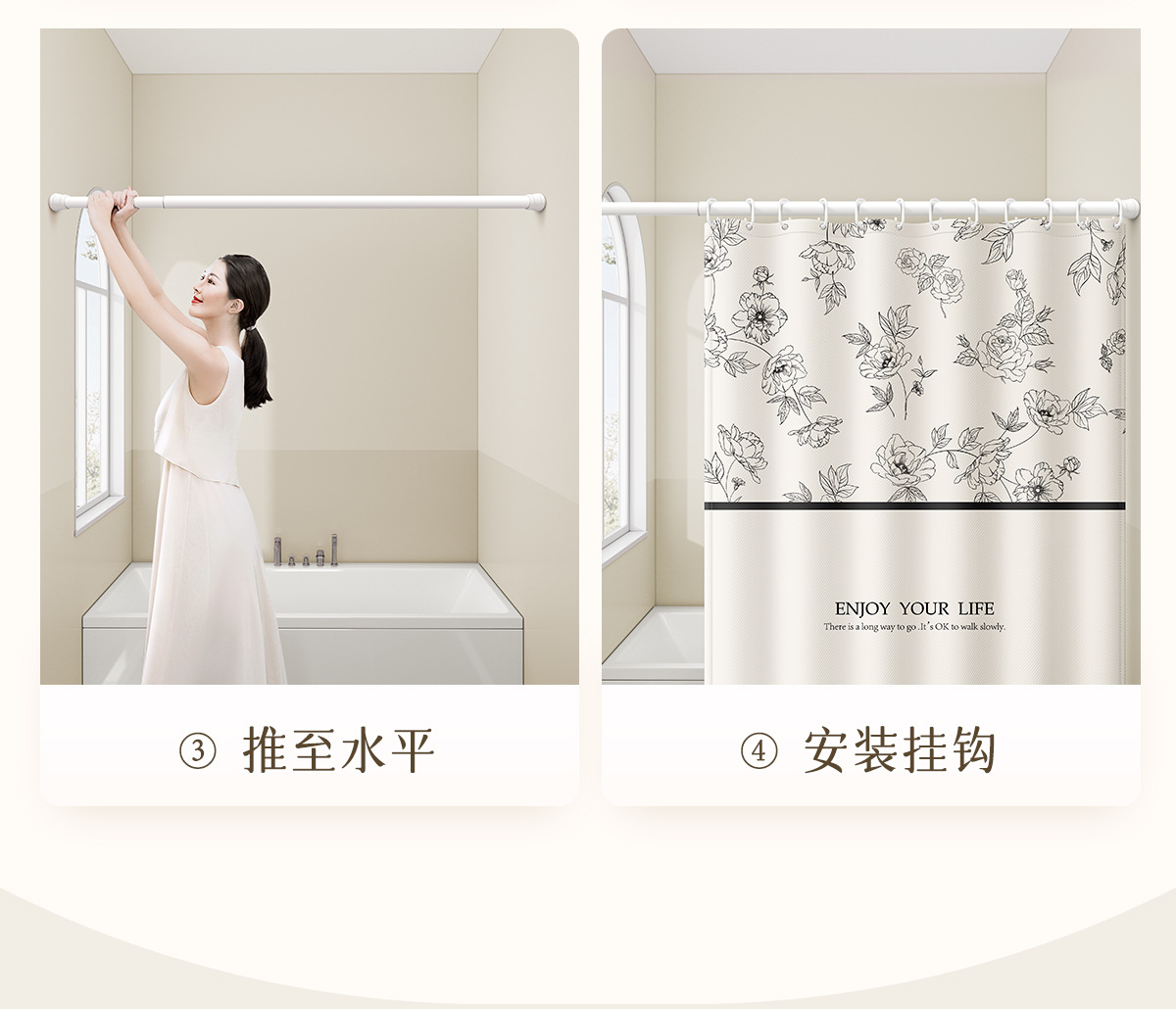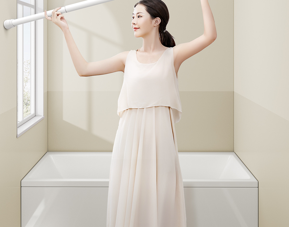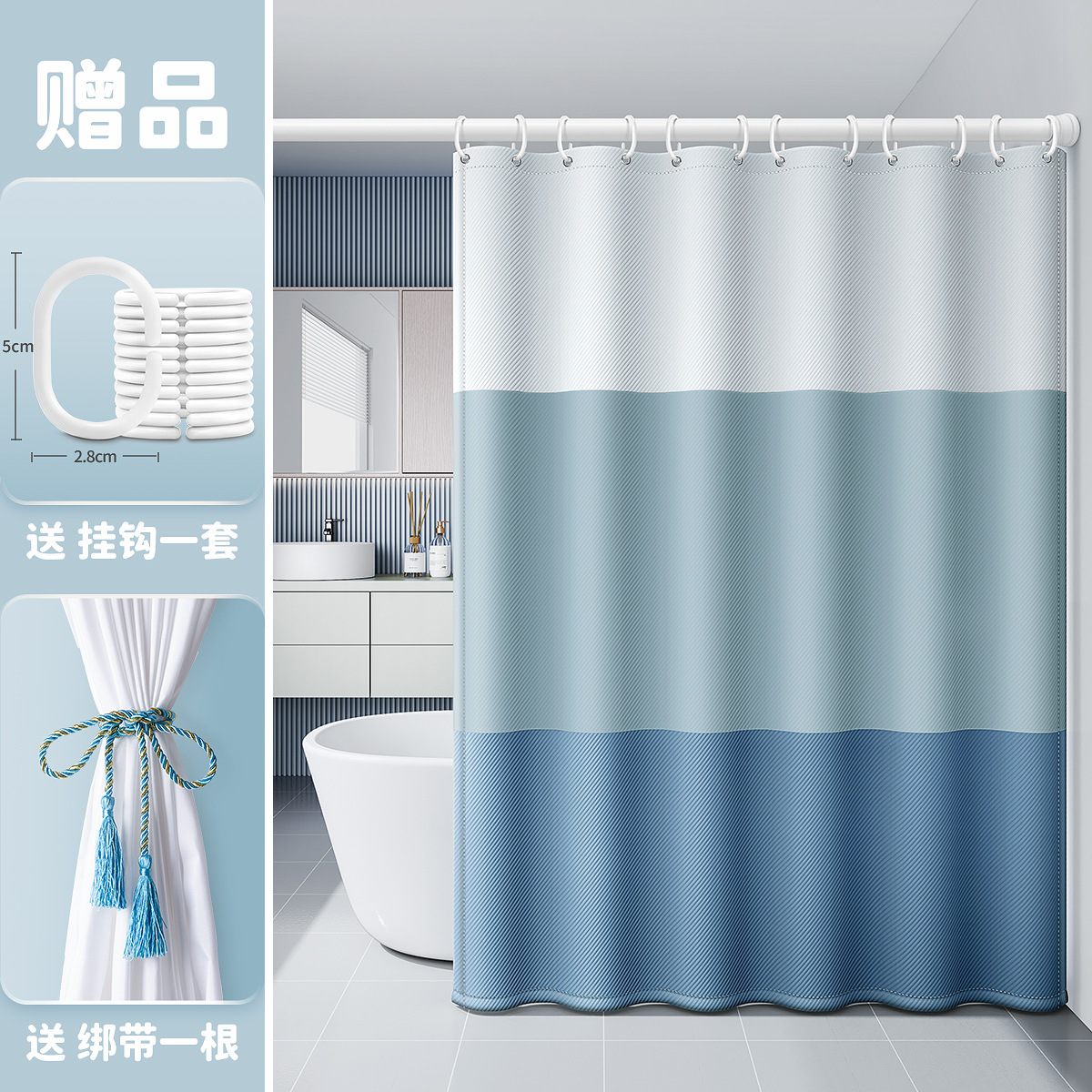 새로운 프랑스 방수 및 곰팡이 방지 샤워 커튼, 욕실 커튼, 방수 천 샤워 커튼, 펀치 프리 세트, 욕실 칸막이 커튼스토어 가기