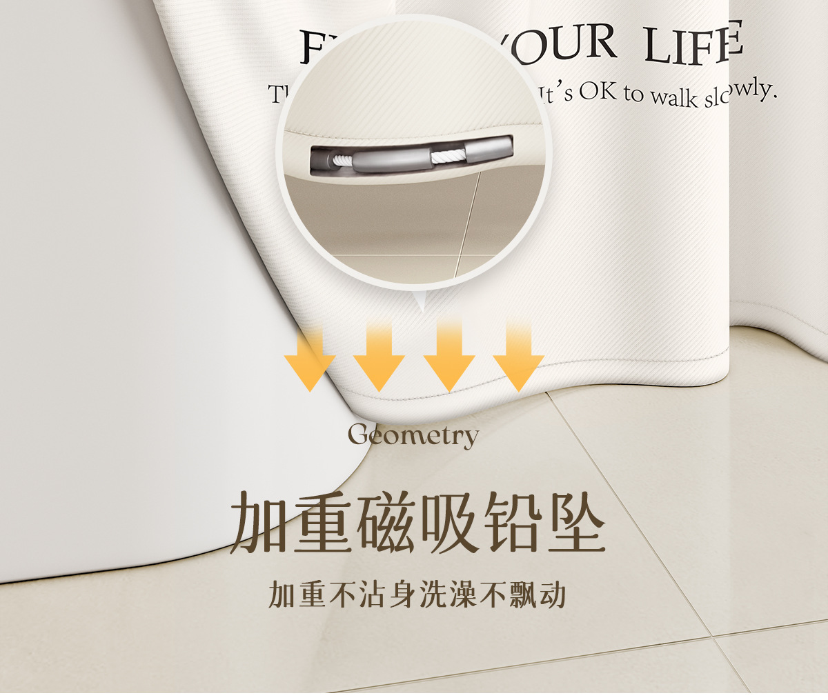 새로운 프랑스 방수 및 곰팡이 방지 샤워 커튼, 욕실 커튼, 방수 천 샤워 커튼, 펀치 프리 세트, 욕실 칸막이 커튼