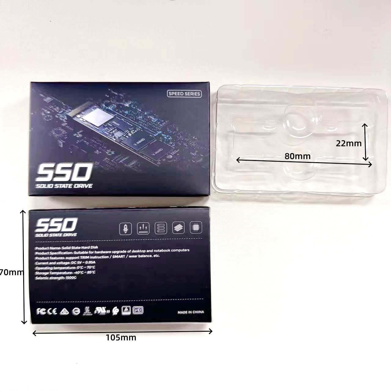 2.5inch SSD 솔리드 스테이트 드라이브 충격 방지 및 낙하 방지 모바일 저장 장치 폴리백 컬러 박스 맞춤형 메모리 패키지