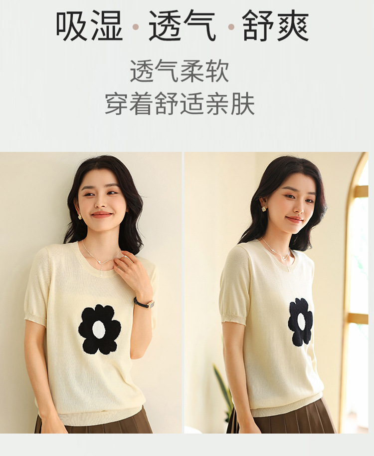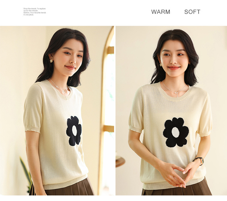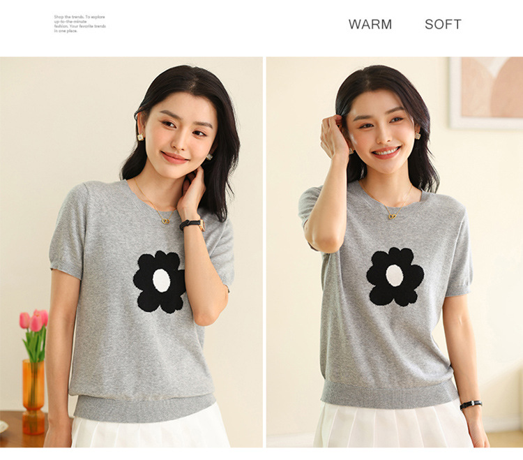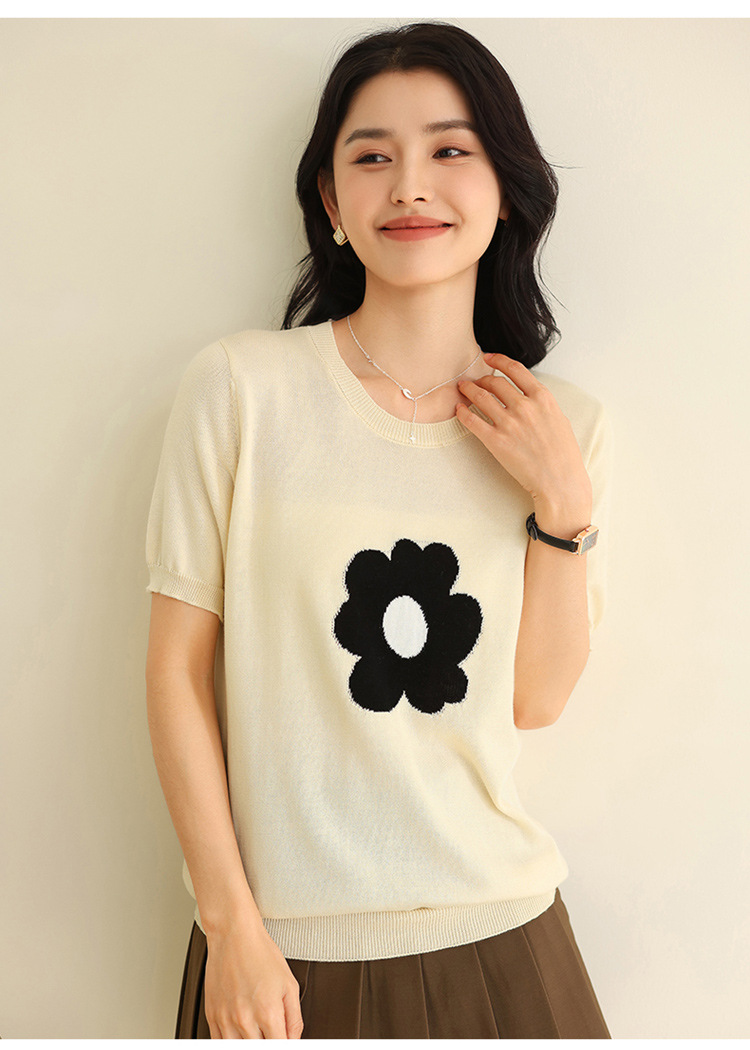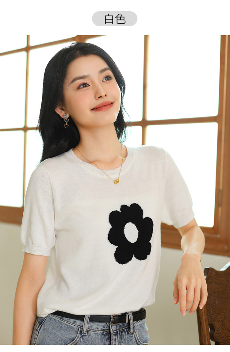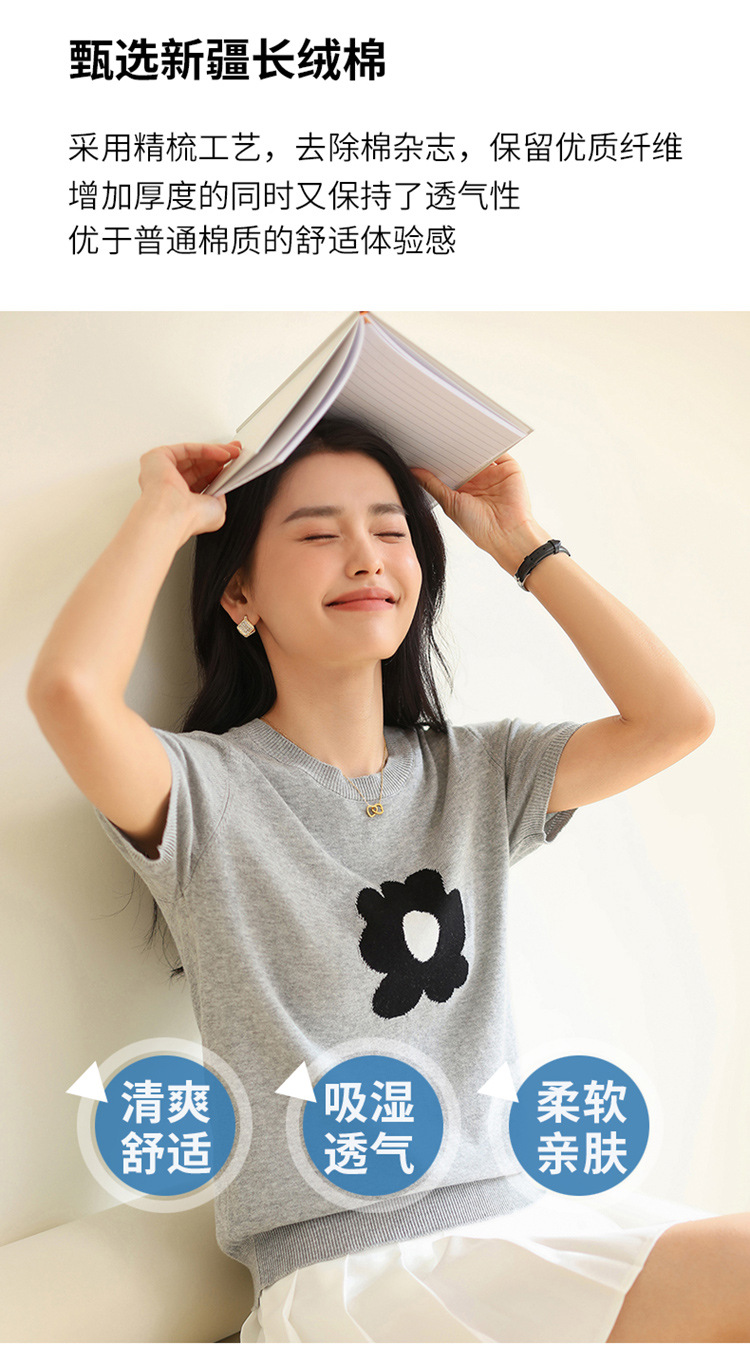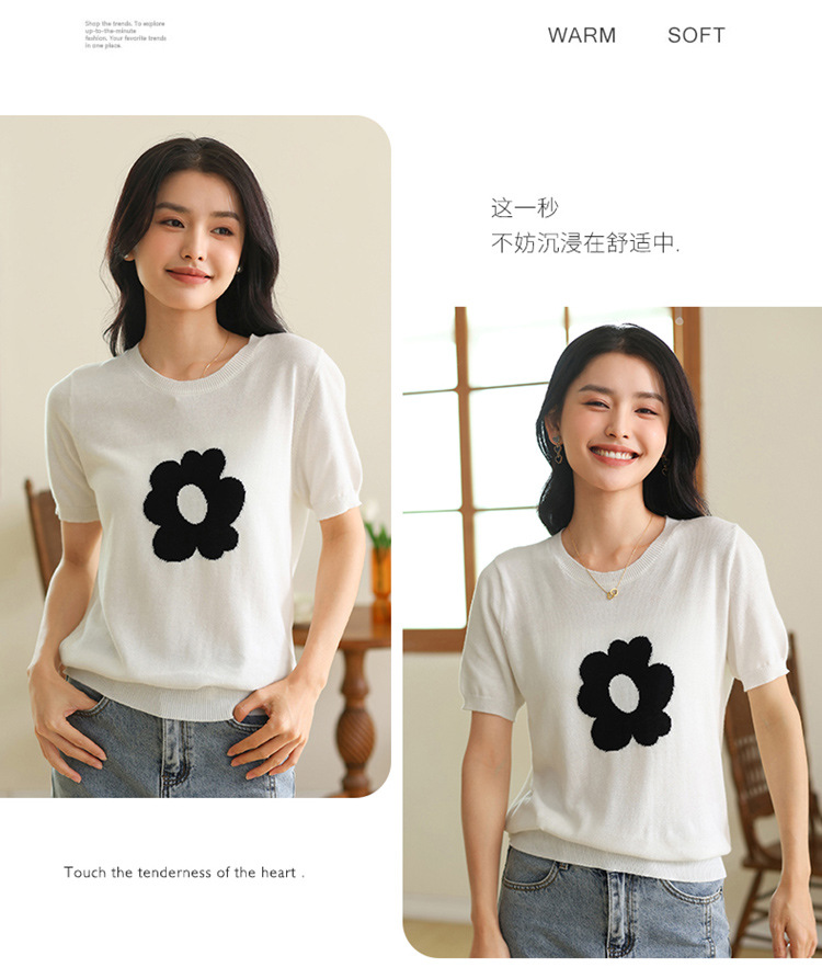 2026년 여름 신상 얇은 순면 라운드넥 우아한 해바라기 티셔츠 여성용 루즈핏 다용도 반팔 티셔츠 니트웨어스토어 가기