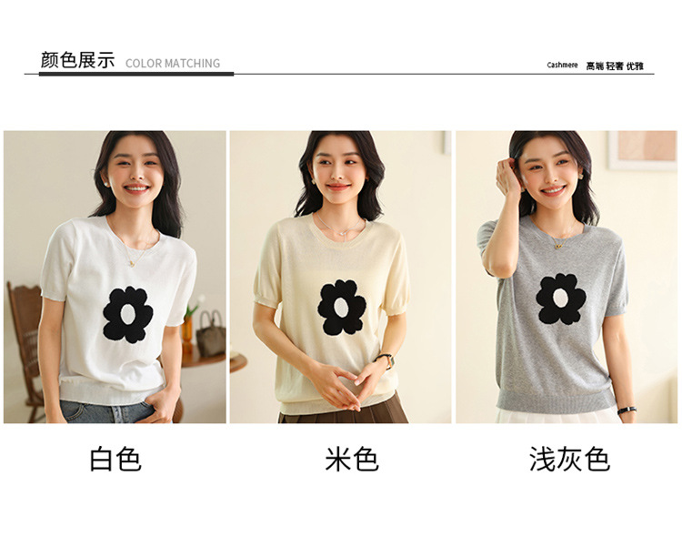 2026년 여름 신상 얇은 순면 라운드넥 우아한 해바라기 티셔츠 여성용 루즈핏 다용도 반팔 티셔츠 니트웨어