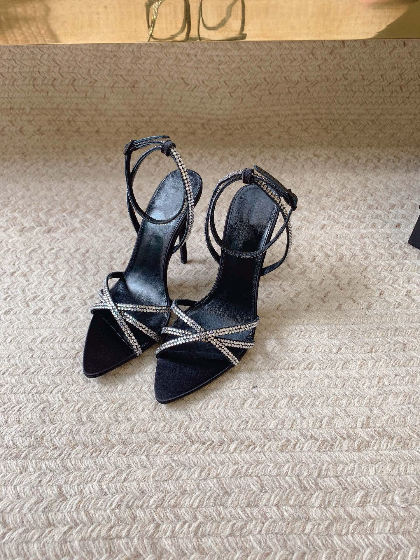 2024 여름 워터 드라이드 브라운 스틸레토 힐 새틴 오픈토 뾰족코 스트랩 크로스 샌들 여성 하이힐스토어 가기