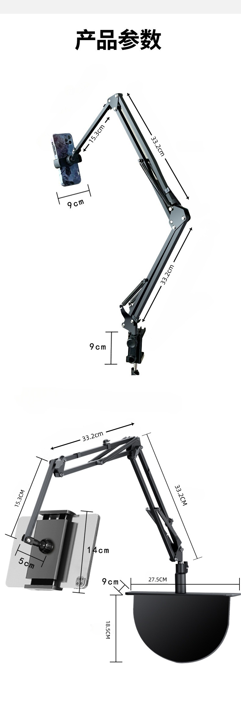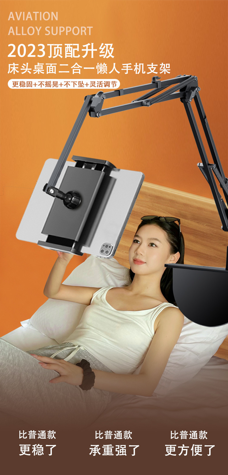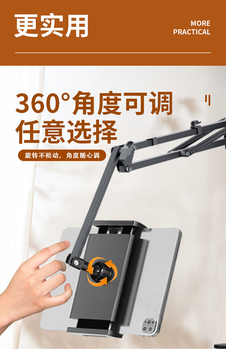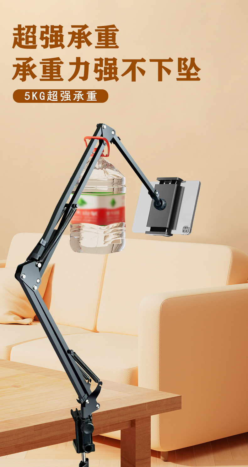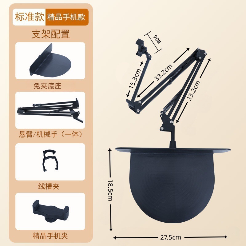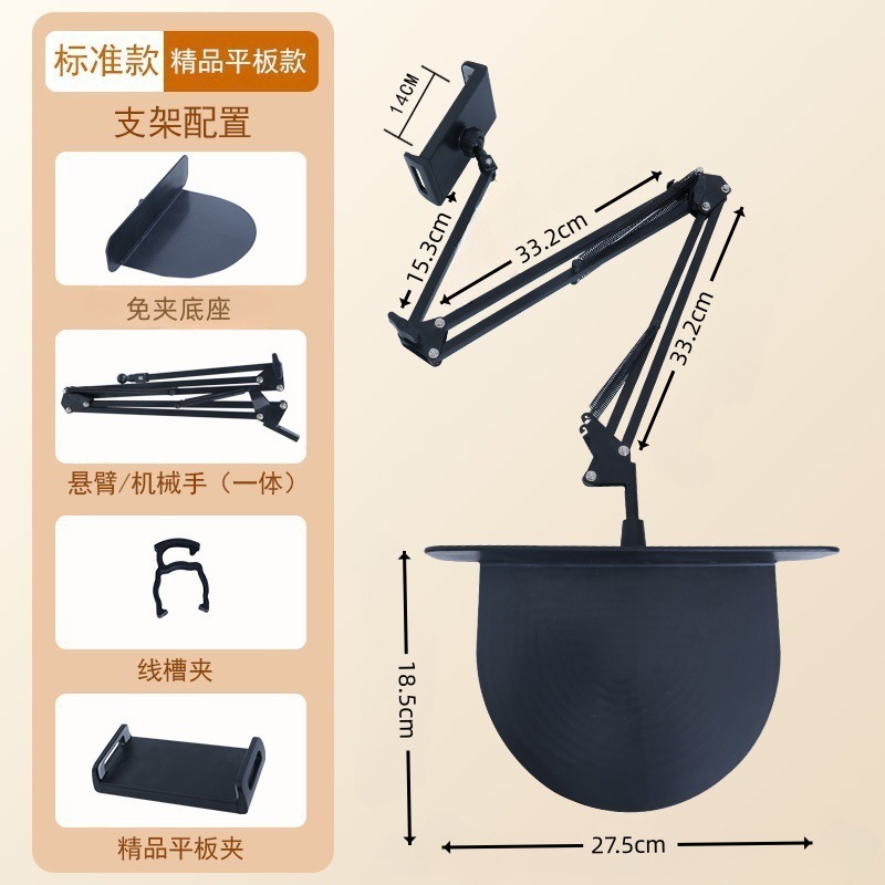 숨겨진 무클립 휴대폰/태블릿 거치대 침대 옆 탁상용 틱톡 메탈 암형 거치대 휴대폰/태블릿 겸용