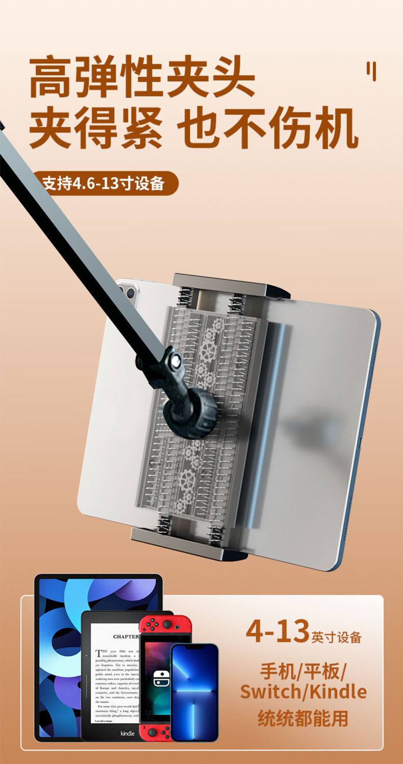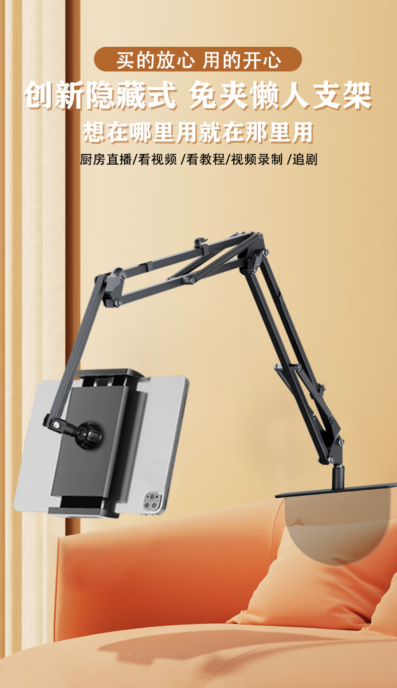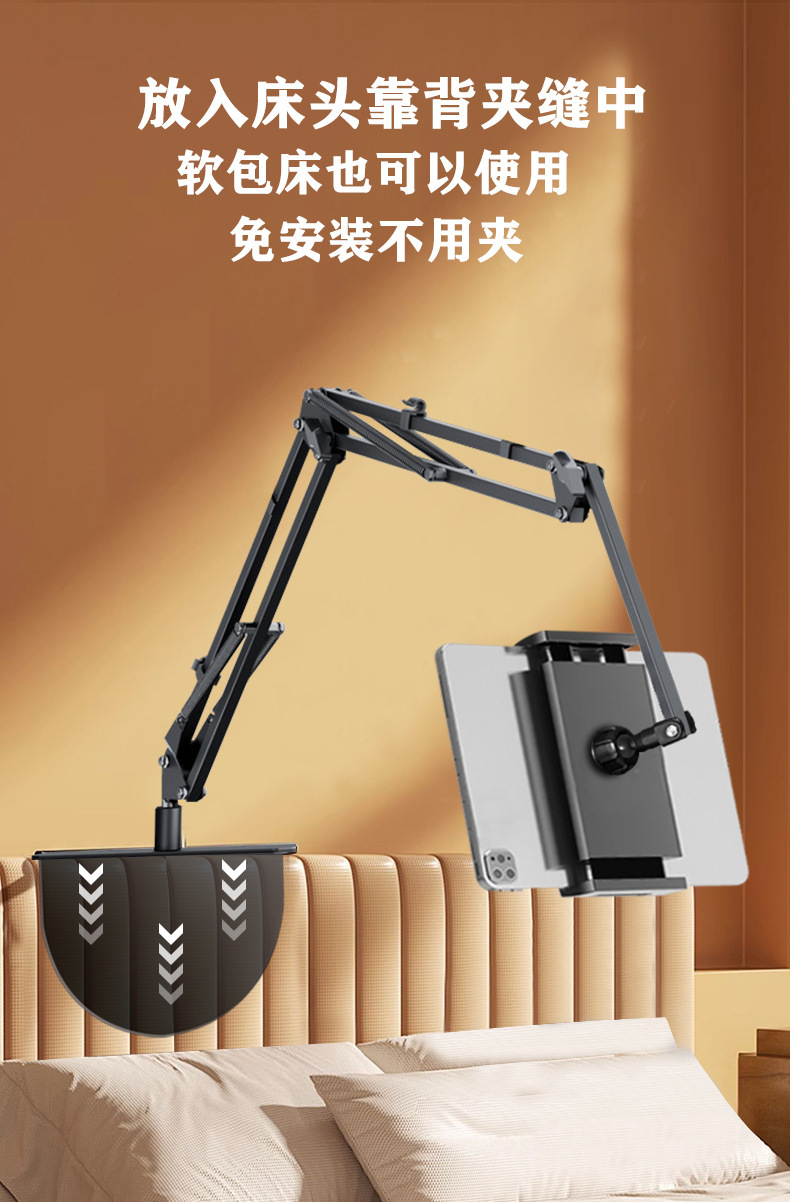 숨겨진 무클립 휴대폰/태블릿 거치대 침대 옆 탁상용 틱톡 메탈 암형 거치대 휴대폰/태블릿 겸용스토어 가기
