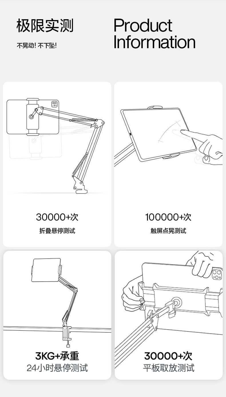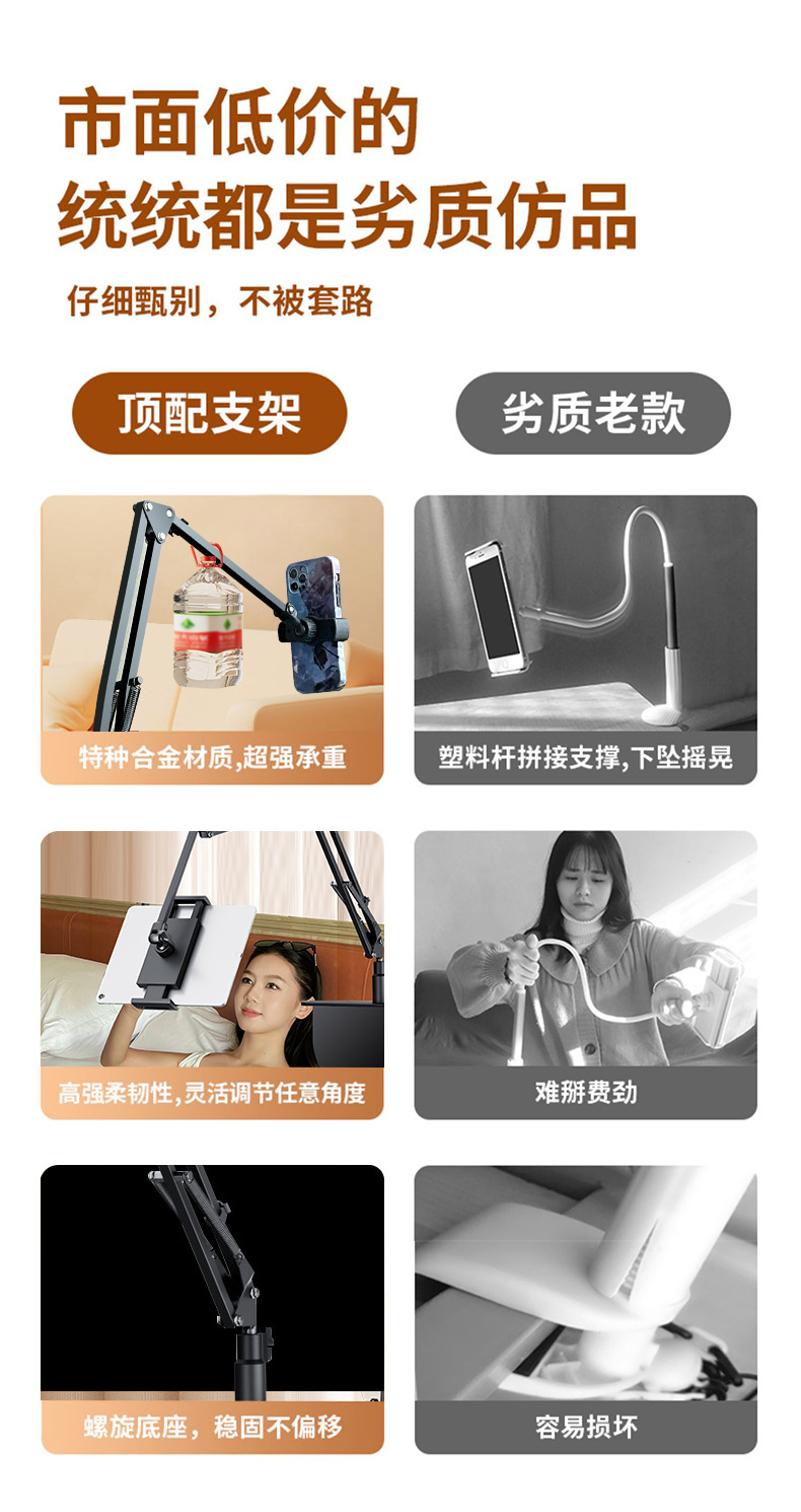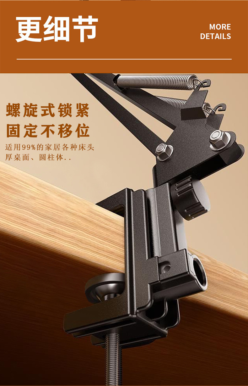 숨겨진 무클립 휴대폰/태블릿 거치대 침대 옆 탁상용 틱톡 메탈 암형 거치대 휴대폰/태블릿 겸용스토어 가기