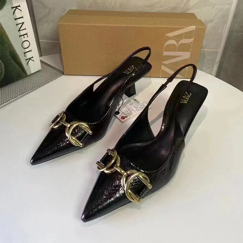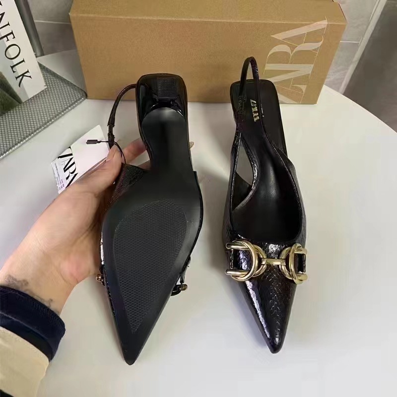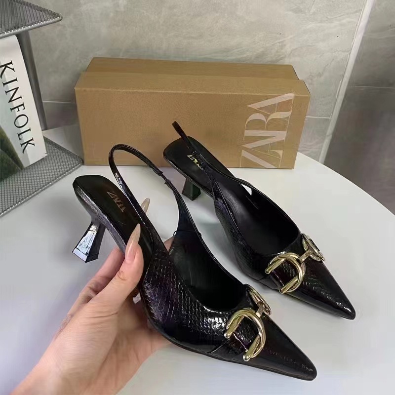 2024 년 여름 여성 신발 뾰족한 발가락 액세서리 세부 노출 된 힐 하이힐 바오 터우 샌들 얕은 입 캐주얼 얇은 힐 뮬 신발스토어 가기