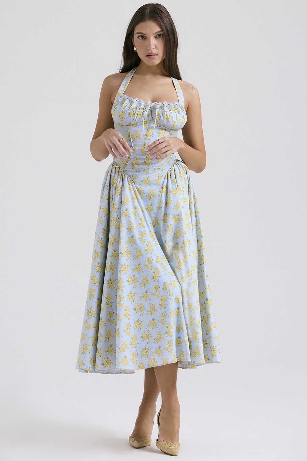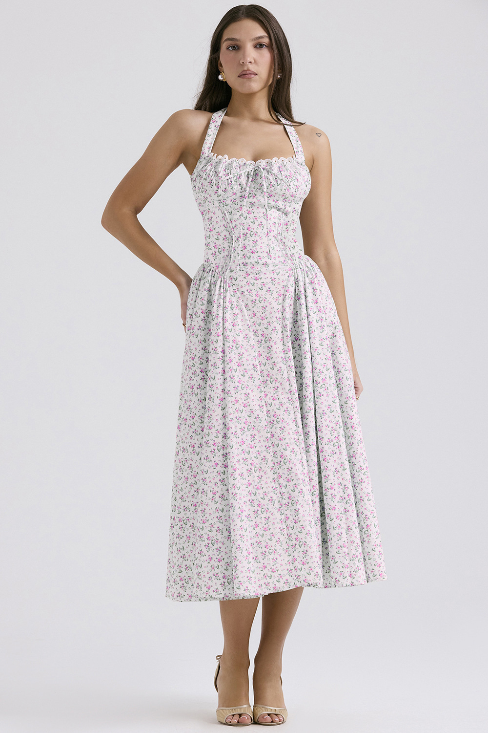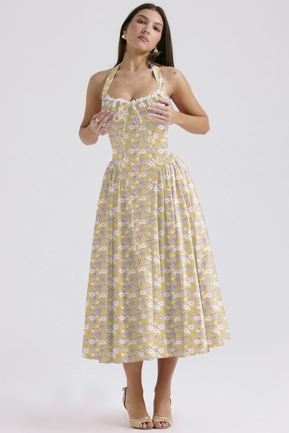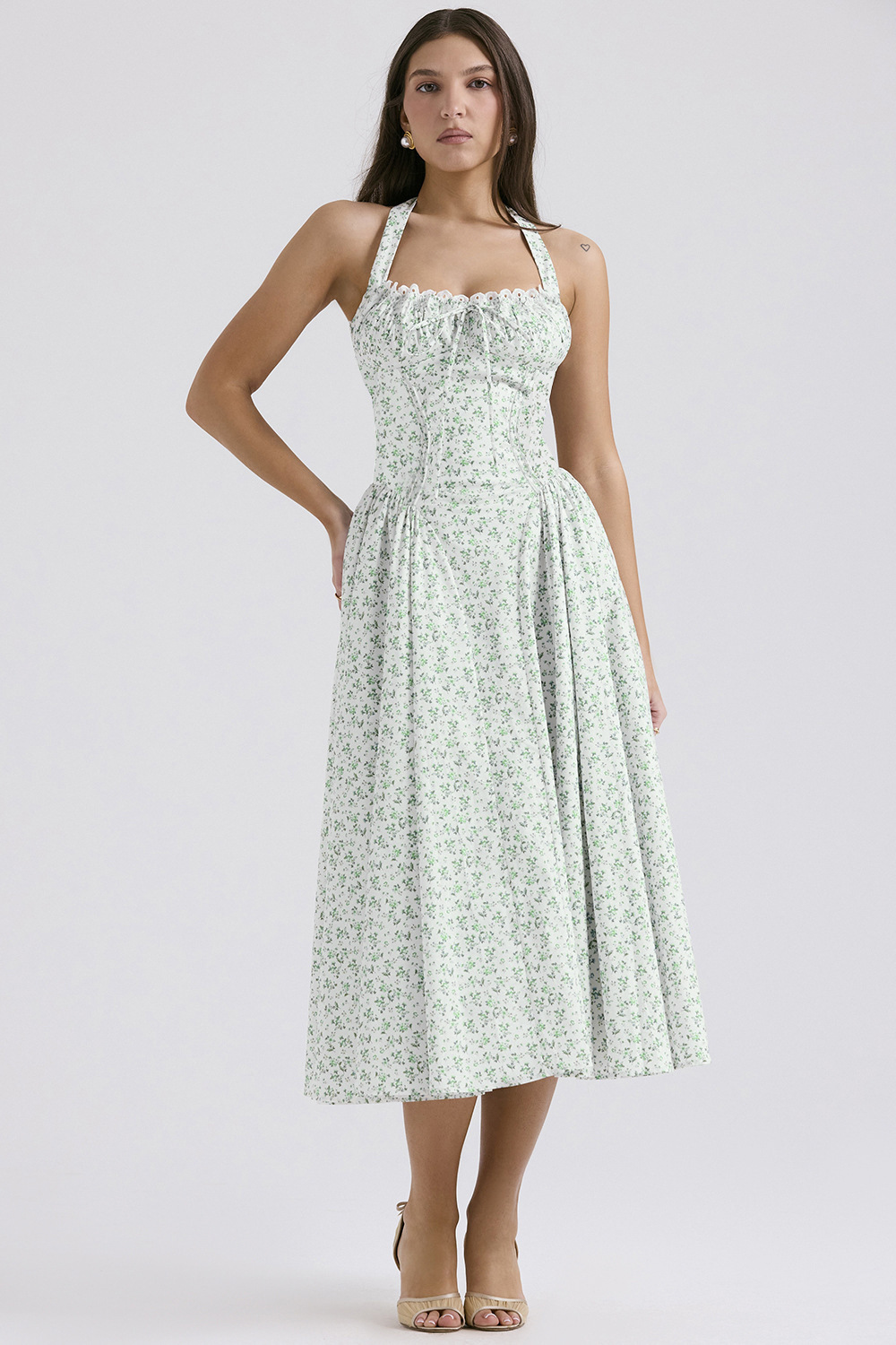 국경 간 아마존 여름 새로운 패션 슬림 슬링 긴 원피스 유럽과 미국의 프랑스 인쇄 목 레이스 원피스
