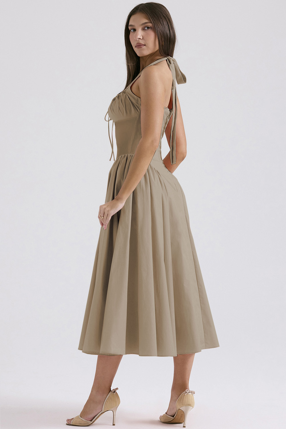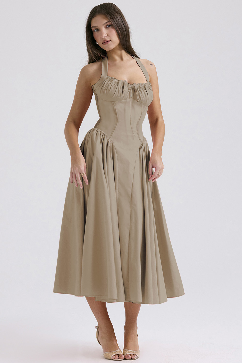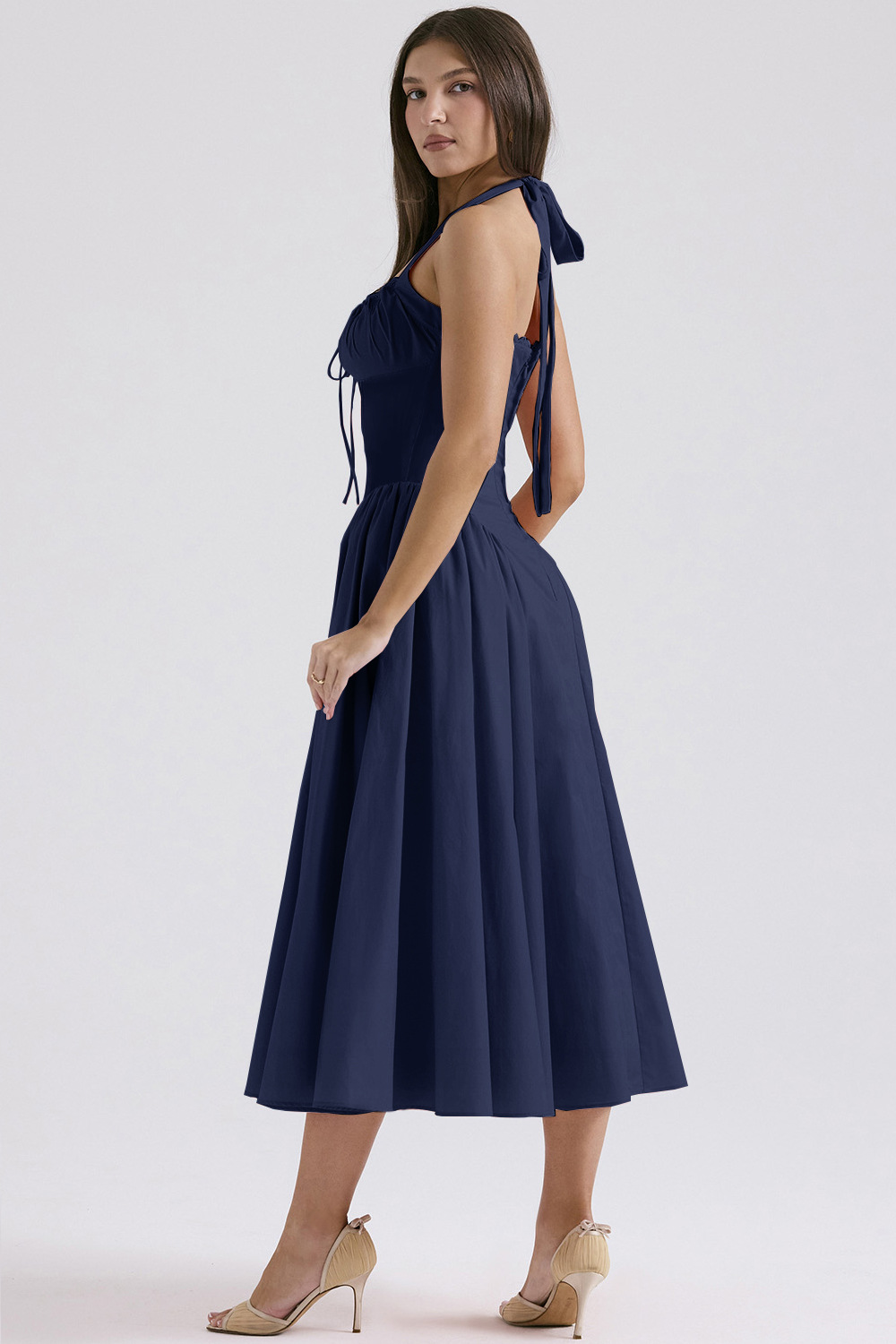 국경 간 아마존 여름 새로운 패션 슬림 슬링 긴 원피스 유럽과 미국의 프랑스 인쇄 목 레이스 원피스