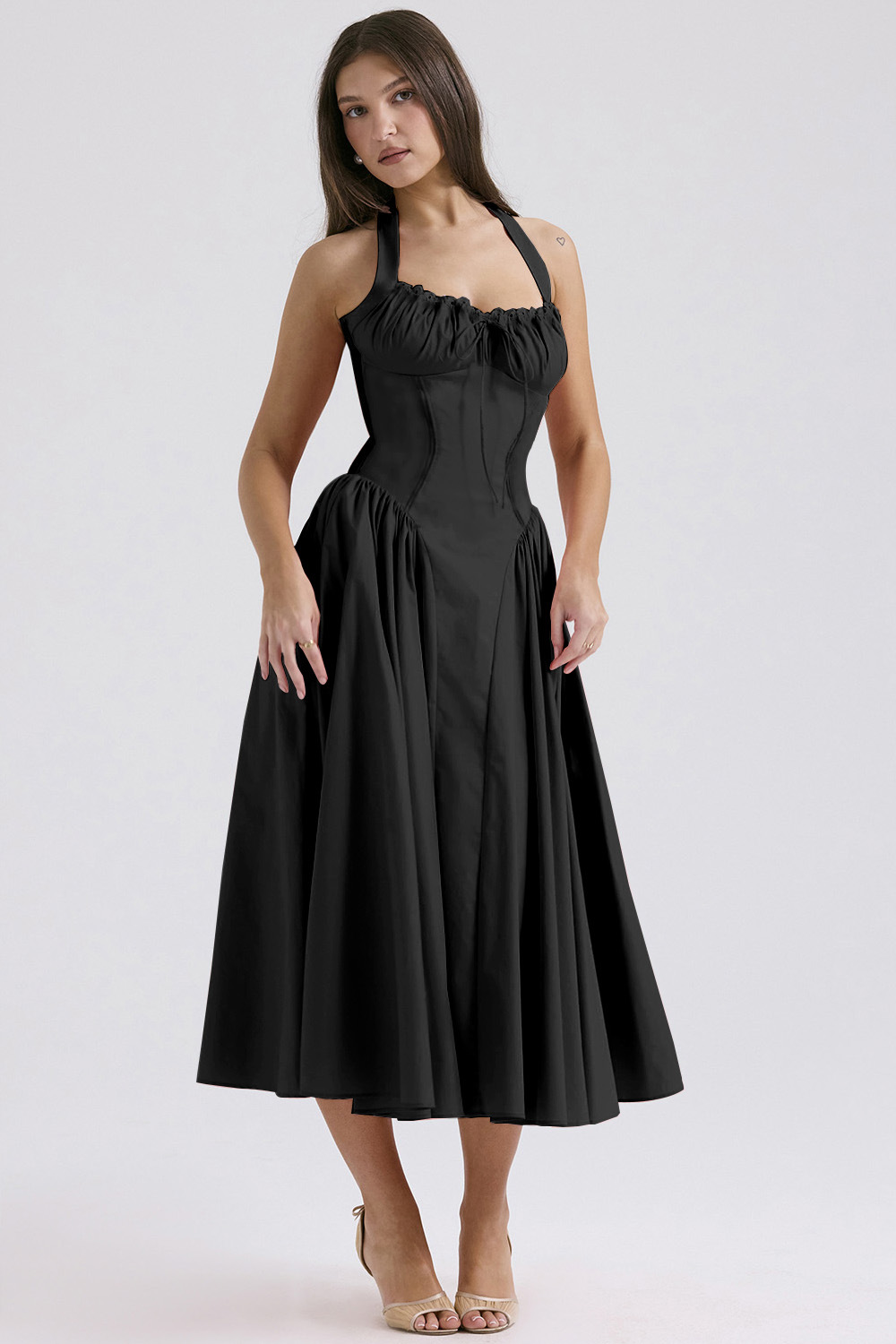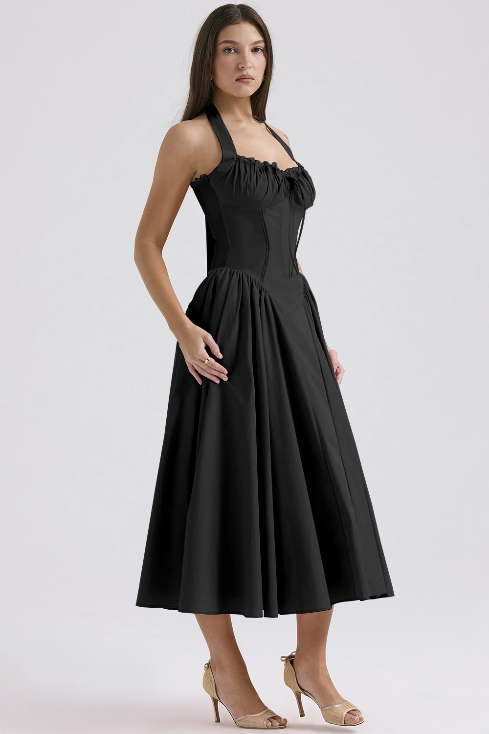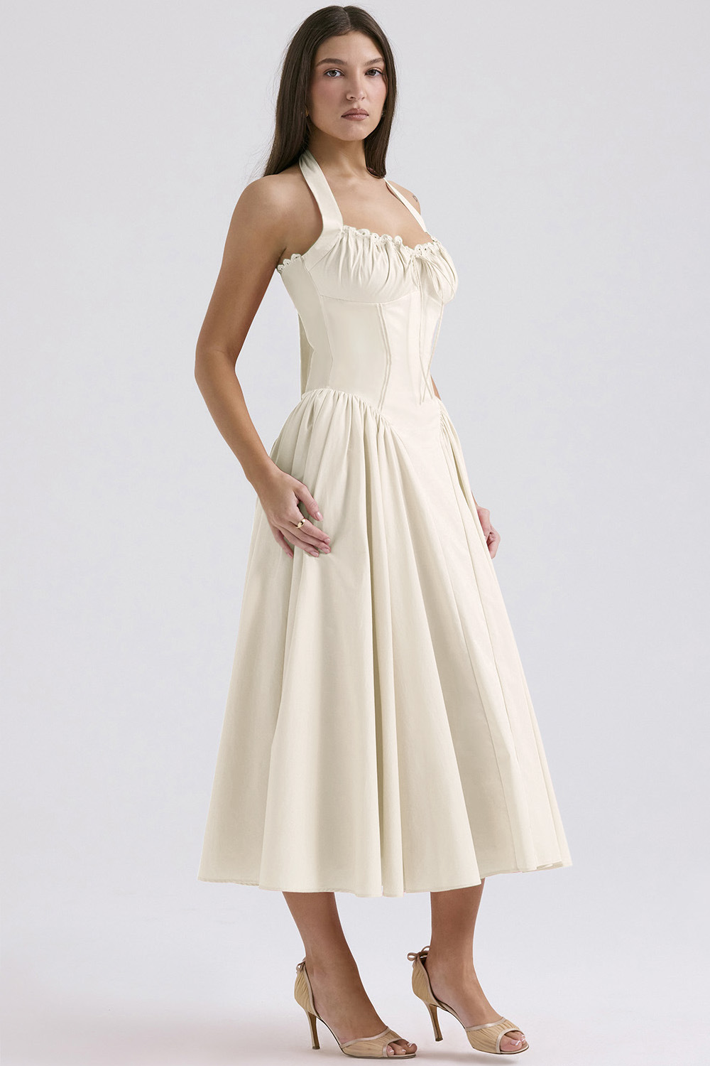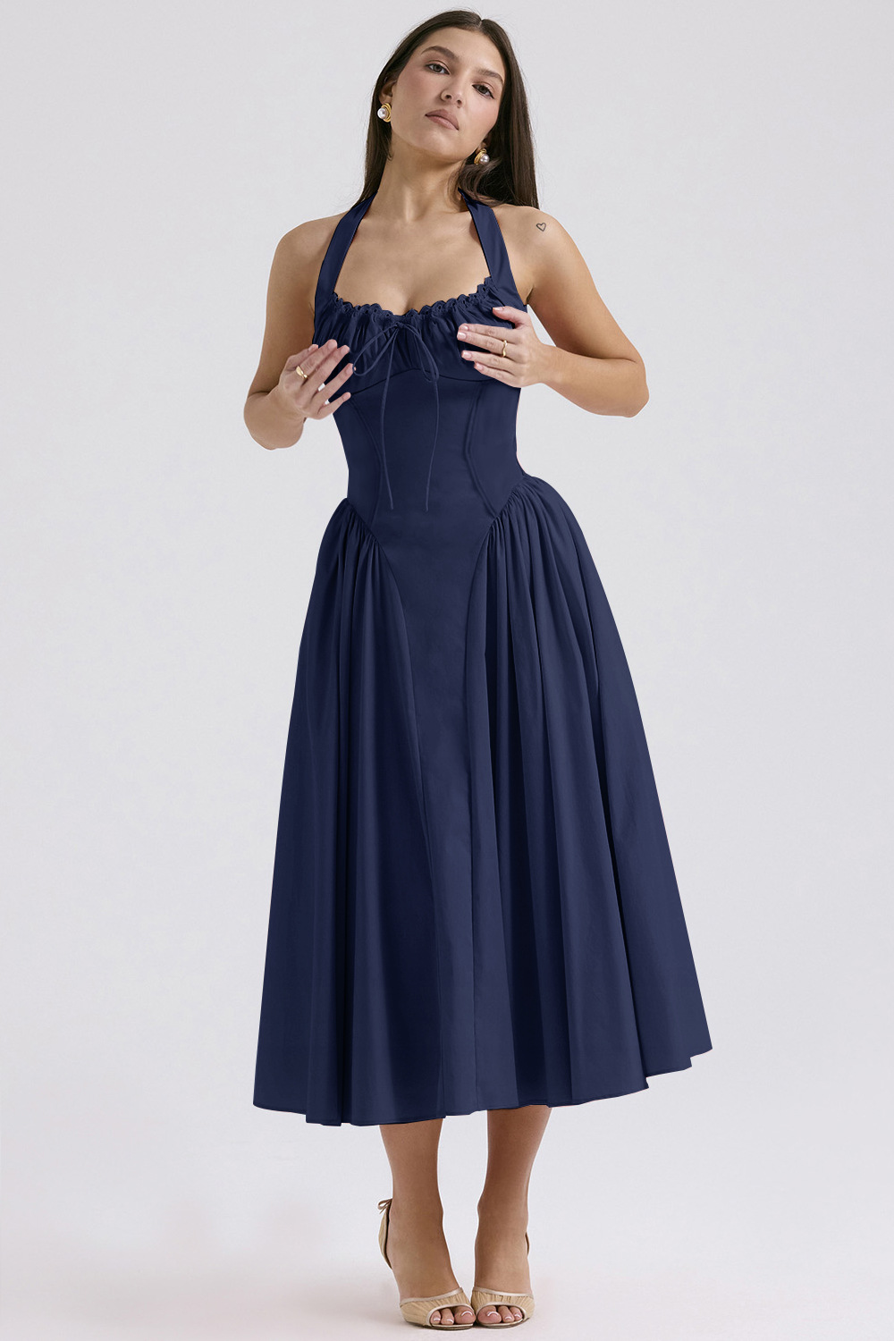 국경 간 아마존 여름 새로운 패션 슬림 슬링 긴 원피스 유럽과 미국의 프랑스 인쇄 목 레이스 원피스