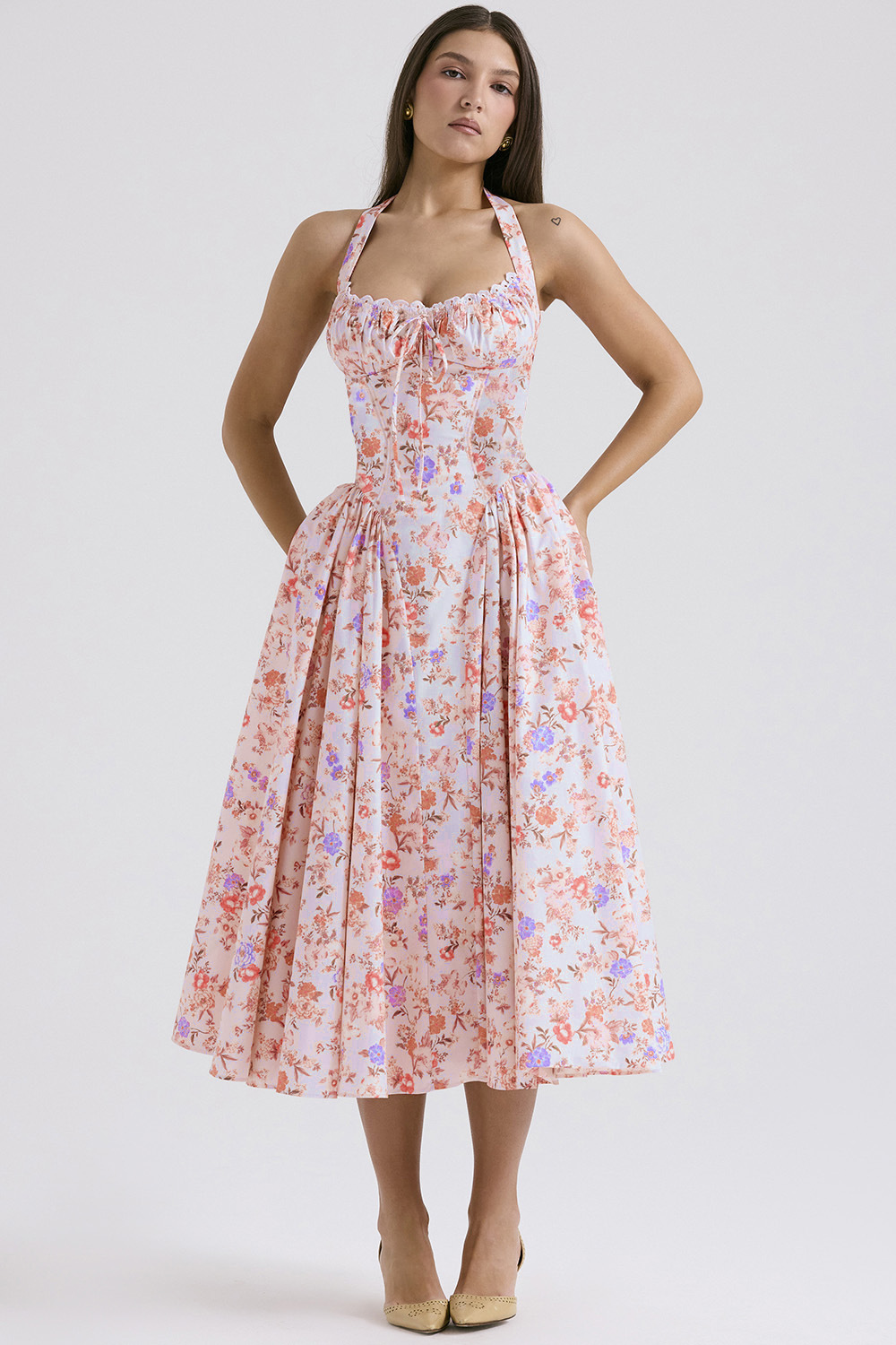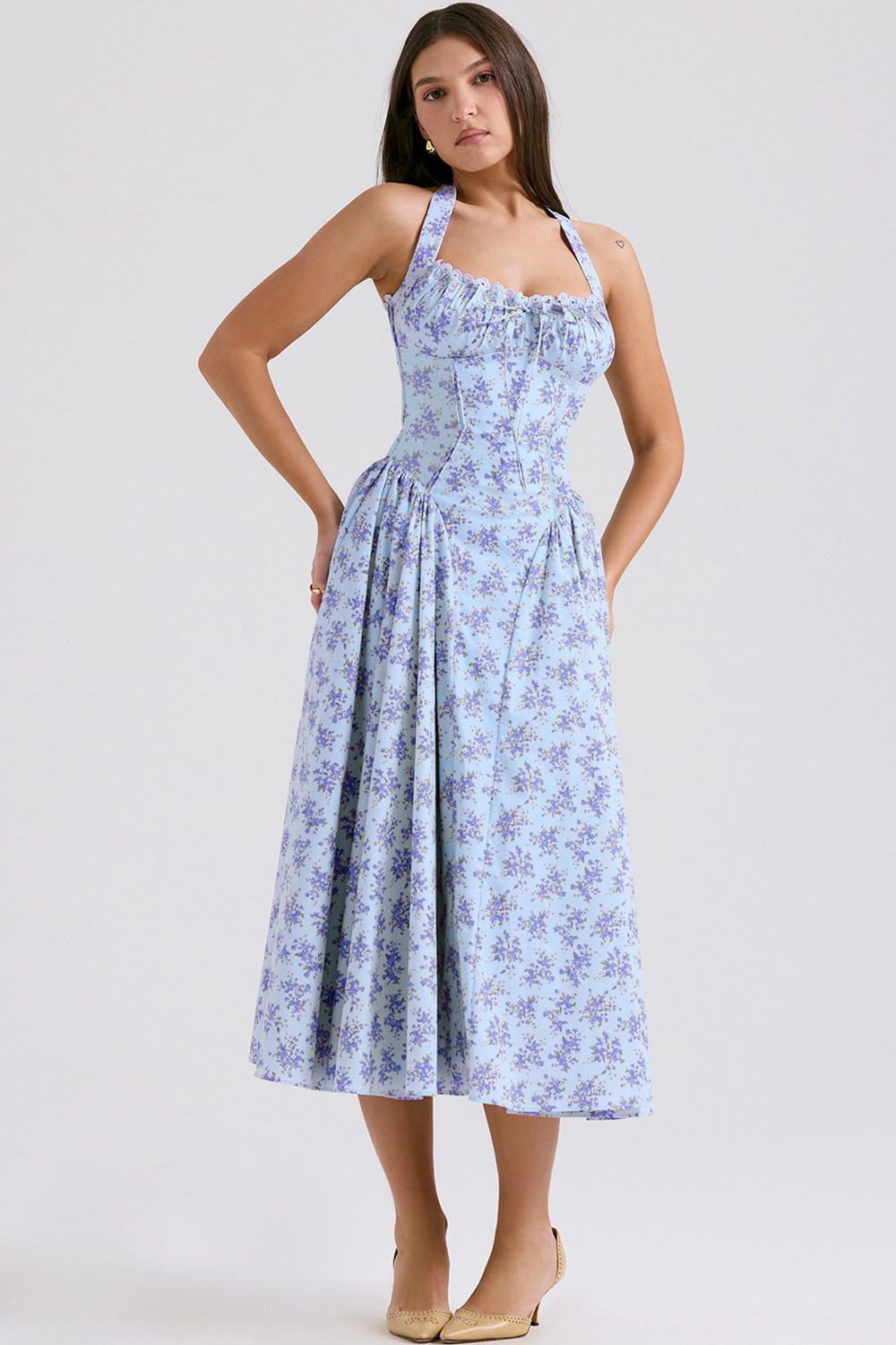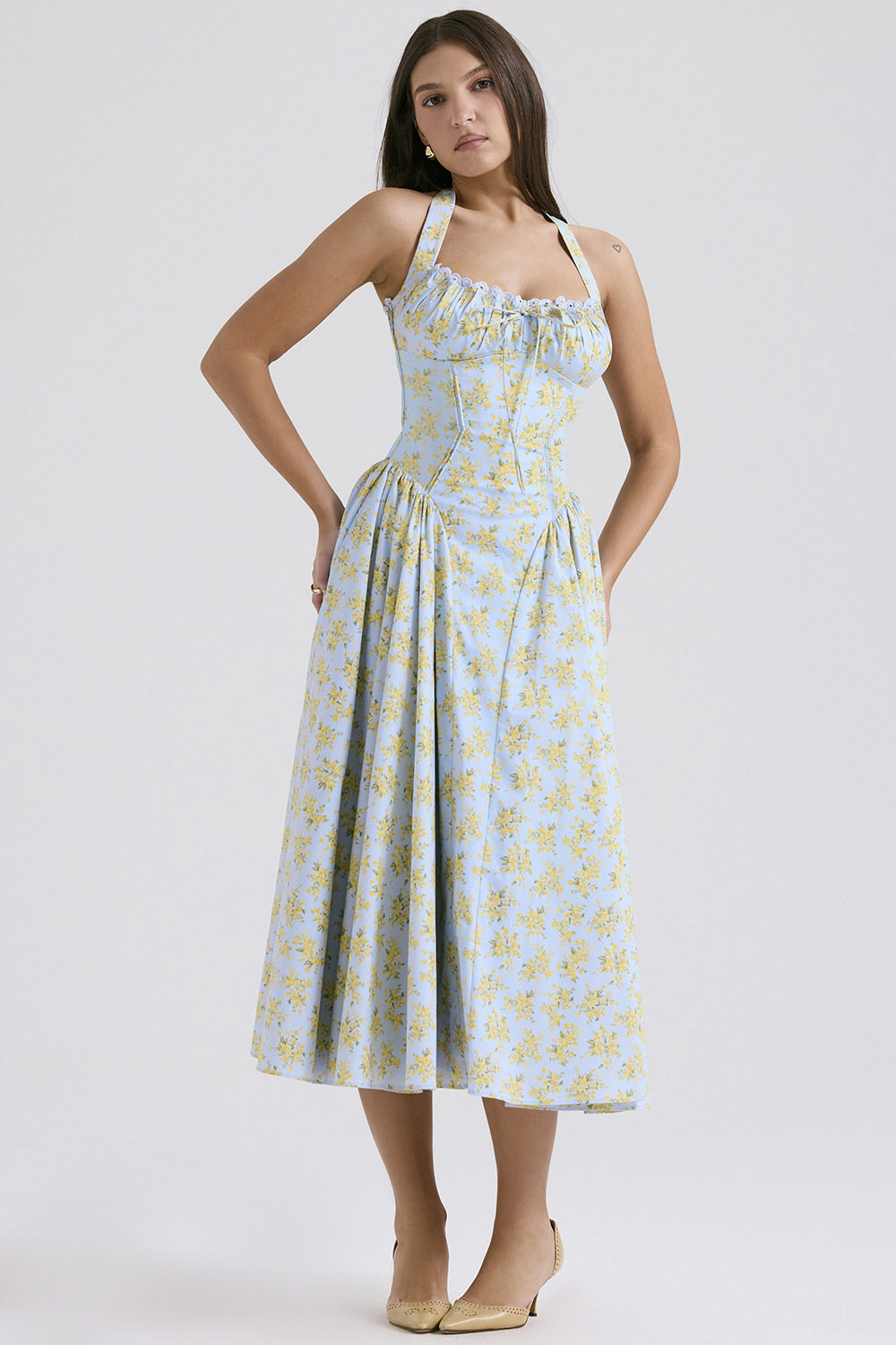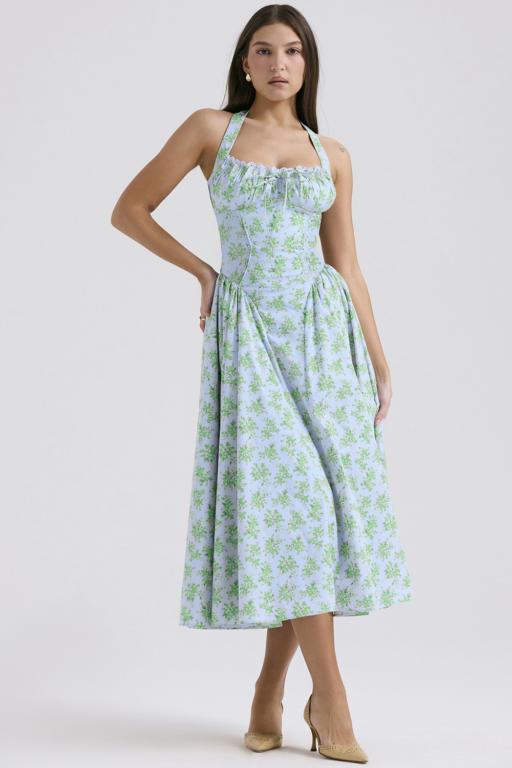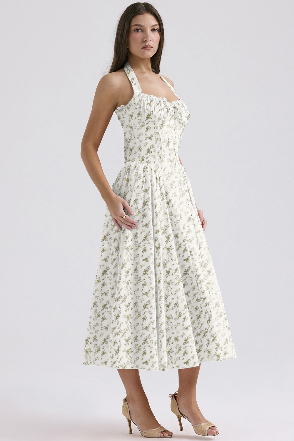 국경 간 아마존 여름 새로운 패션 슬림 슬링 긴 원피스 유럽과 미국의 프랑스 인쇄 목 레이스 원피스스토어 가기