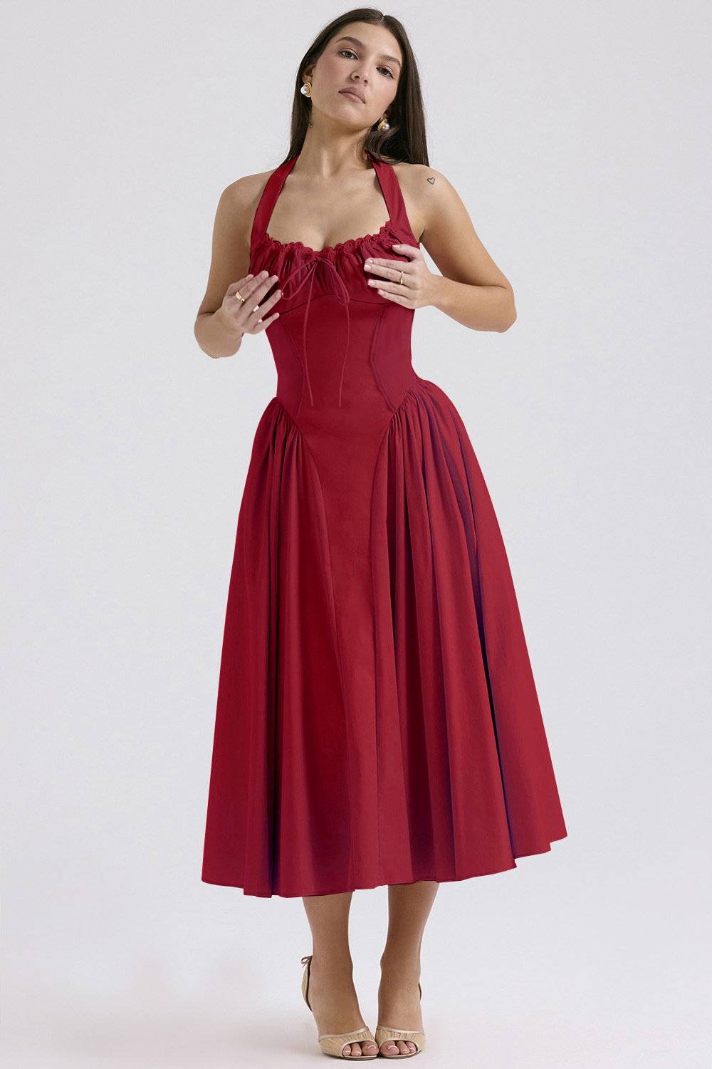 • 흰색 배경에 작은 붉은 꽃