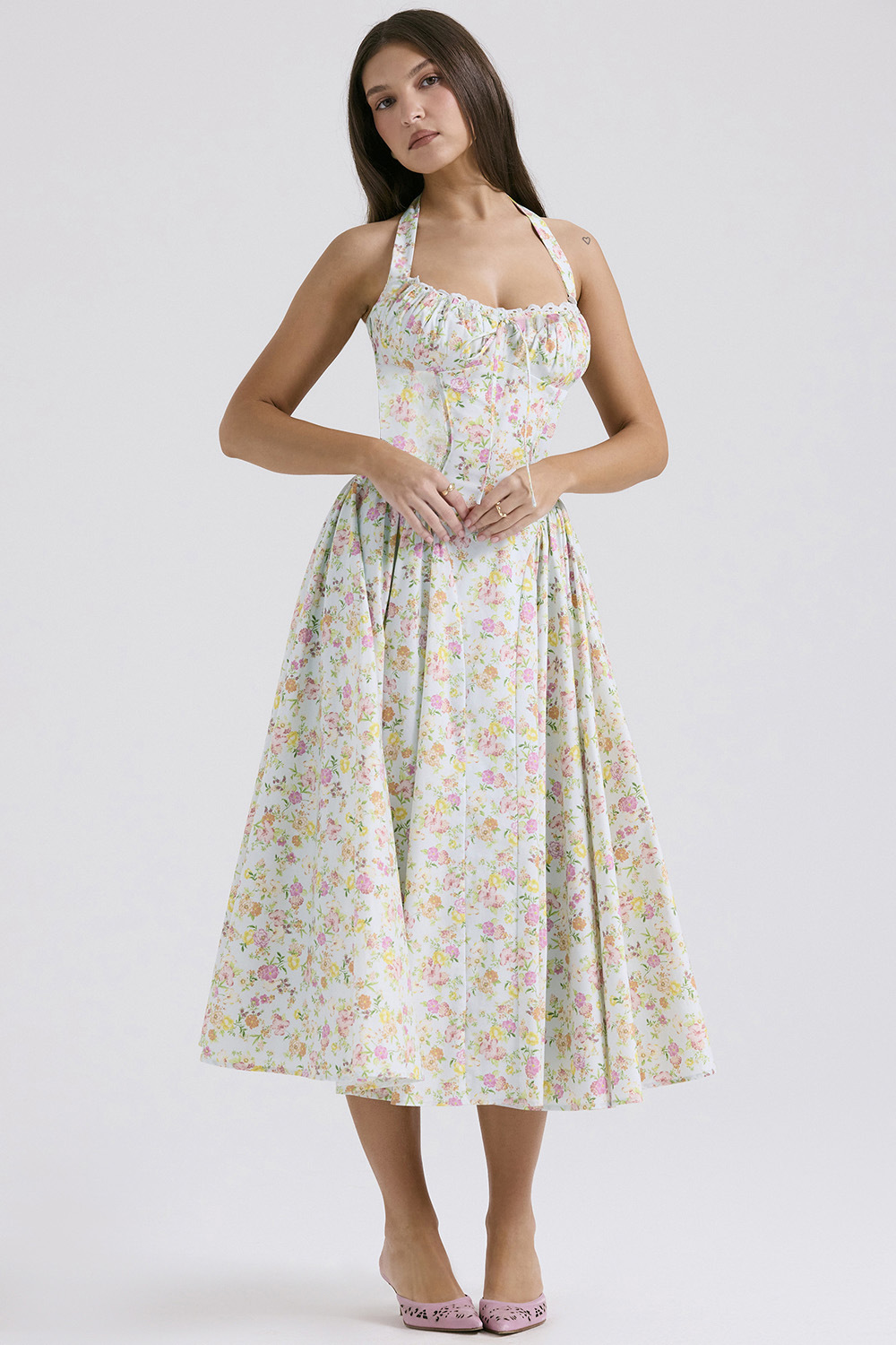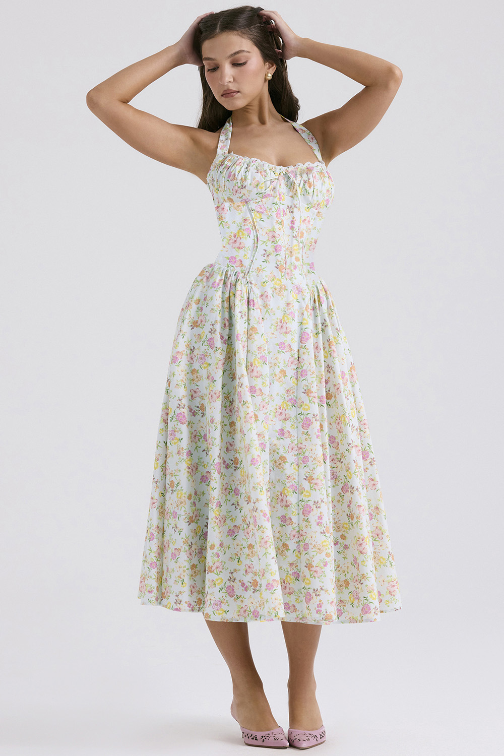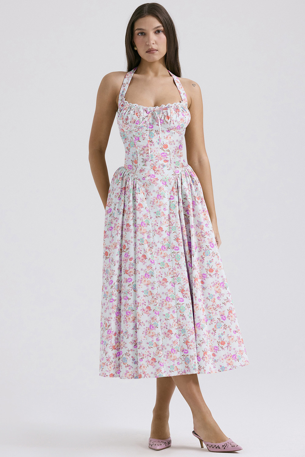 • 흰색 배경에 작은 보라색 꽃