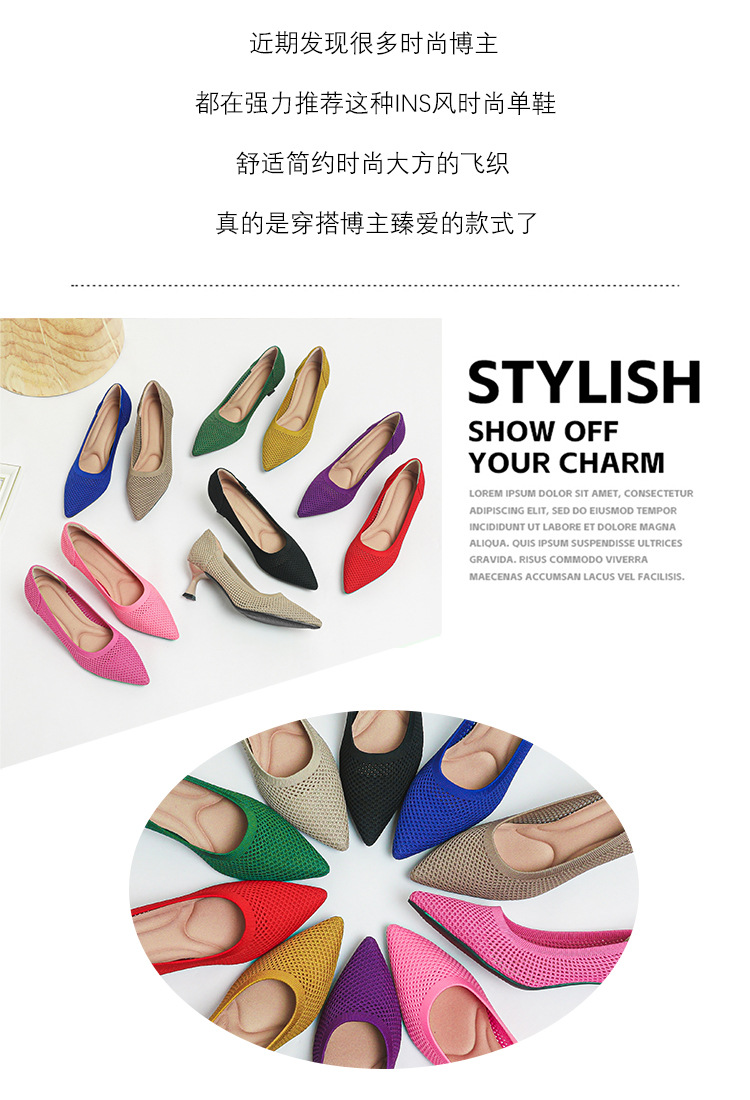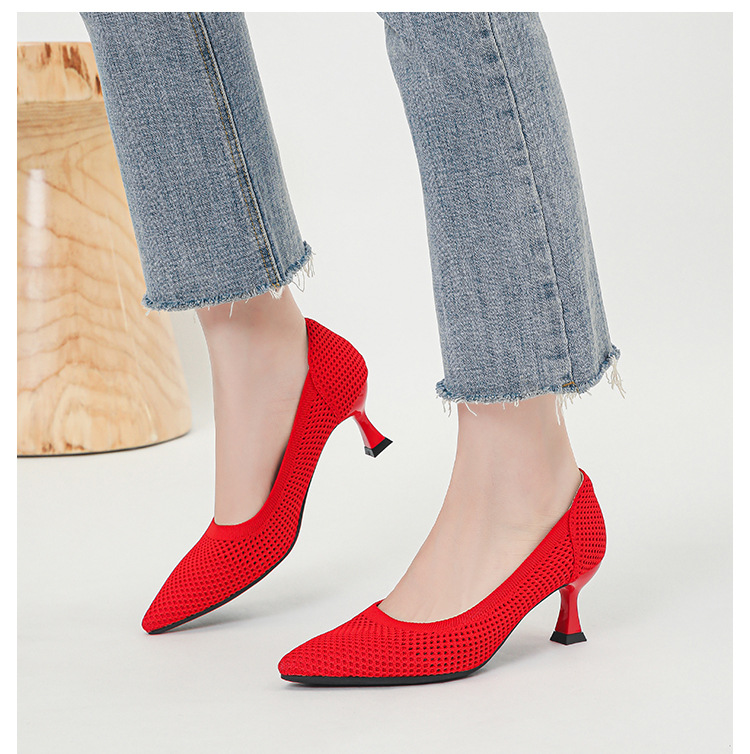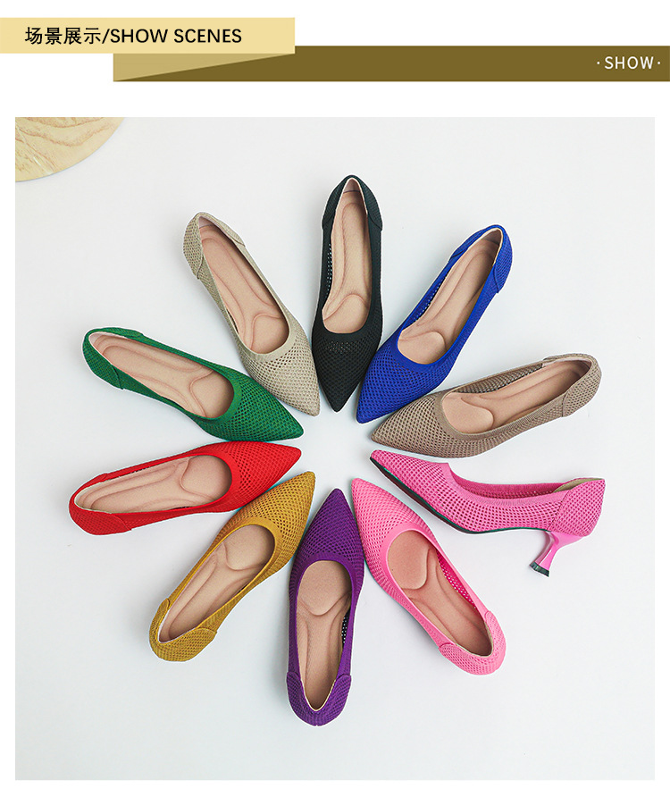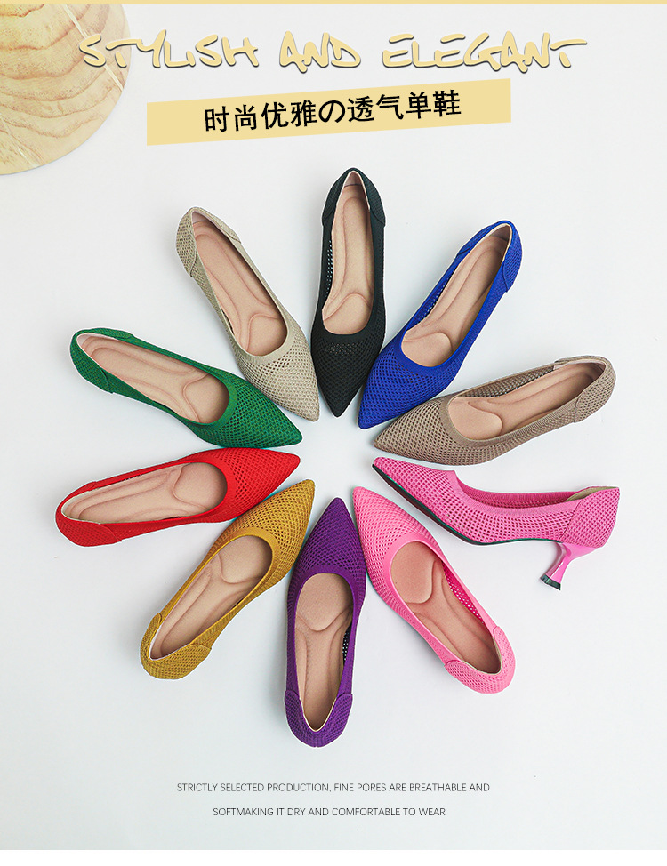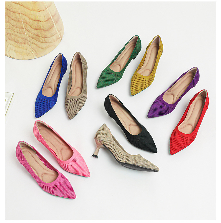 다채로운 색상의 컷아웃 샌들, 공주풍 신발, 여름에 편안한 플라이 니트 하이힐, 여성 패션 통기성 하이힐, 스틸레토 힐스토어 가기