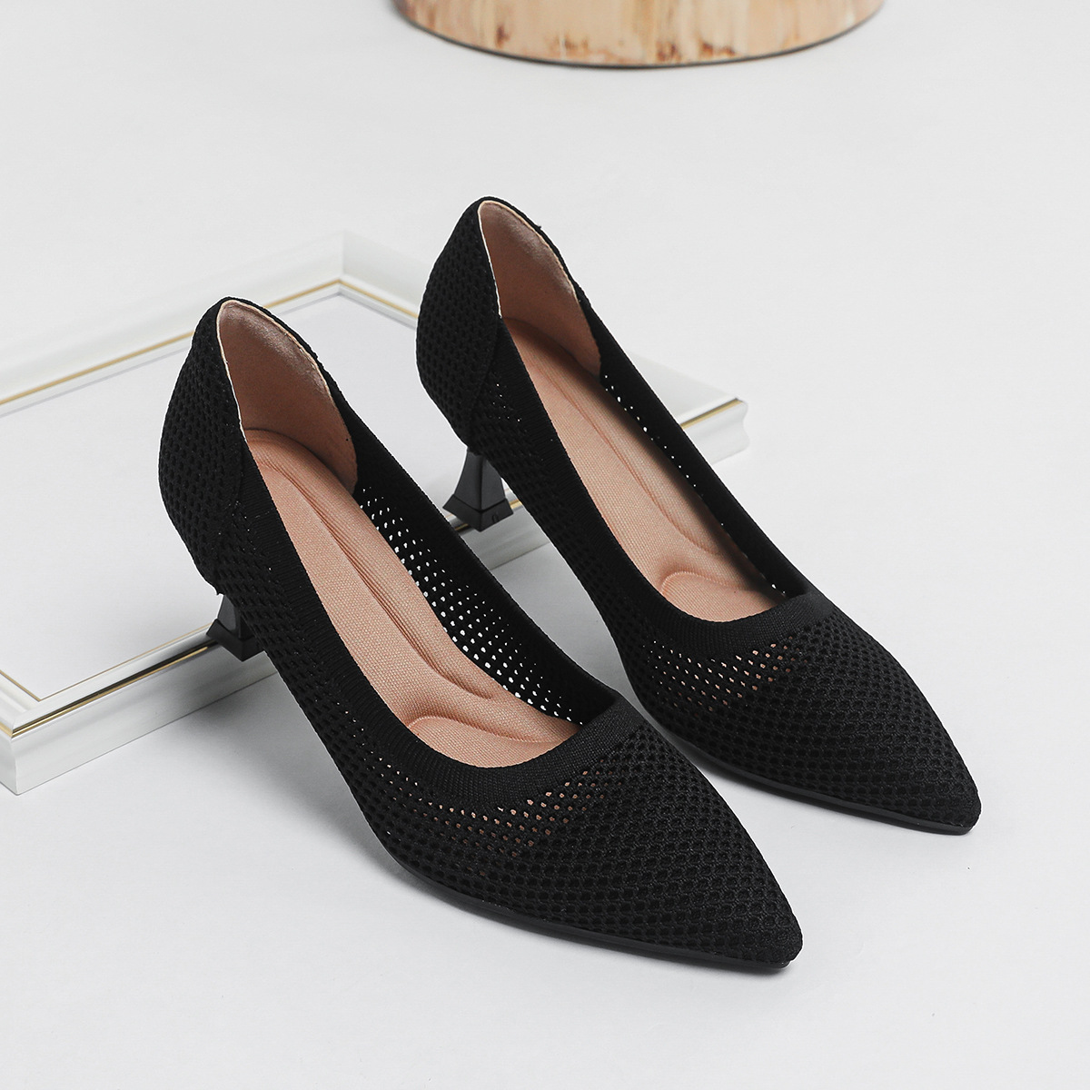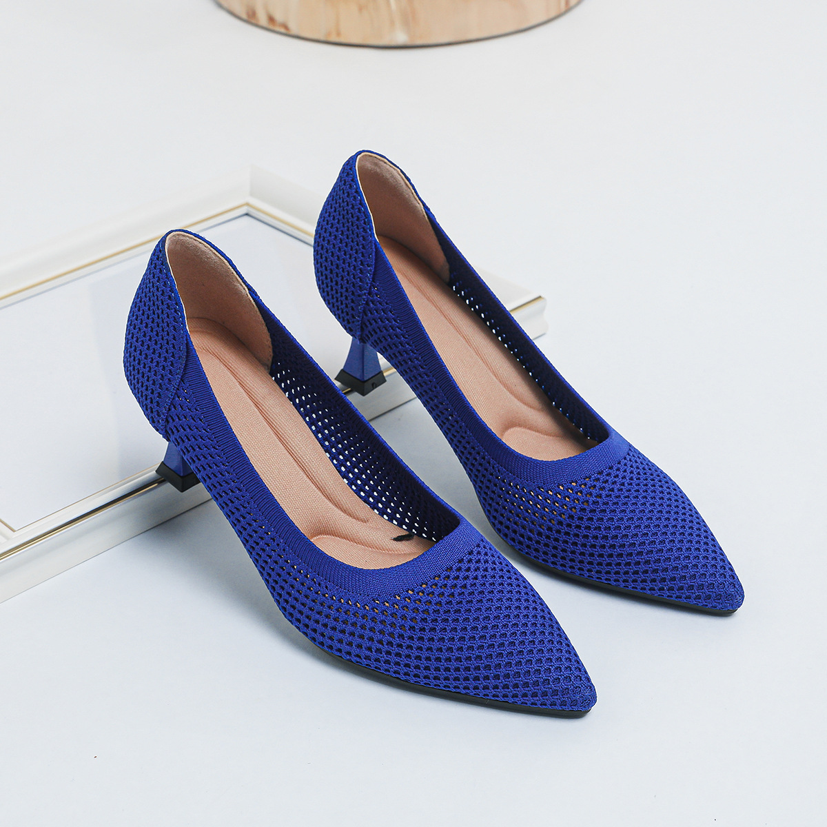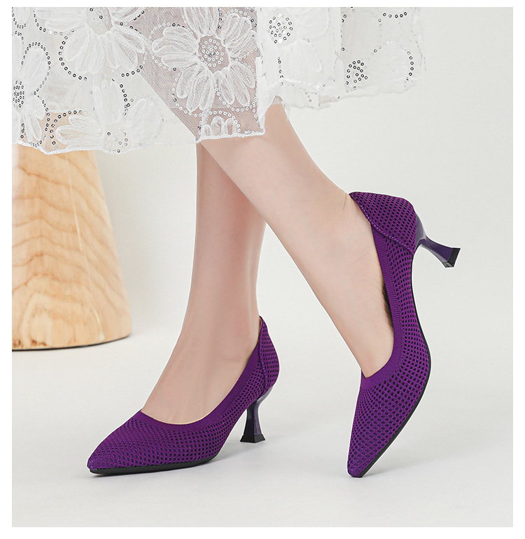 다채로운 색상의 컷아웃 샌들, 공주풍 신발, 여름에 편안한 플라이 니트 하이힐, 여성 패션 통기성 하이힐, 스틸레토 힐스토어 가기