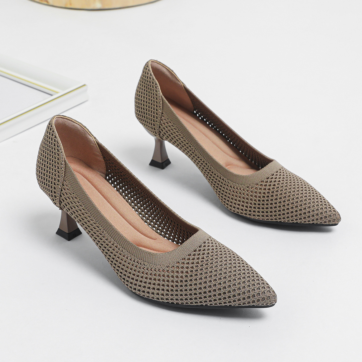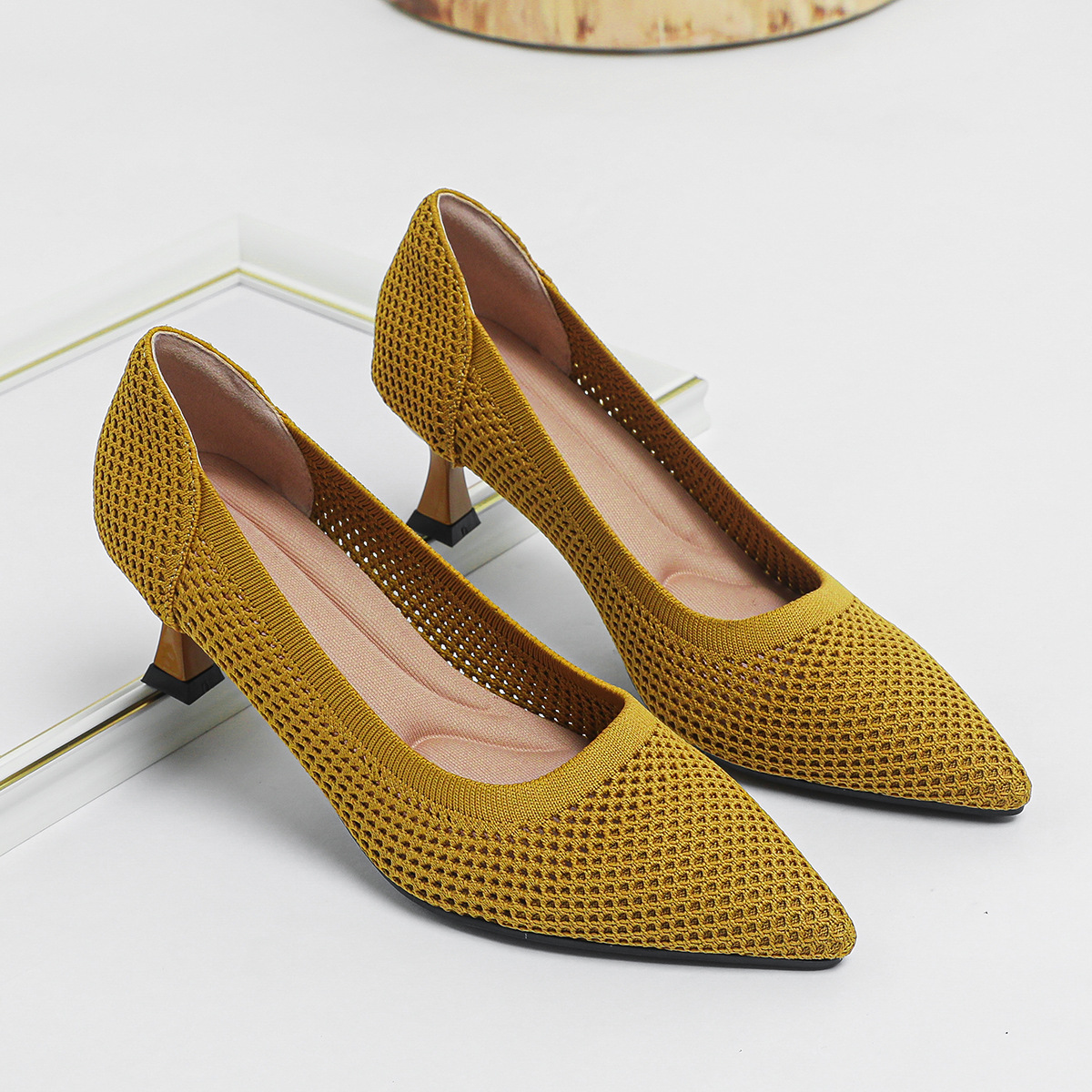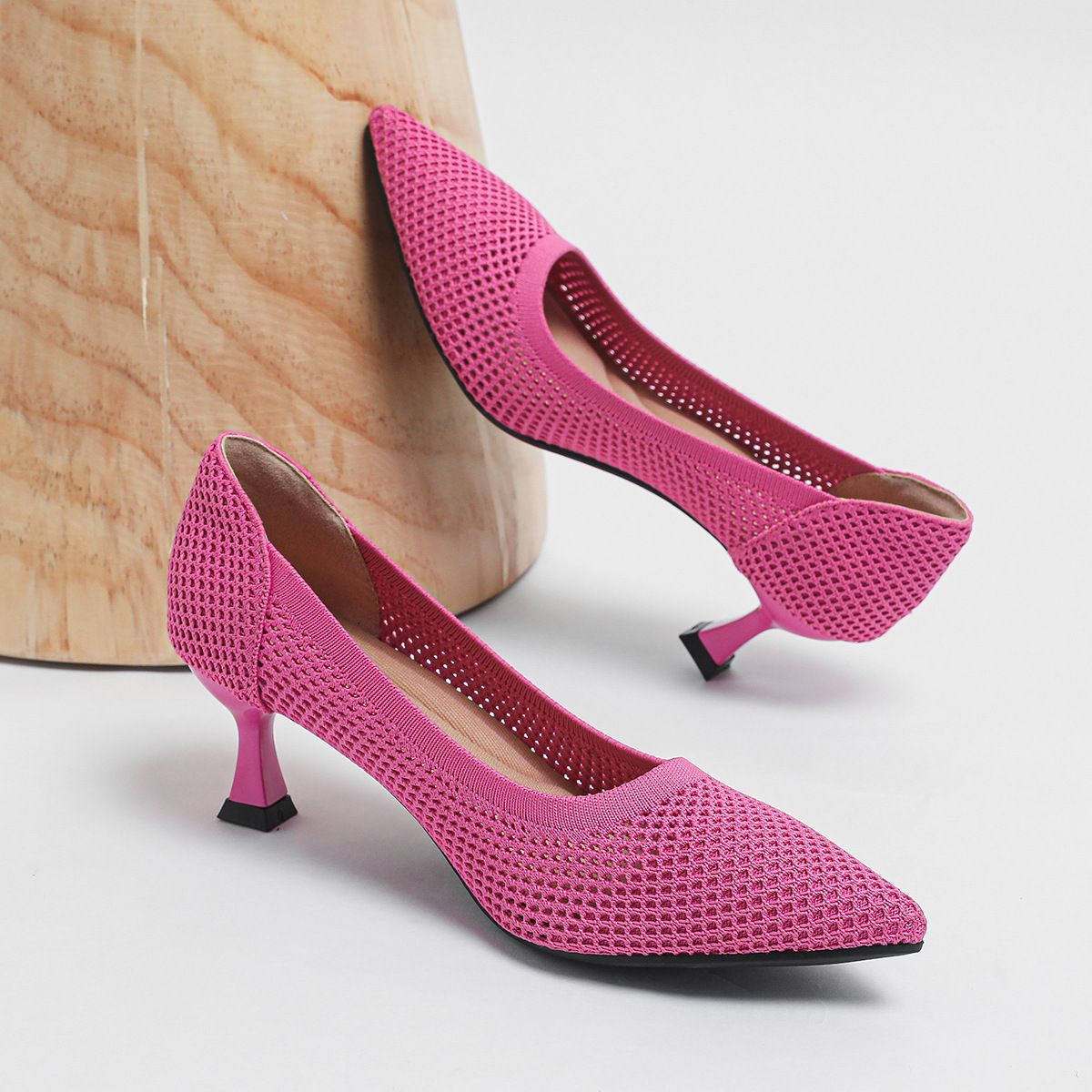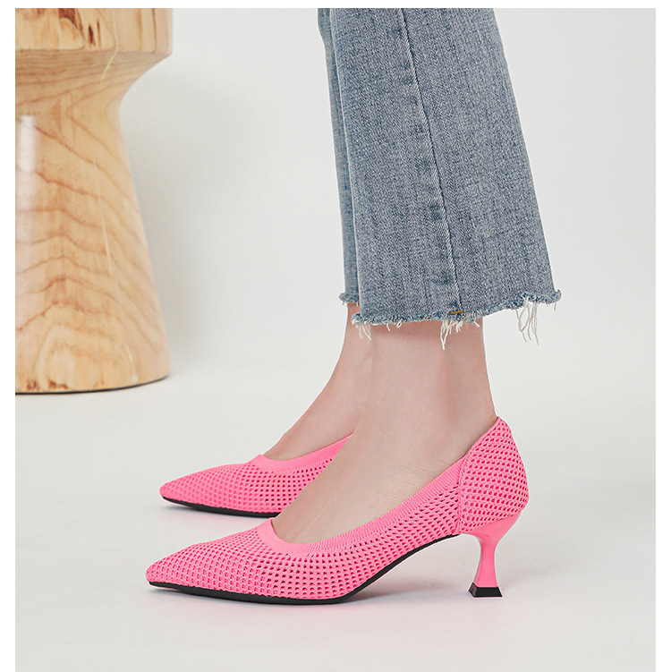 다채로운 색상의 컷아웃 샌들, 공주풍 신발, 여름에 편안한 플라이 니트 하이힐, 여성 패션 통기성 하이힐, 스틸레토 힐