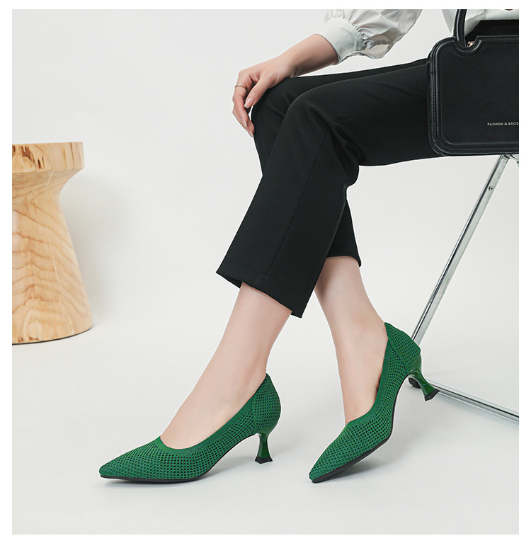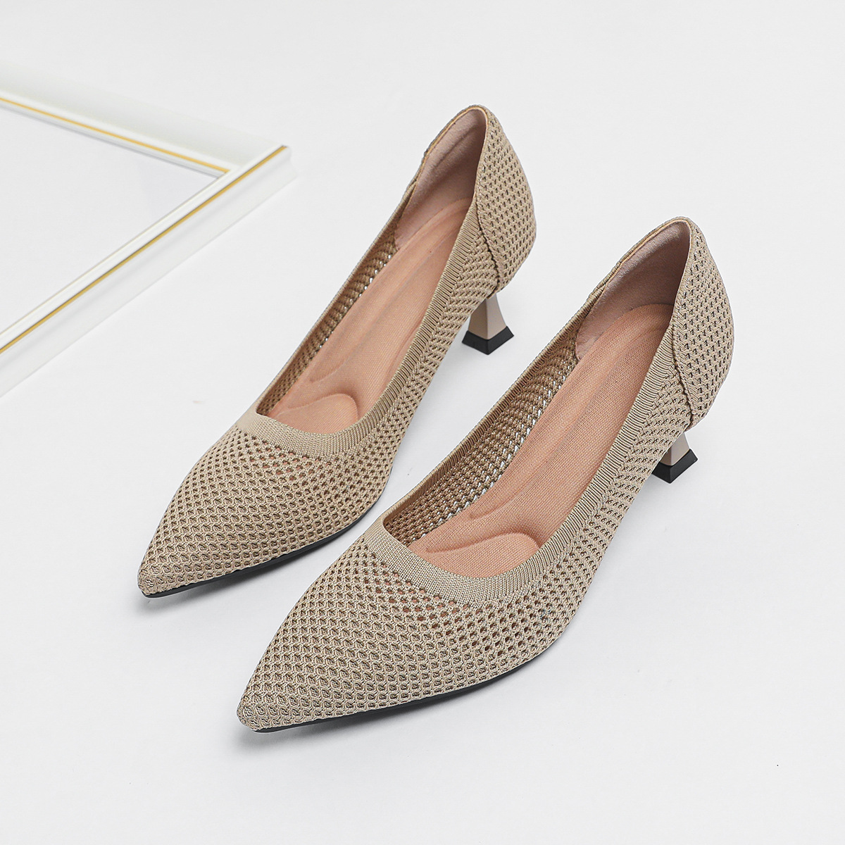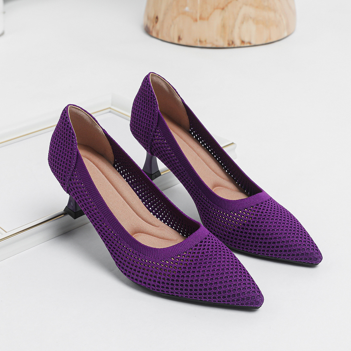 다채로운 색상의 컷아웃 샌들, 공주풍 신발, 여름에 편안한 플라이 니트 하이힐, 여성 패션 통기성 하이힐, 스틸레토 힐