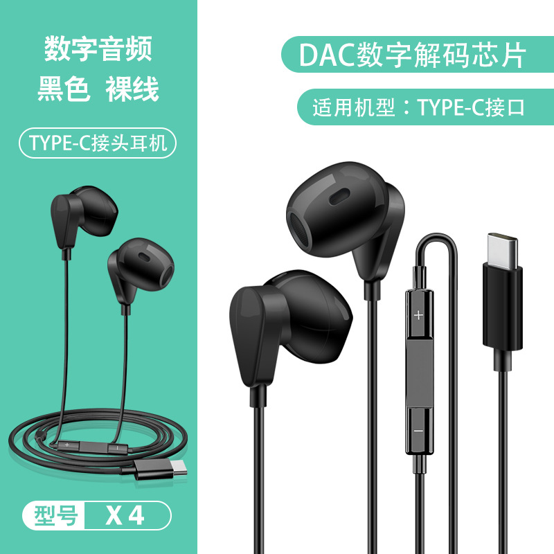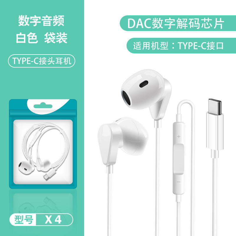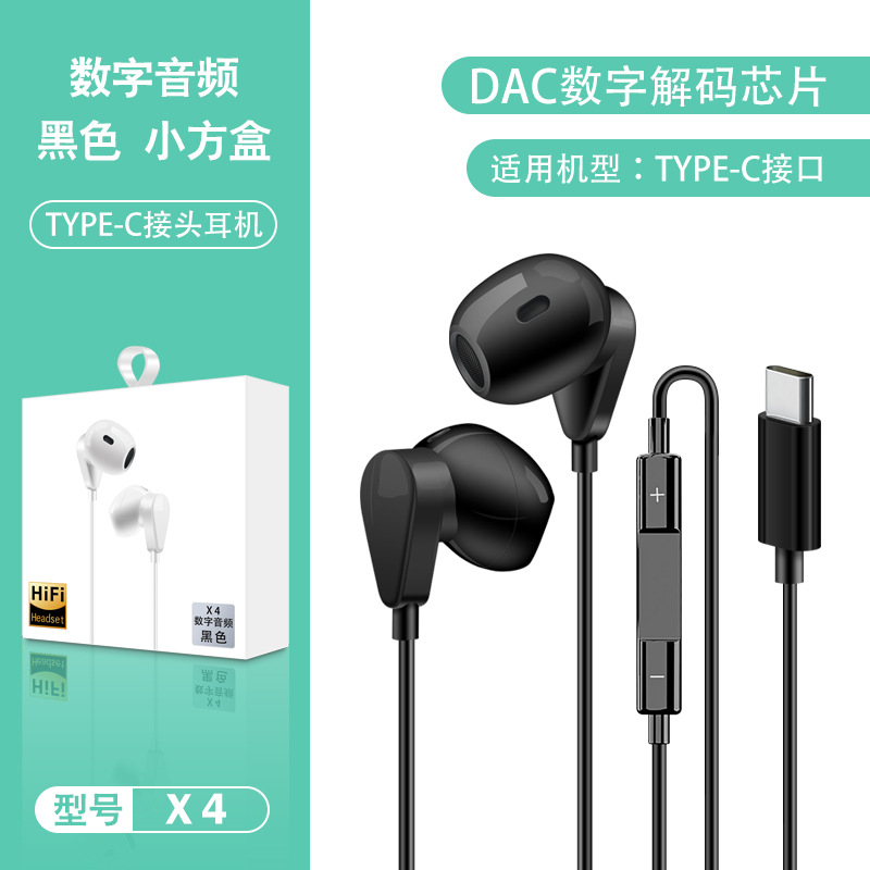 TYPE-C 디지털 유선 헤드셋 화웨이 명예 애플 와이어 제어 모바일 게임 인 이어 헤드셋 X4