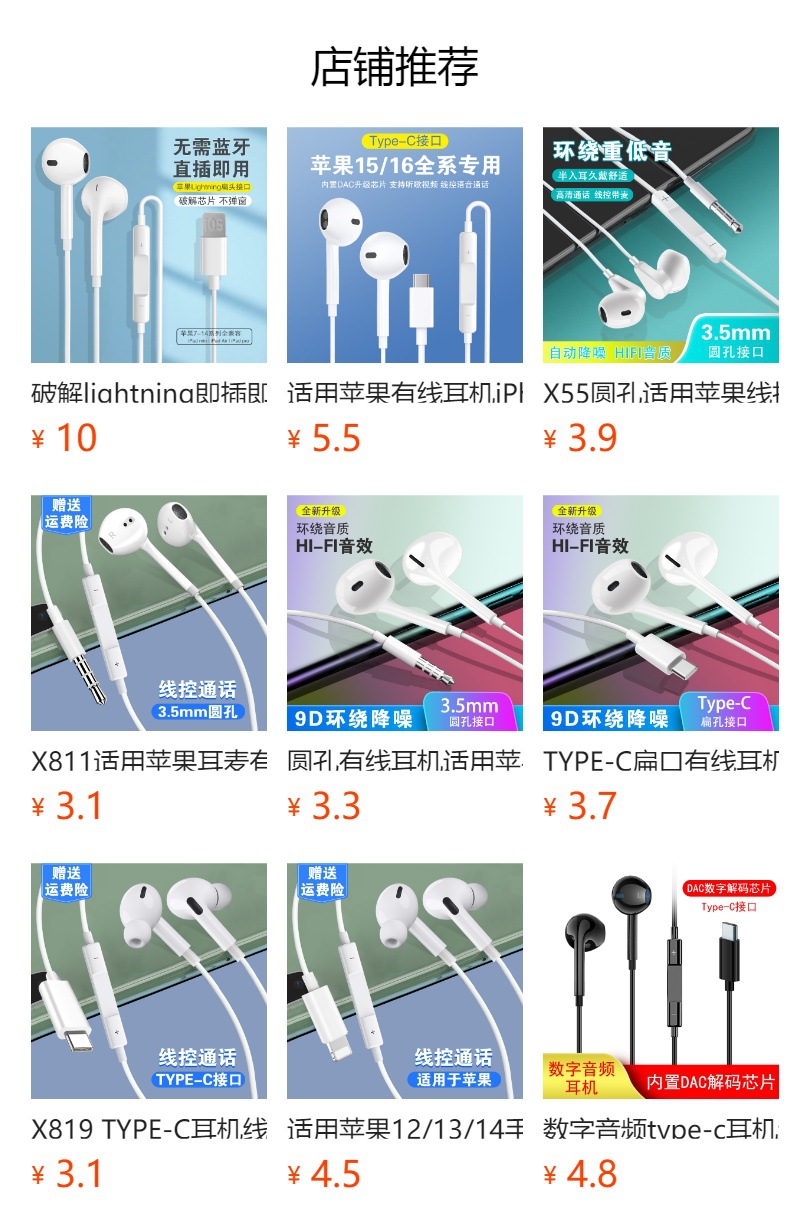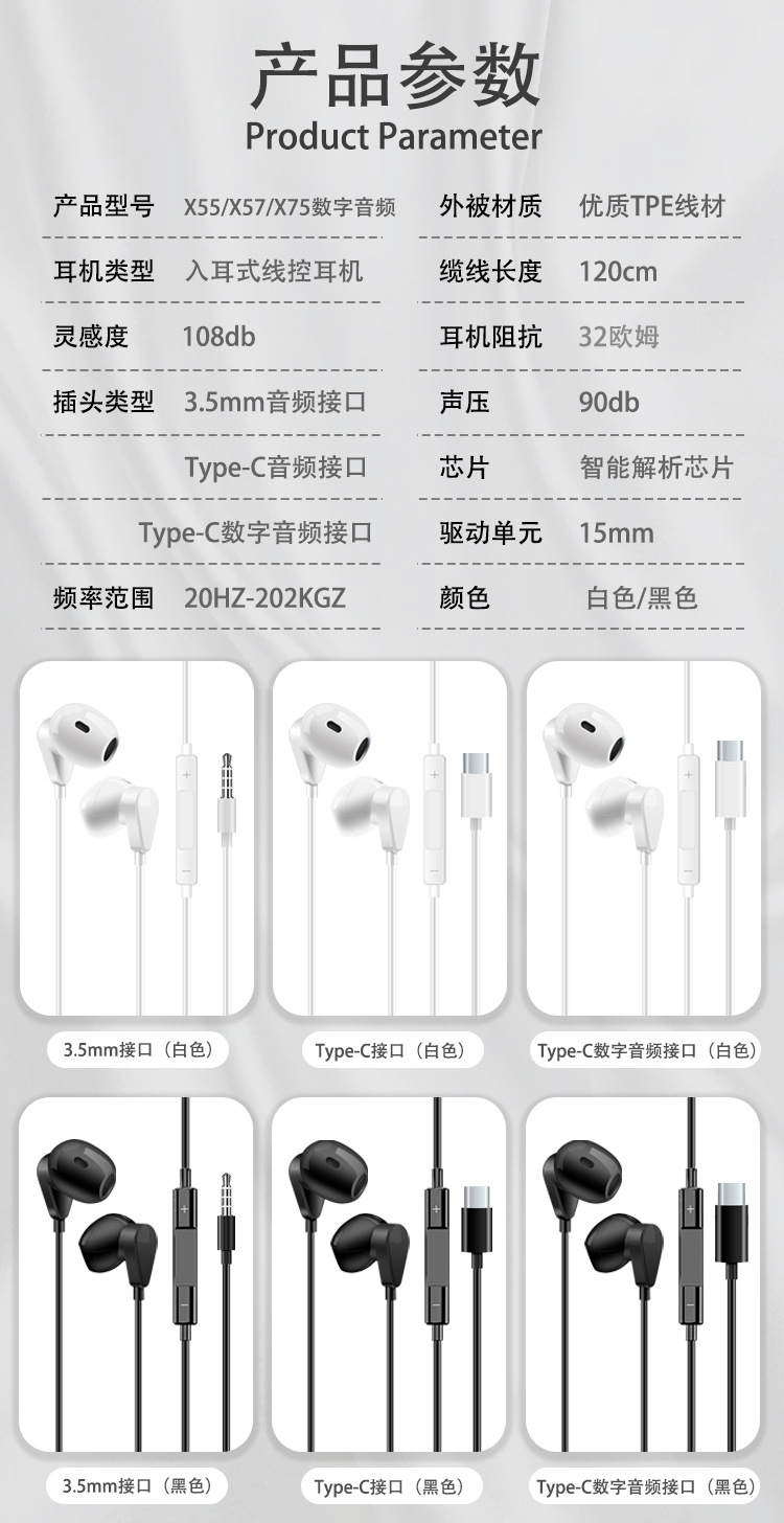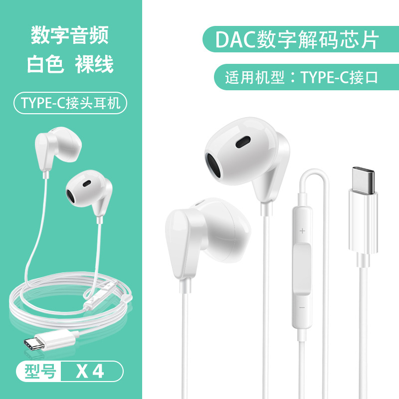 TYPE-C 디지털 유선 헤드셋 화웨이 명예 애플 와이어 제어 모바일 게임 인 이어 헤드셋 X4스토어 가기