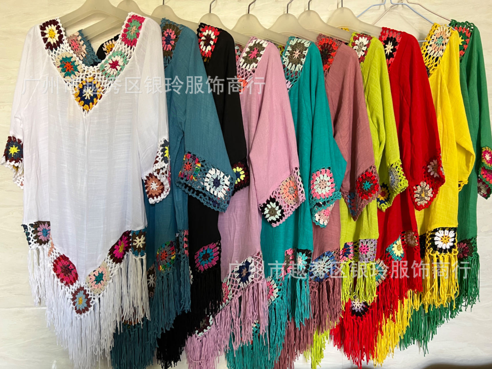 유럽과 미국의 보헤미안 스타일 핸드 훅 스티칭 슬럽 천 비치 수영복 빈 니트 블라우스 비키니 선 스크린스토어 가기