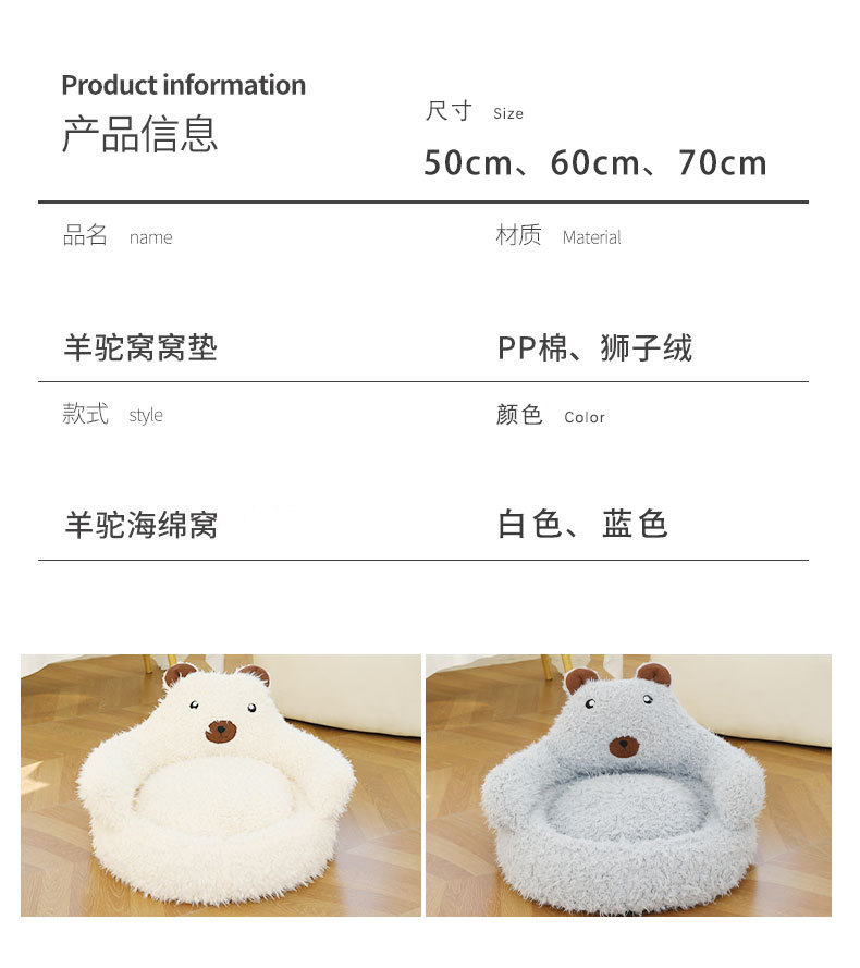 가을과 겨울 새로운 귀여운 알파카 애완 동물 둥지 따뜻한 바닥 미끄럼 방지 소파 등받이 개 고양이 둥지 국경