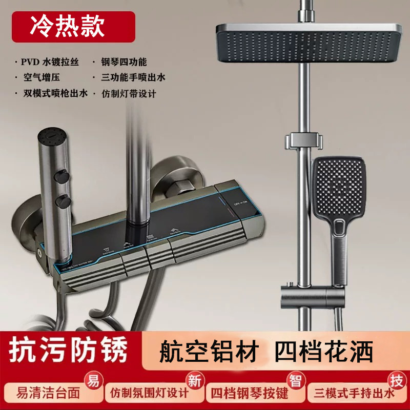건메탈 색상 샤워기 세트, 가정용 샤워기, 욕실용 스페이스 알루미늄 샤워기, 고압 분사 노즐, 해외 도매스토어 가기