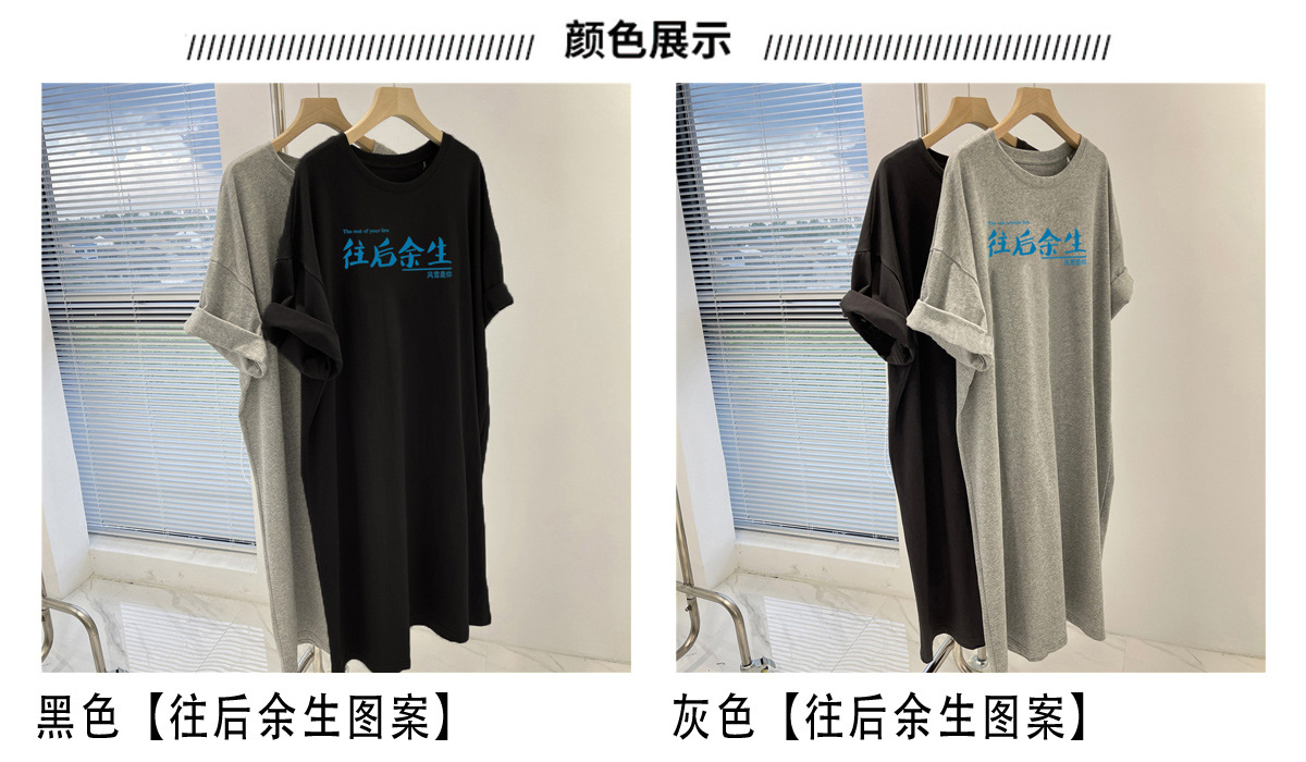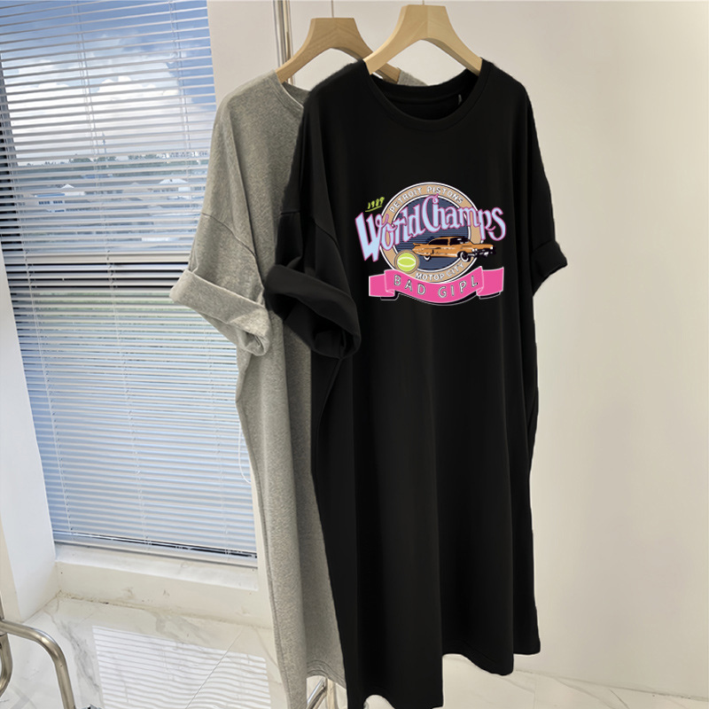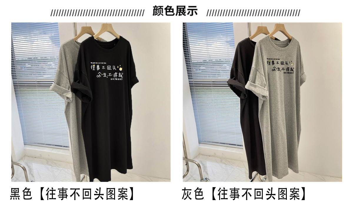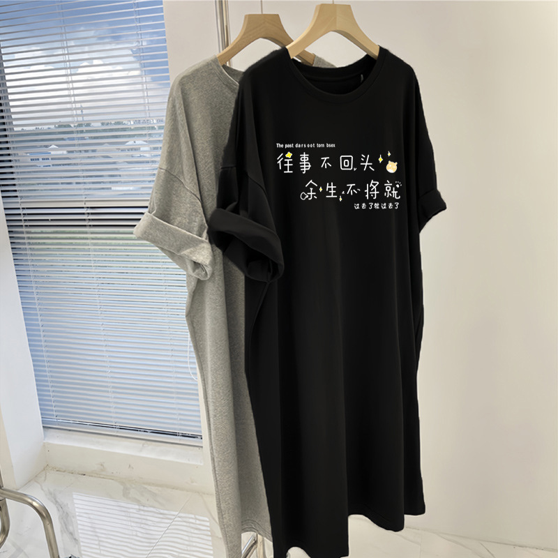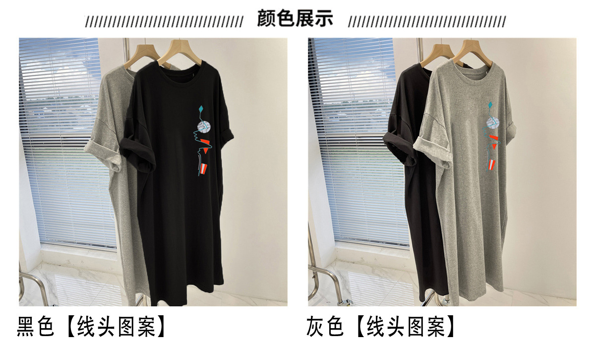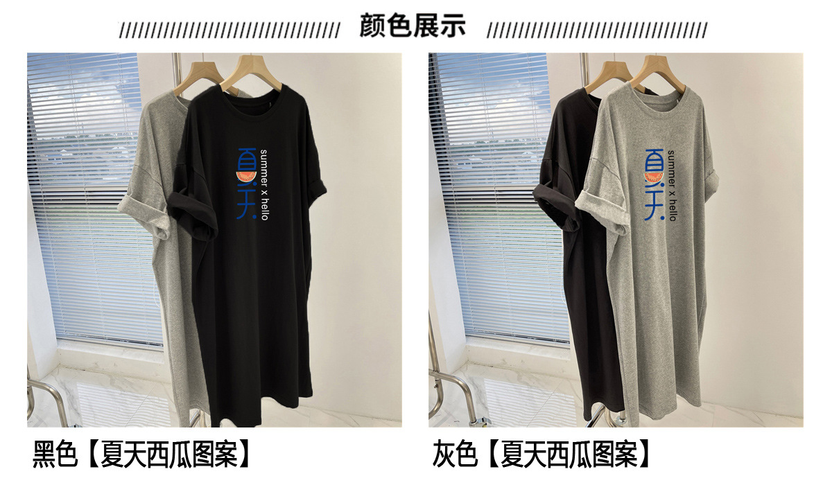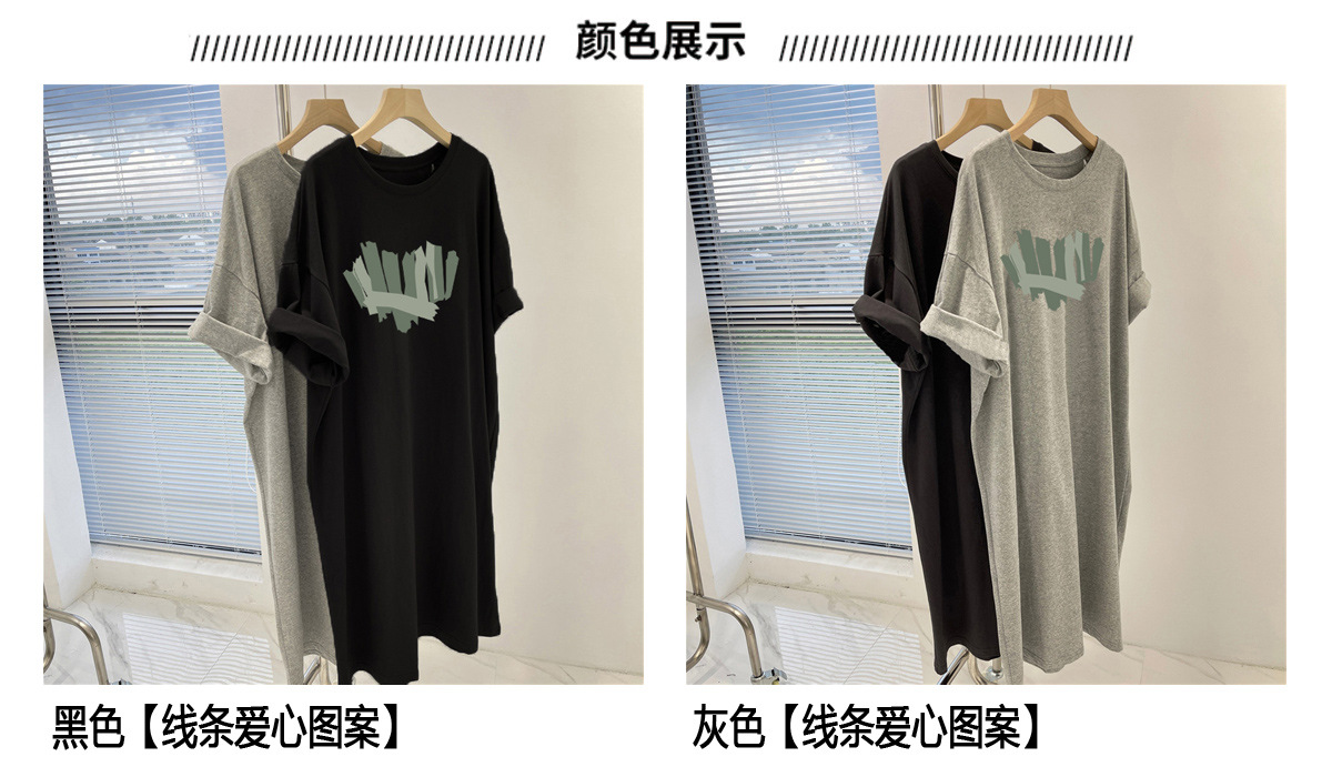 플러스 사이즈 여성 느슨한 슬림 배꼽 원피스 여성 여름 슈퍼 페어리 2024 새로운 중간 길이 반팔 티셔츠스토어 가기
