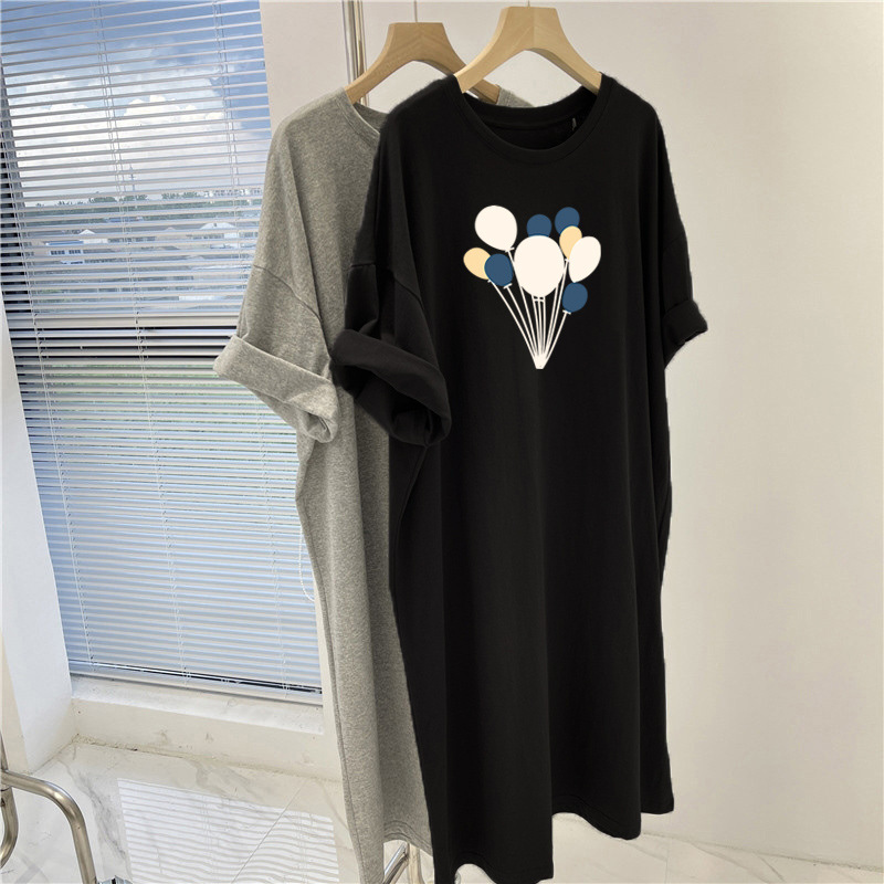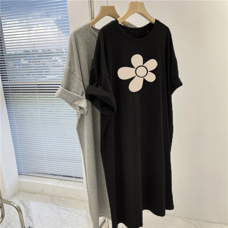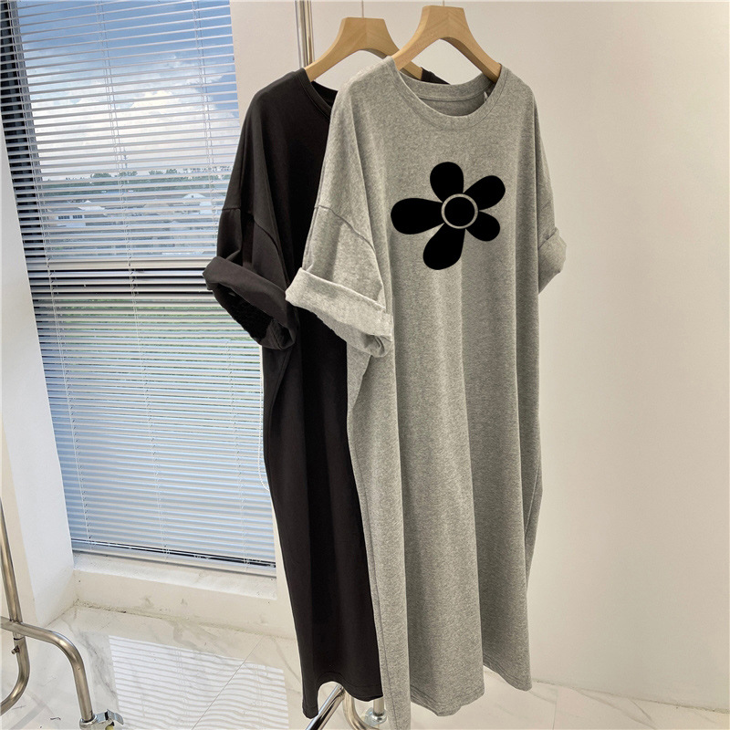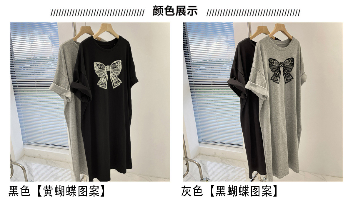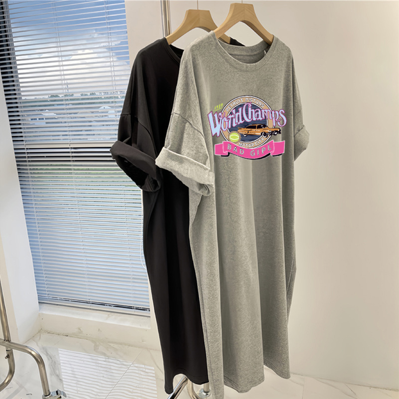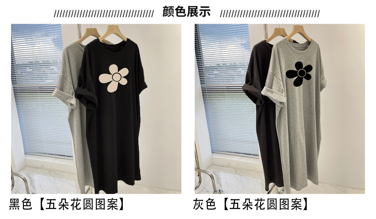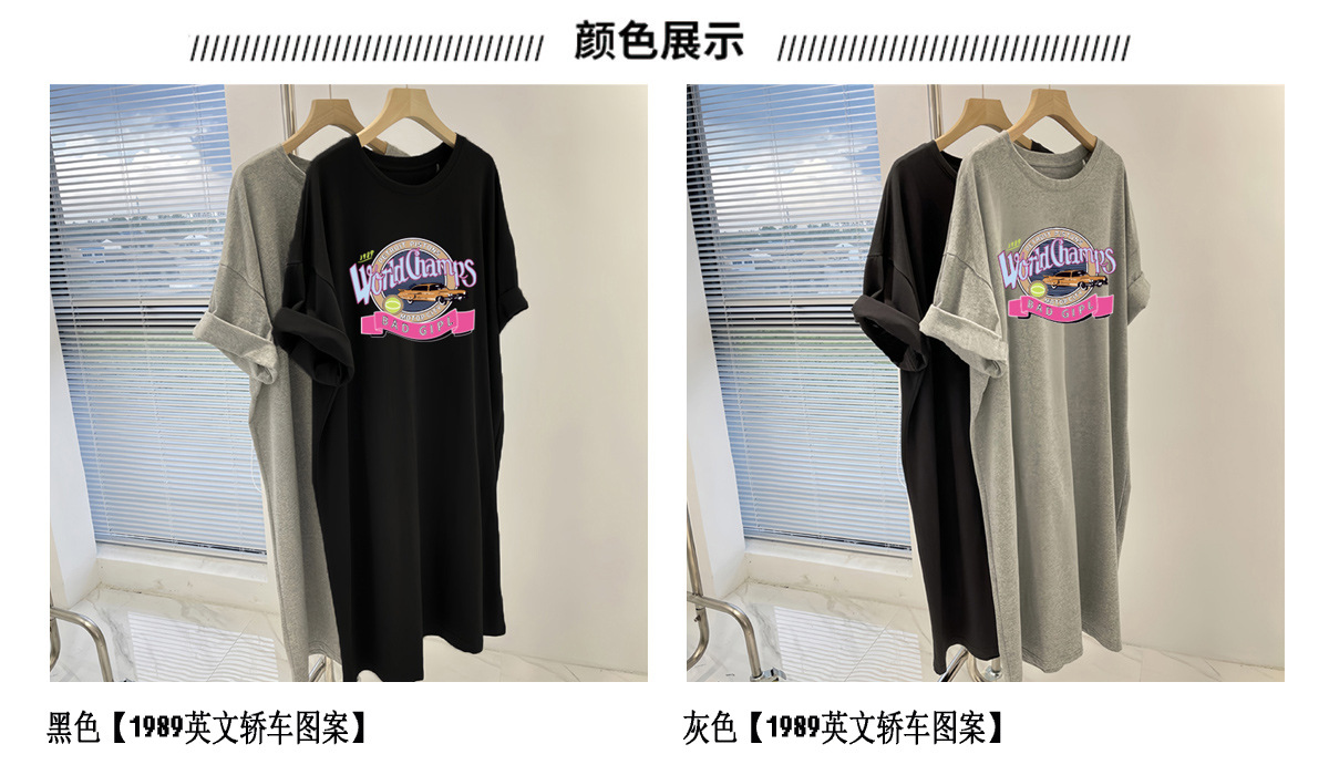 플러스 사이즈 여성 느슨한 슬림 배꼽 원피스 여성 여름 슈퍼 페어리 2024 새로운 중간 길이 반팔 티셔츠스토어 가기