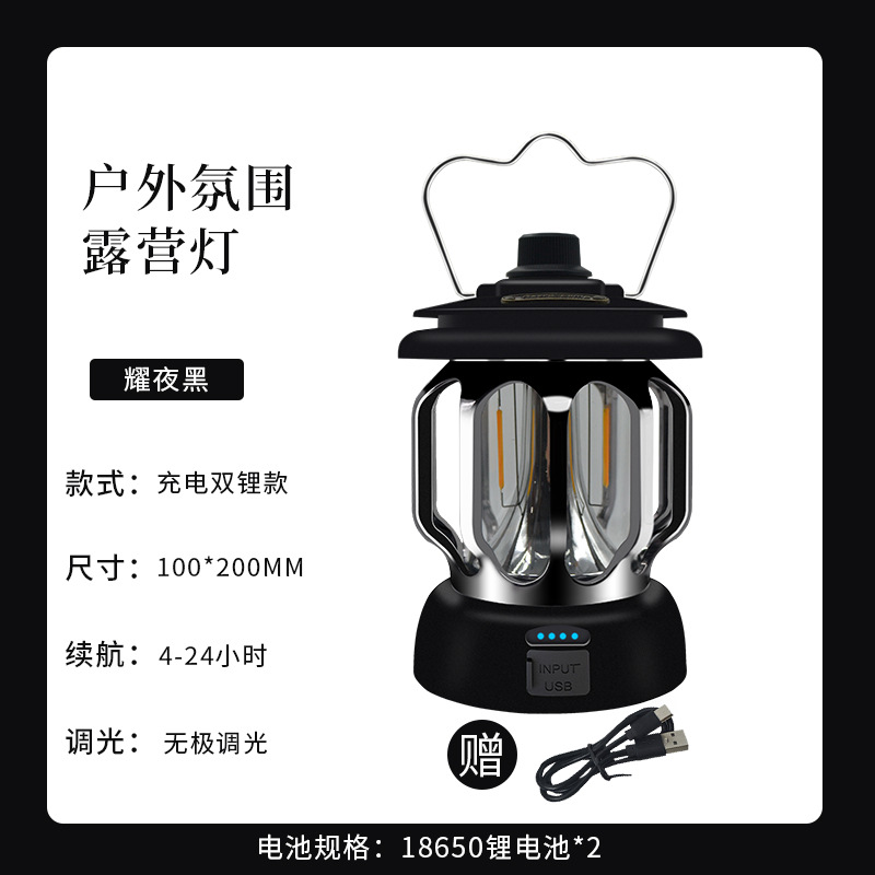 • 충전식 복고풍 캠프 램프 블랙