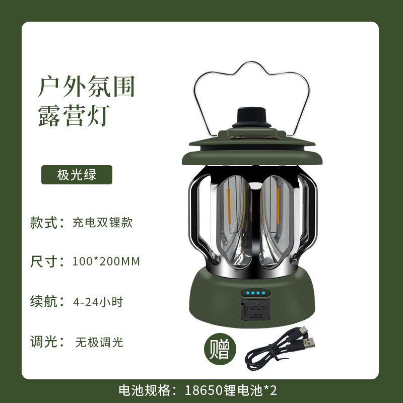 • 충전식 복고풍 캠프 램프 녹색