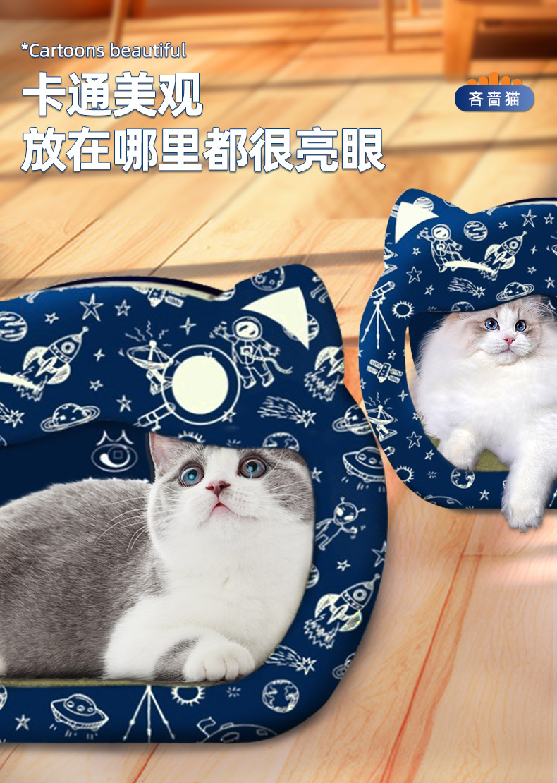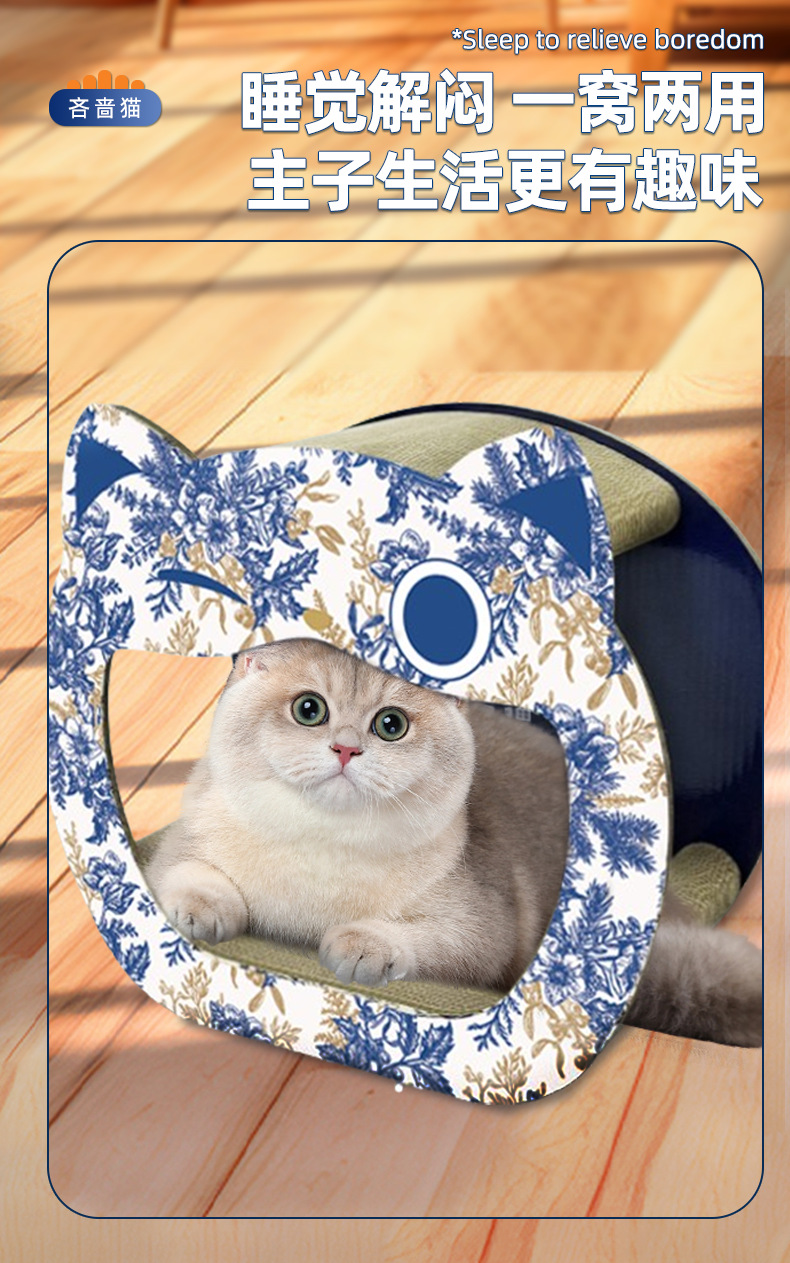 반 폐쇄 고양이 머리 고양이 둥지 만화 큰 입 고양이 스크래치 보드 고양이 둥지 통합 스크래치 방지 및 내마모성 골판지 고양이 빌라스토어 가기