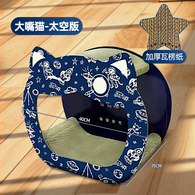 반 폐쇄 고양이 머리 고양이 둥지 만화 큰 입 고양이 스크래치 보드 고양이 둥지 통합 스크래치 방지 및 내마모성 골판지 고양이 빌라