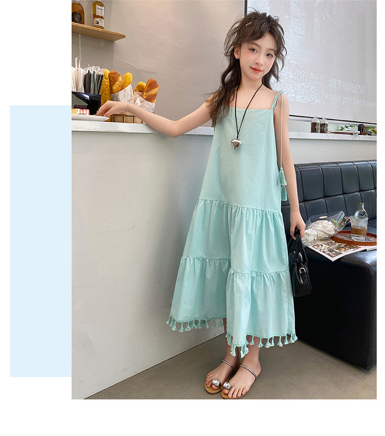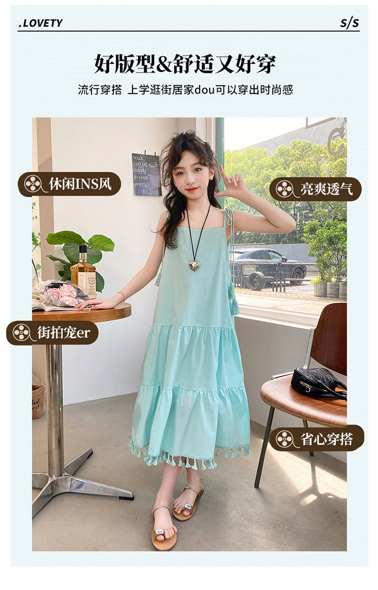 소녀 여름 원피스 원피스 2024 여름 새 스타일 소녀 슬립 스커트 큰 키즈 한국 스타일 서양식 민소매 면 원피스스토어 가기